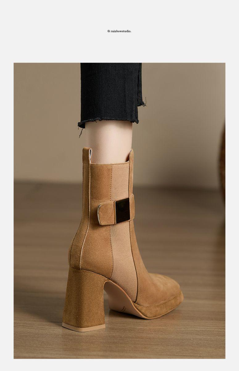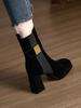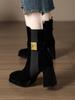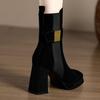 Botines cortos de tacón grueso nuevos 2025 para mujer, botas de tacón alto super elegantes de suela gruesa negras, botas impermeables de media caña con plataforma y correa con hebilla