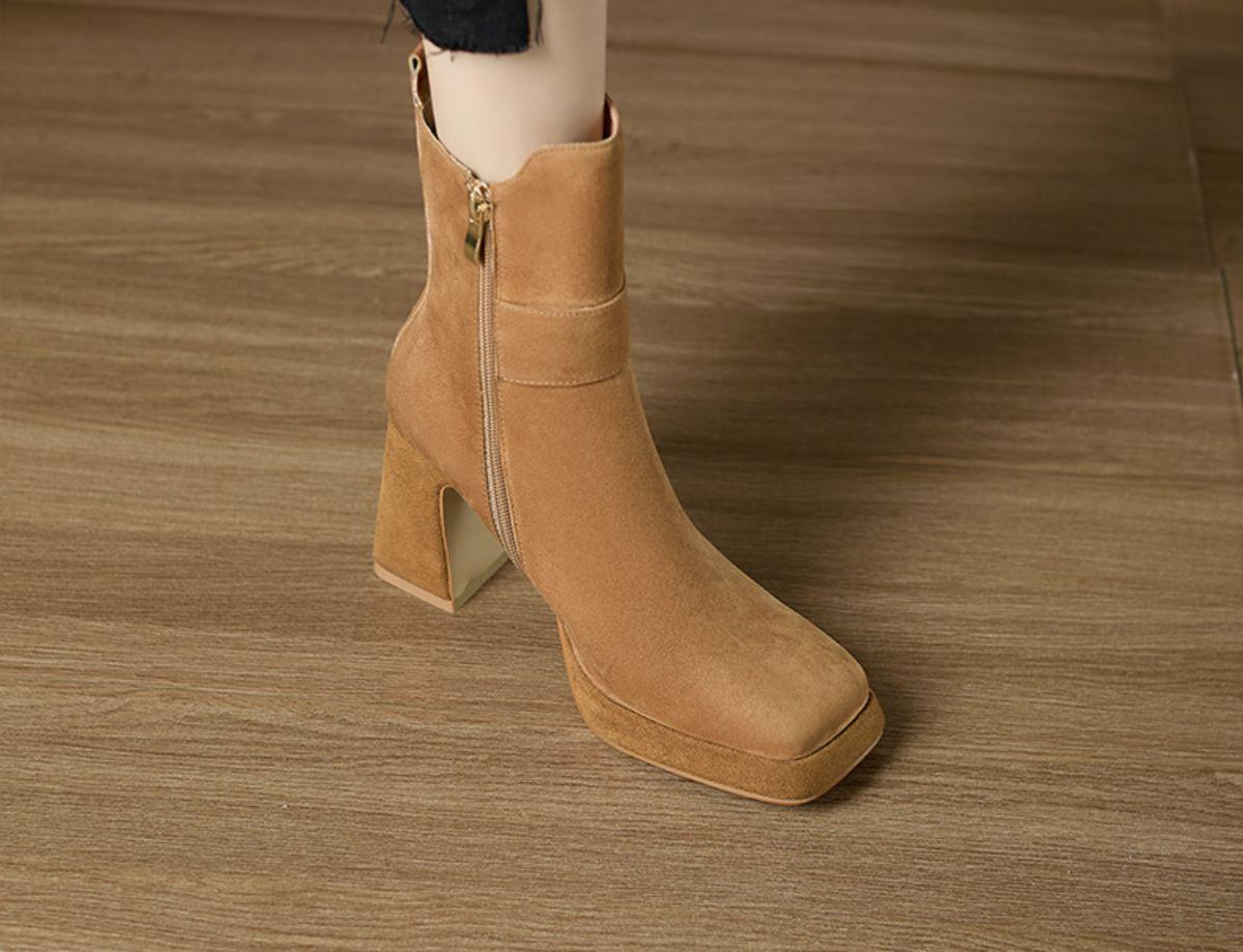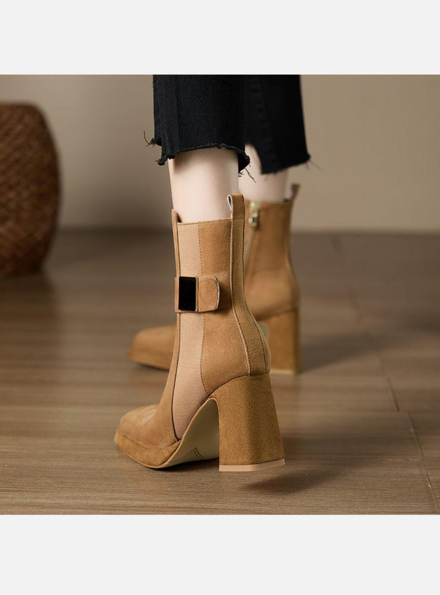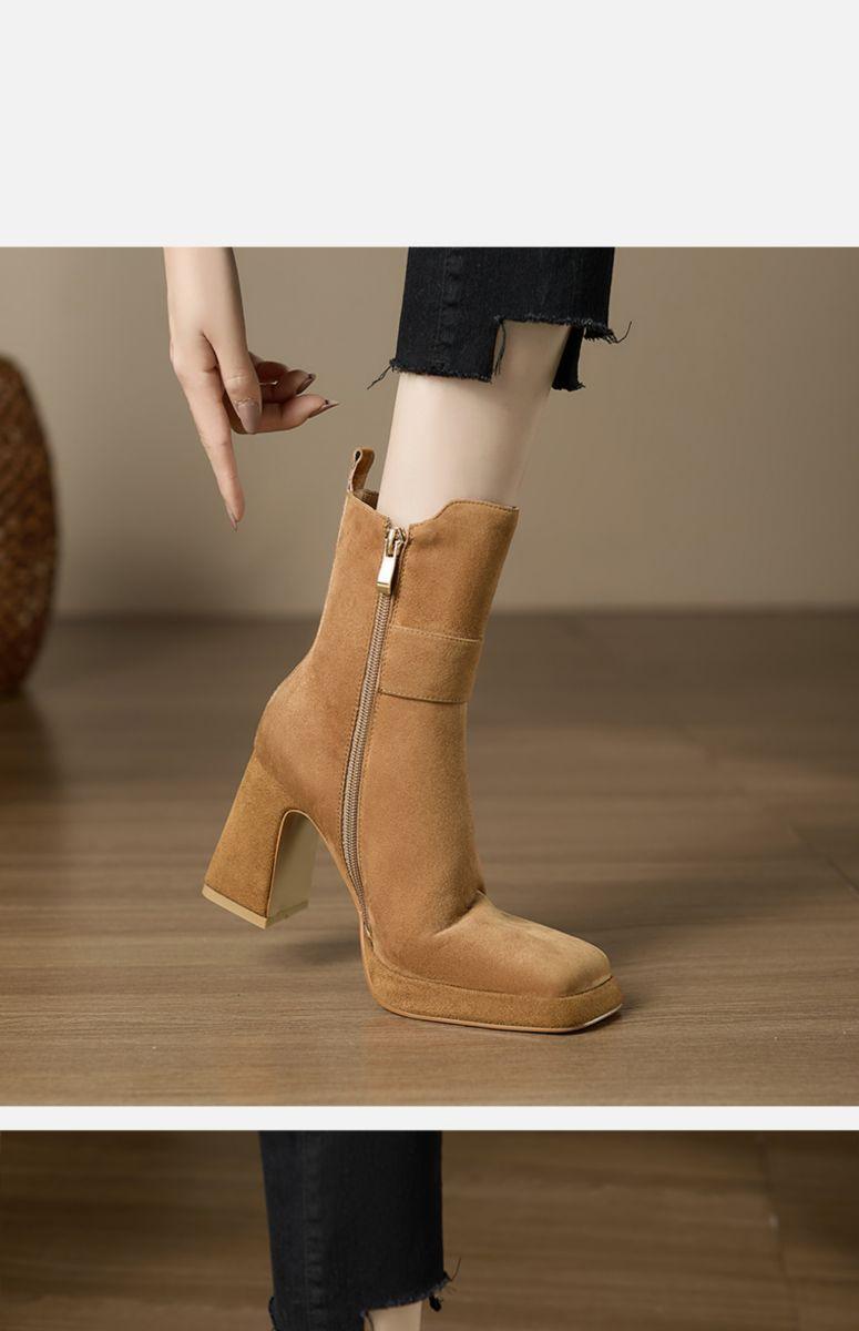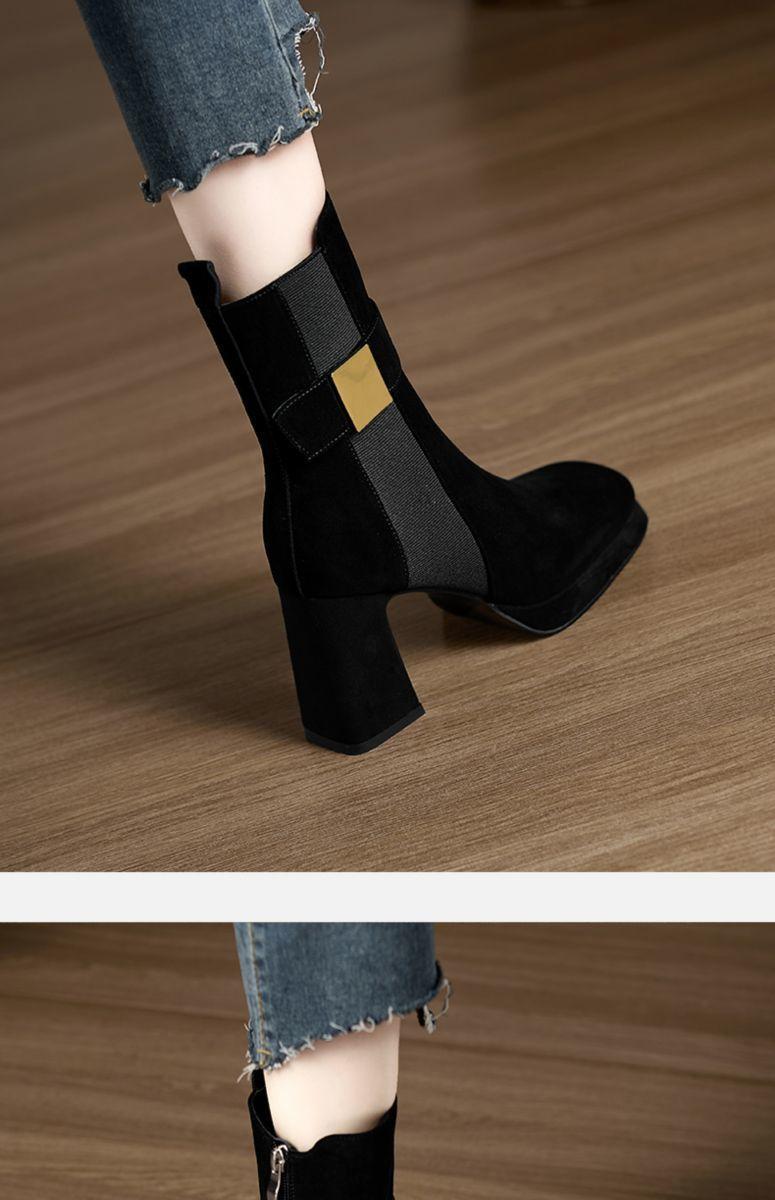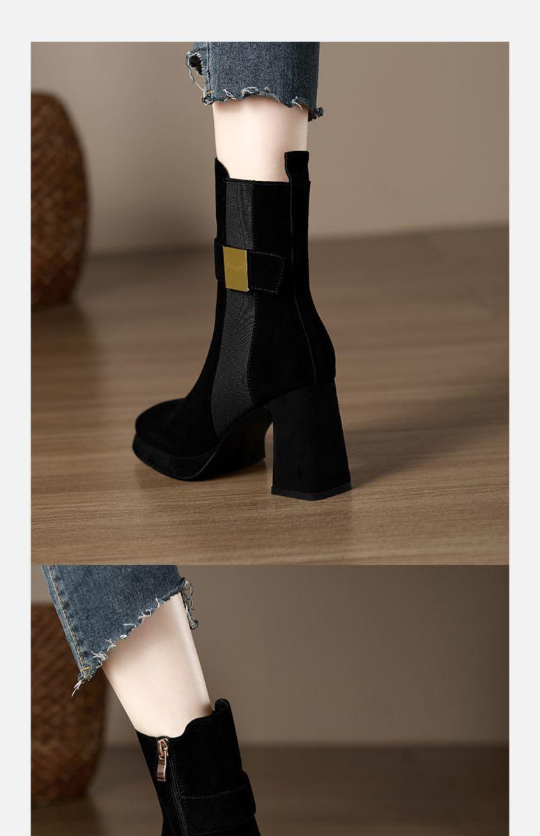 Compra Botines cortos de tacón grueso nuevos 2025 para mujer, botas de tacón alto super elegantes de suela gruesa negras, botas impermeables de media caña con plataforma y correa con hebilla al por mayor en Joom.pro