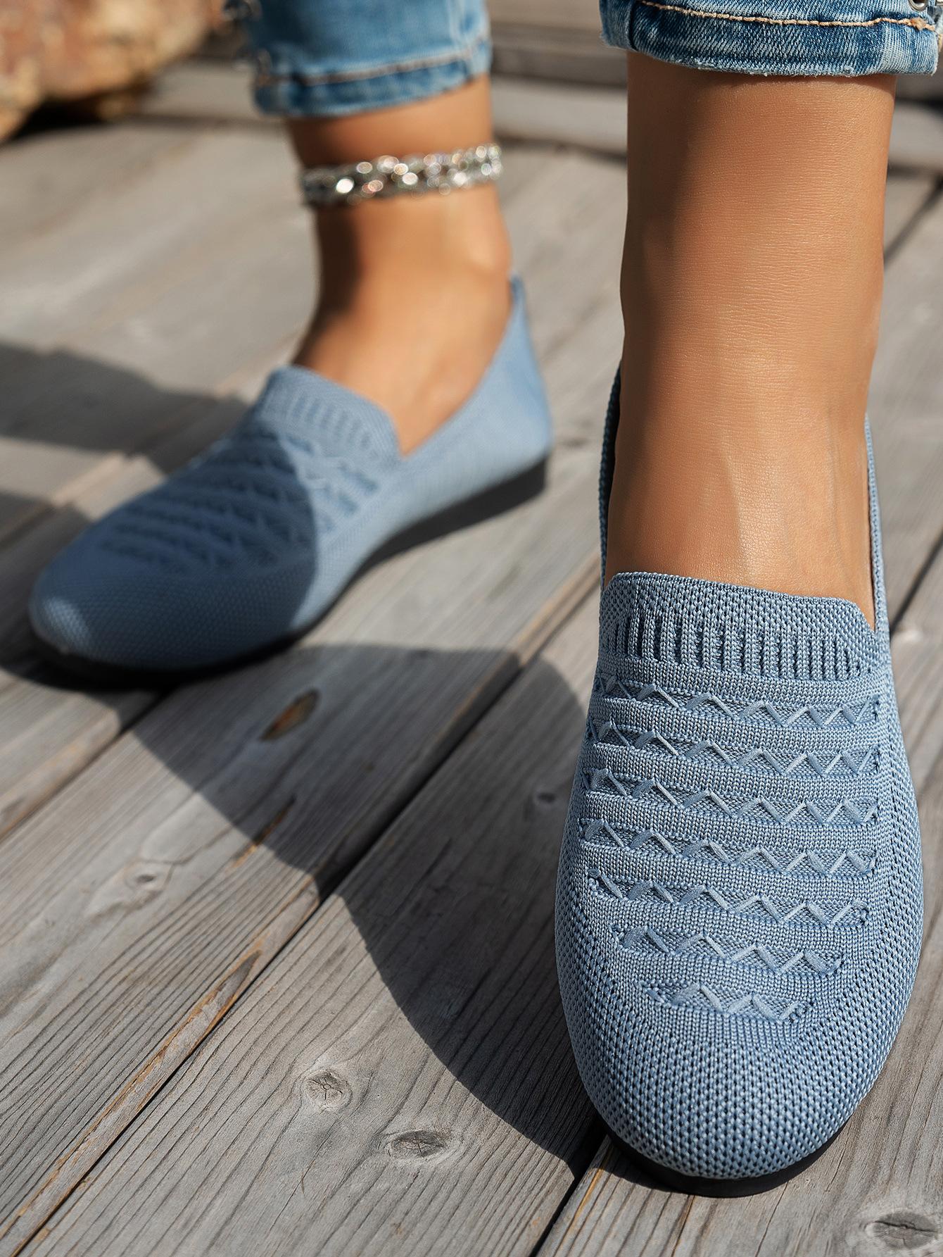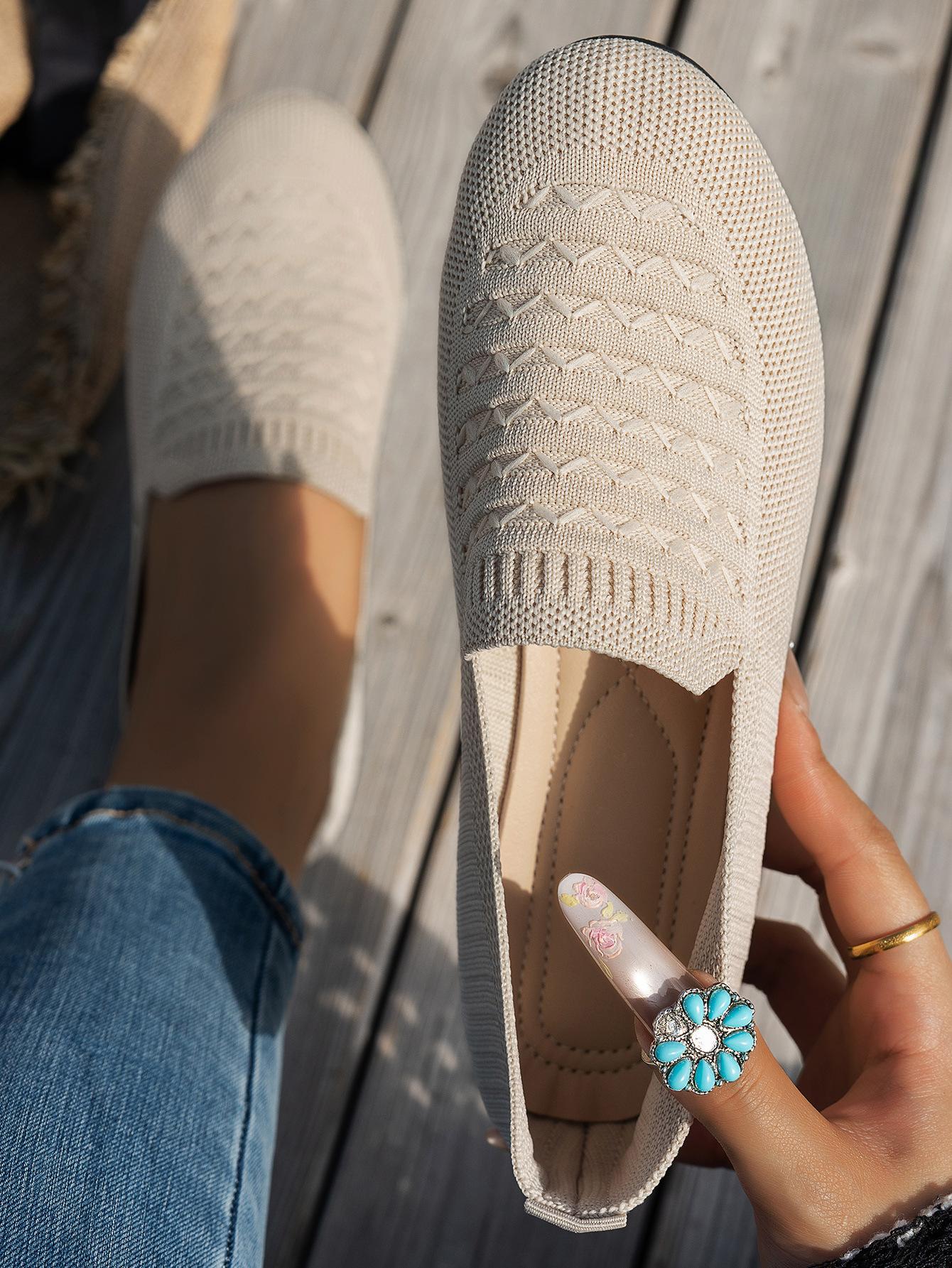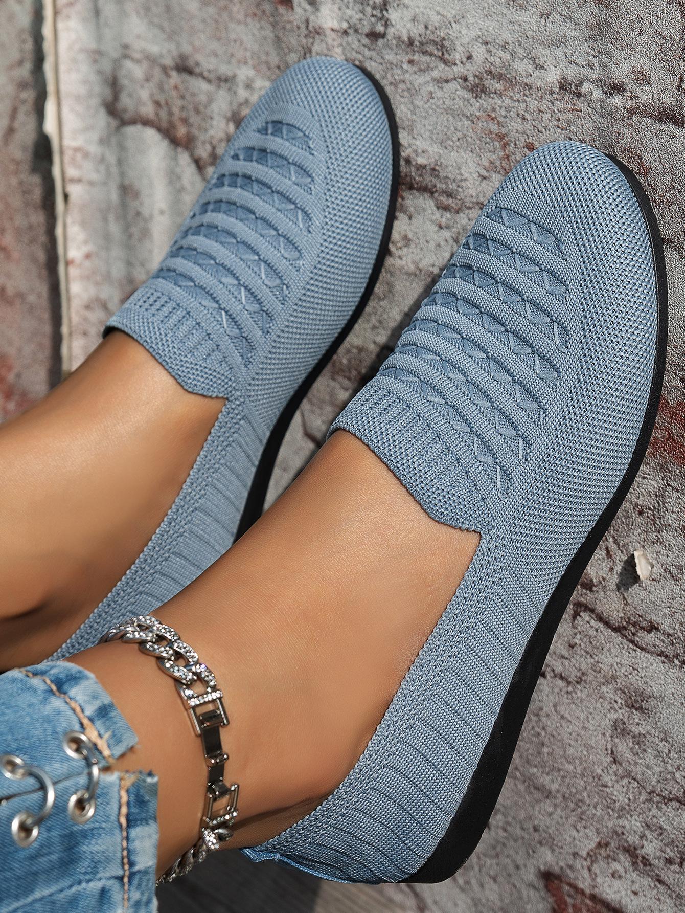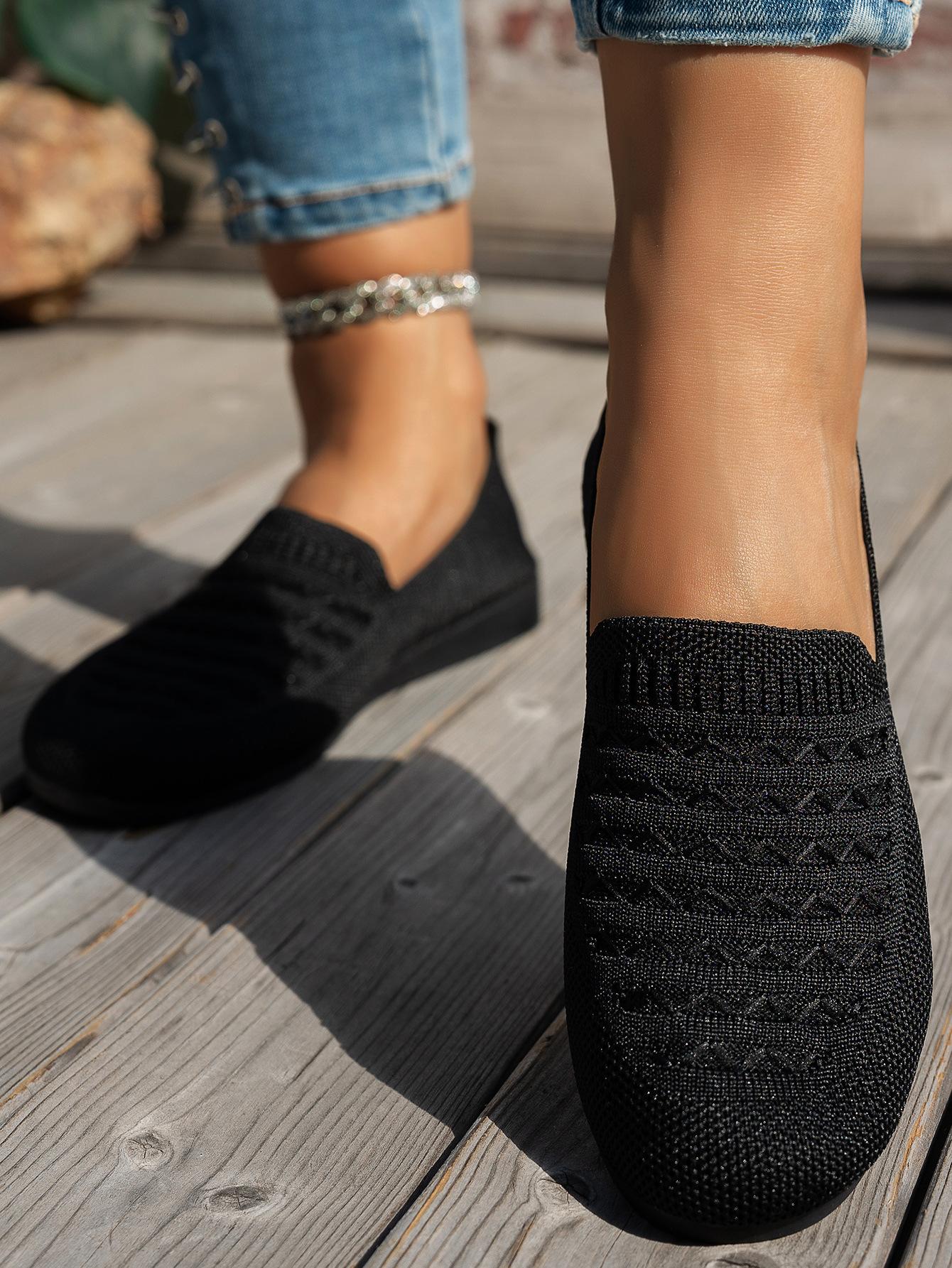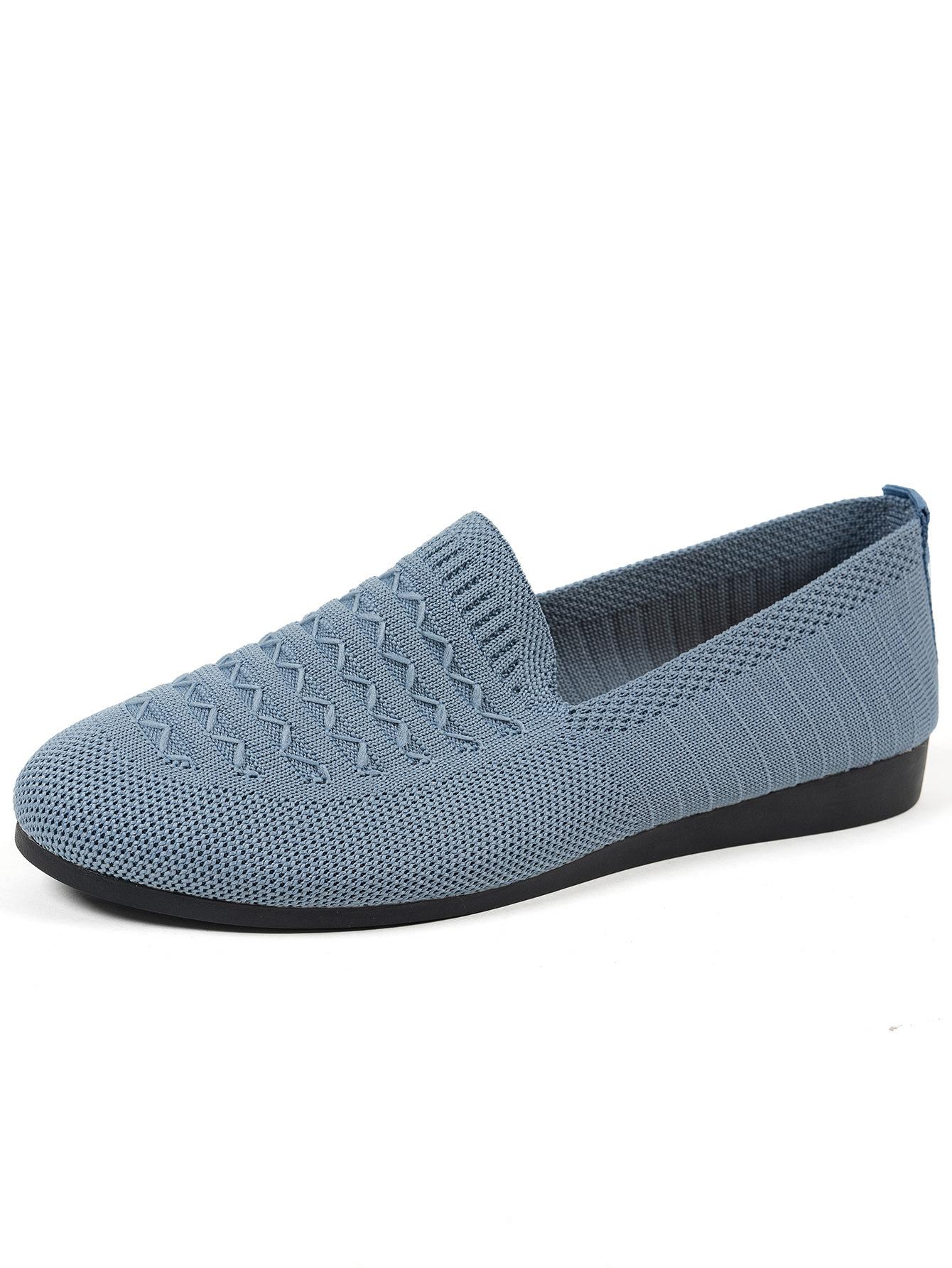 Nuevos zapatos bajos de punto transpirables de talla grande transfronterizos para mujer, de punta redonda, suela plana, ligeros, de punto, tipo mocasines holgazanes