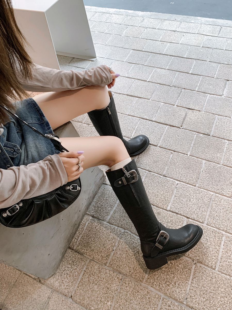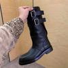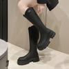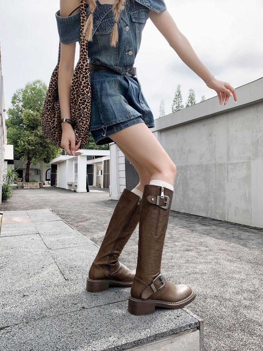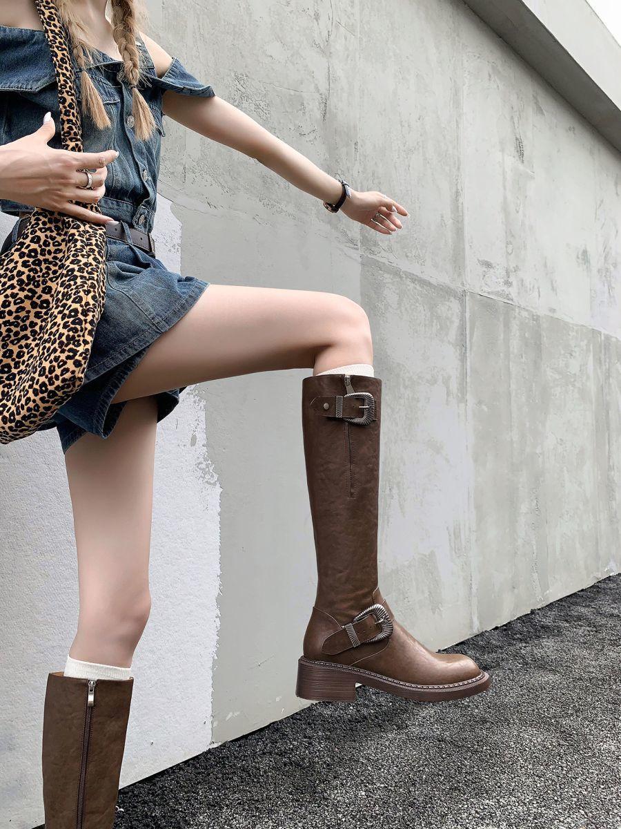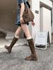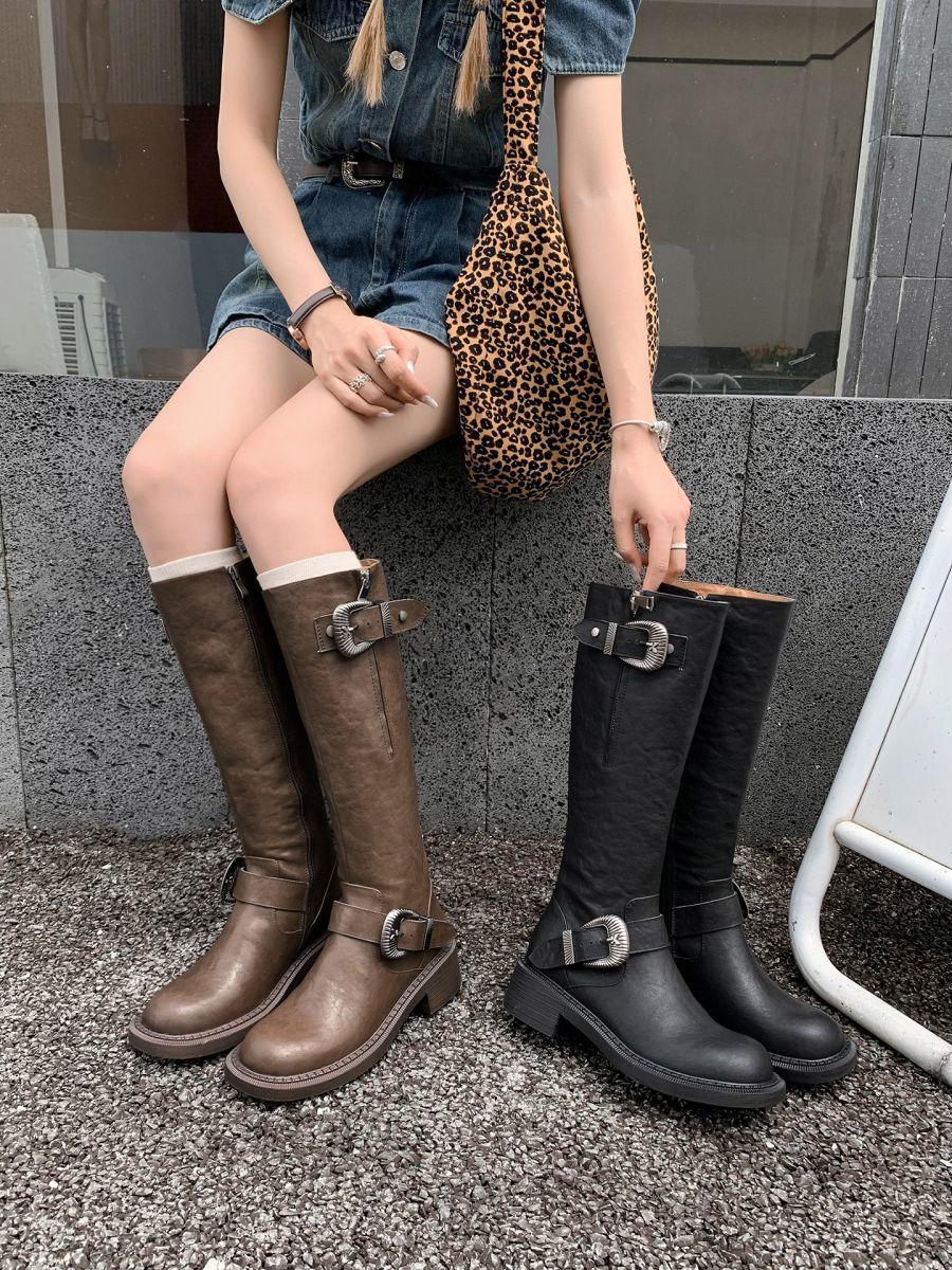 Botas Vaqueras Vintage Viento del Desierto para Mujer Otoño/Invierno 2025 Nuevas Botas de Caballero de Caña Alta Tacón Medio Tacón Grueso Botas hasta la Rodilla