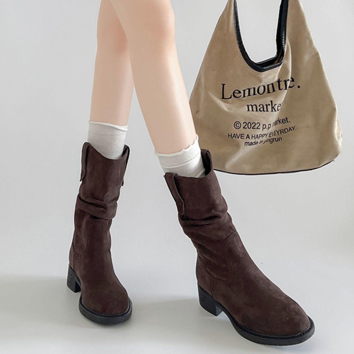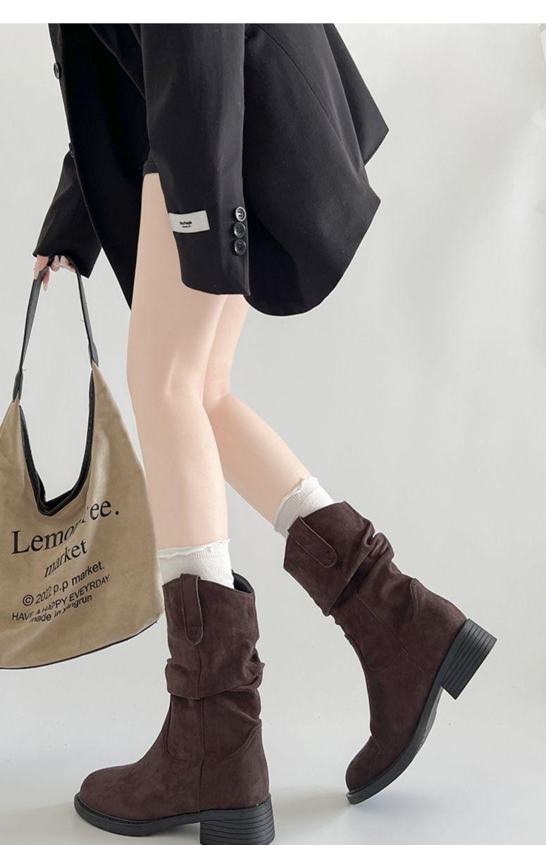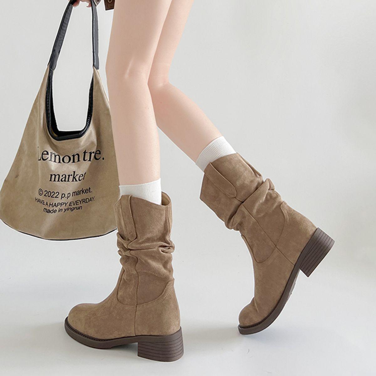 Botas de Pila para Mujer 2025 Nuevo Otoño Combinar Falda Tacón Grueso Media Pantorrilla Botines Myllard Vaqueras Cowboy Martin