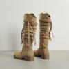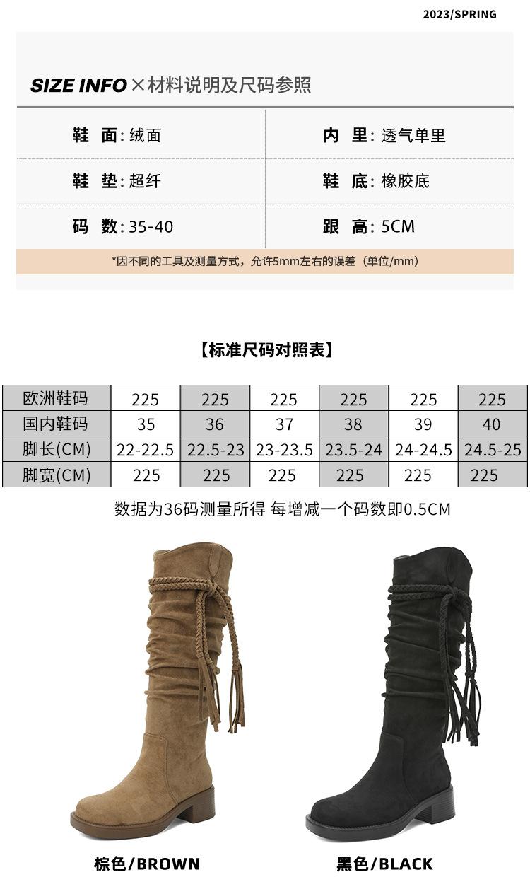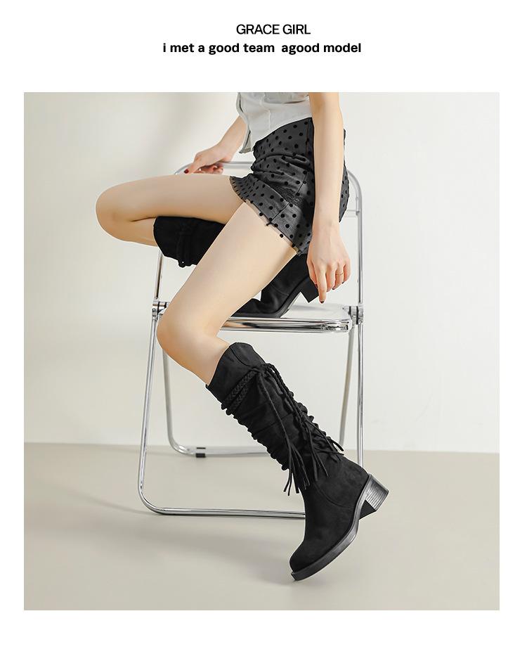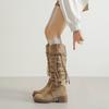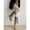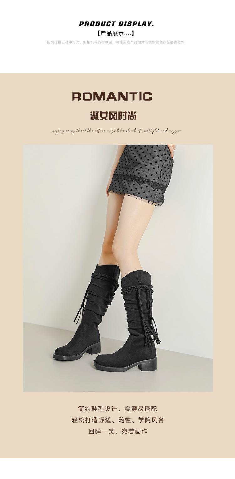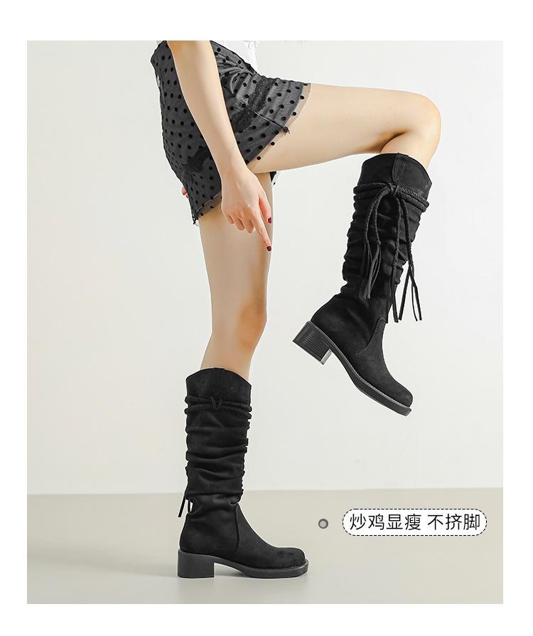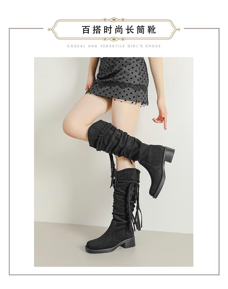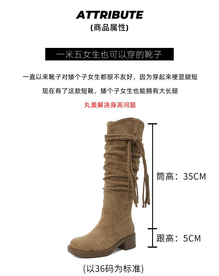 Botas Largas de Mujer Vintage Borla Tejido Estilo Páramo Botas de Caballero 2025 Otoño e Invierno Nuevas Tacón Grueso Fruncidas Ajustadas Hasta la Rodilla