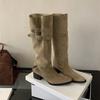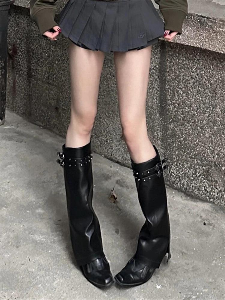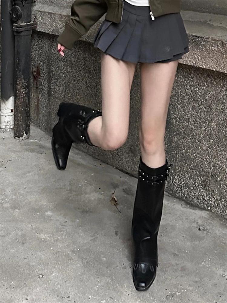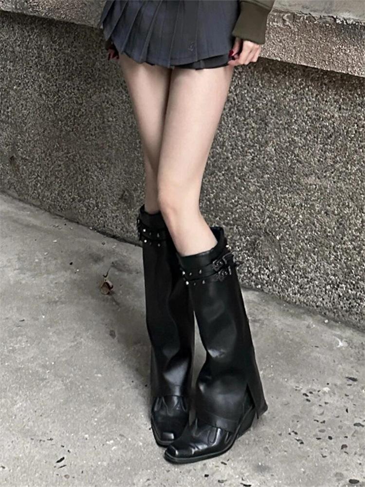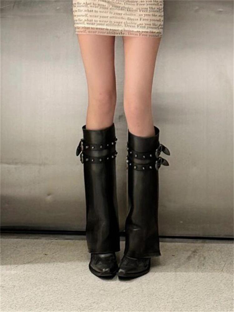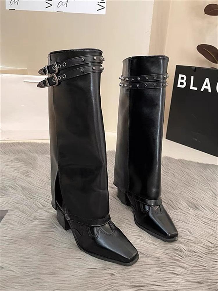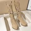 Botas Vaqueras de Caña Alta hasta la Rodilla de Punta Nicho para Mujer 2025 Nuevas Botas de Caballero con Tacón Grueso y Estoperoles para Chica Hot