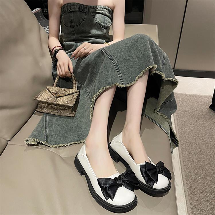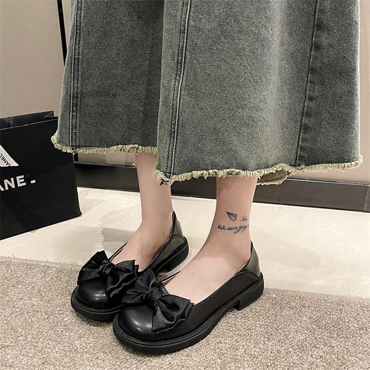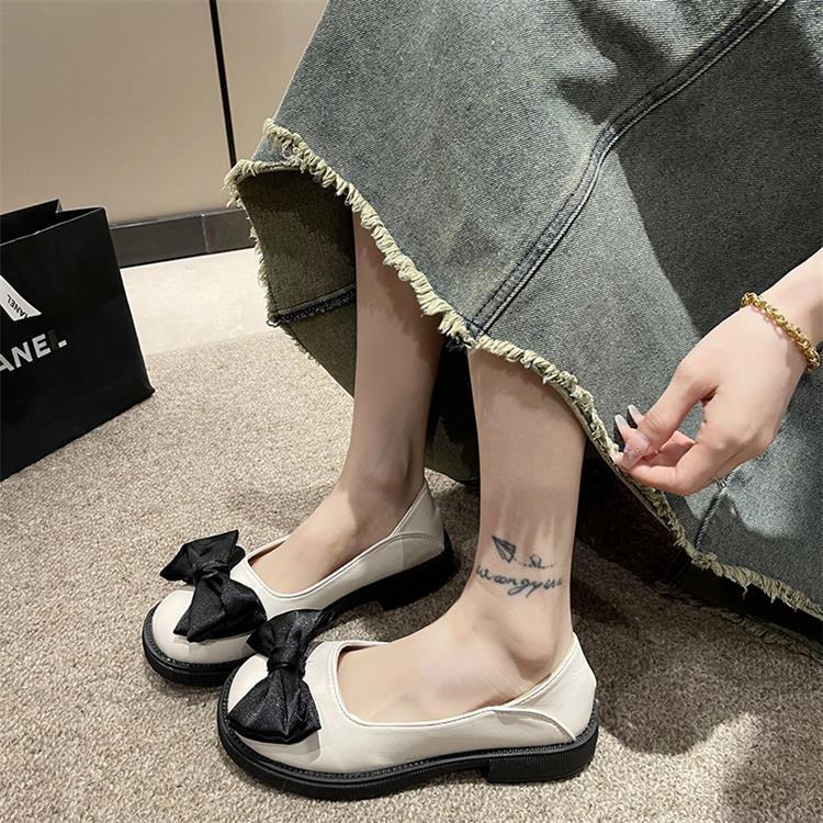 Mocasines clásicos de cuero para mujer 2025 primavera y otoño nuevos de fondo plano estudiante lazo Mary Jane zapatos de mujer slip-on zapatos individuales