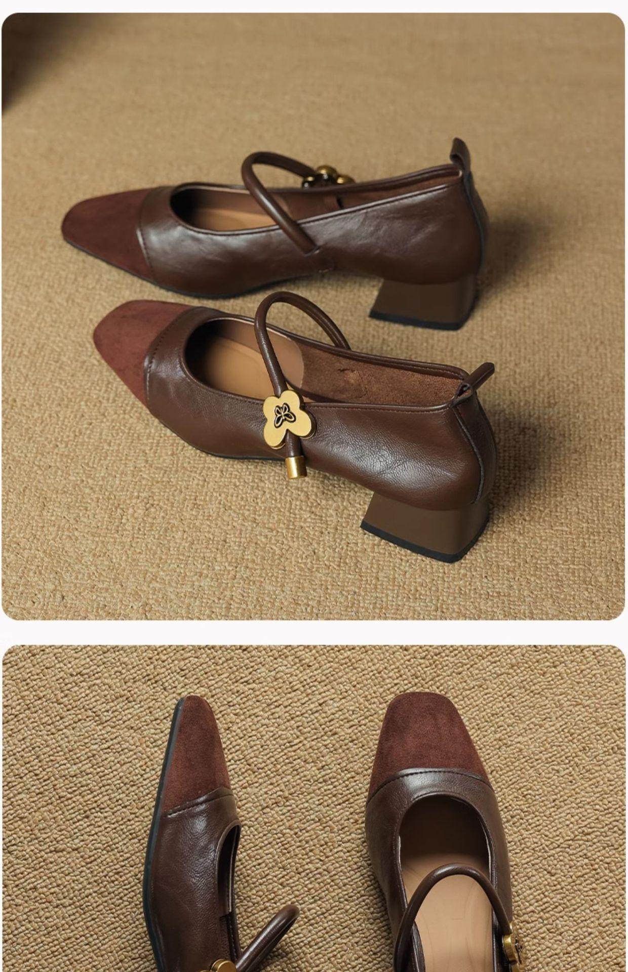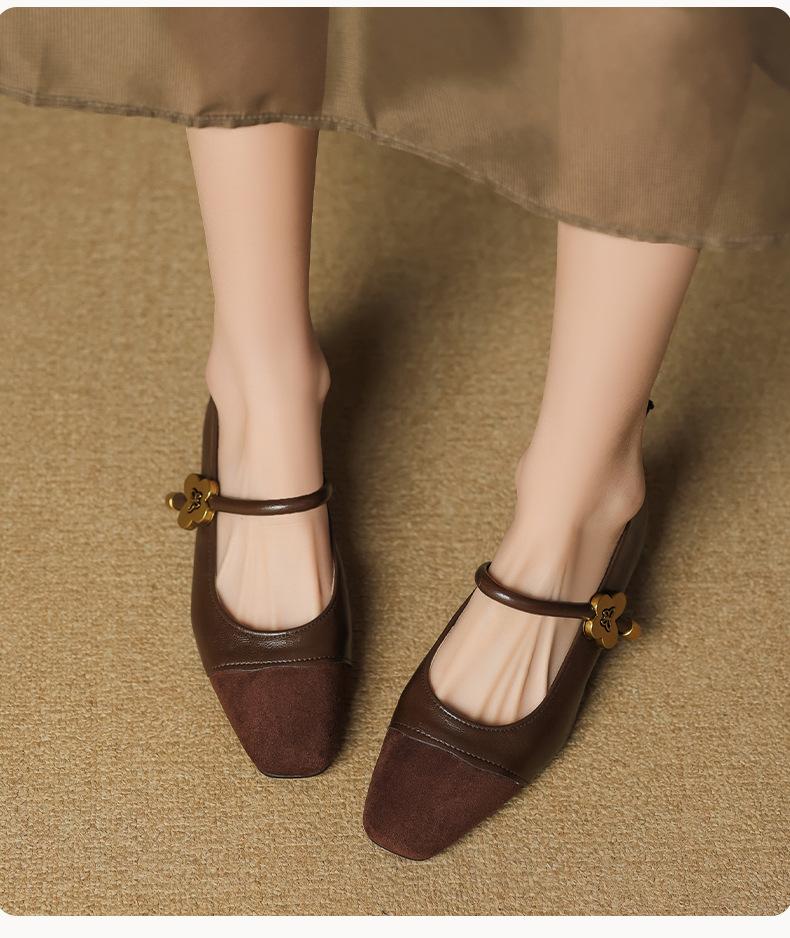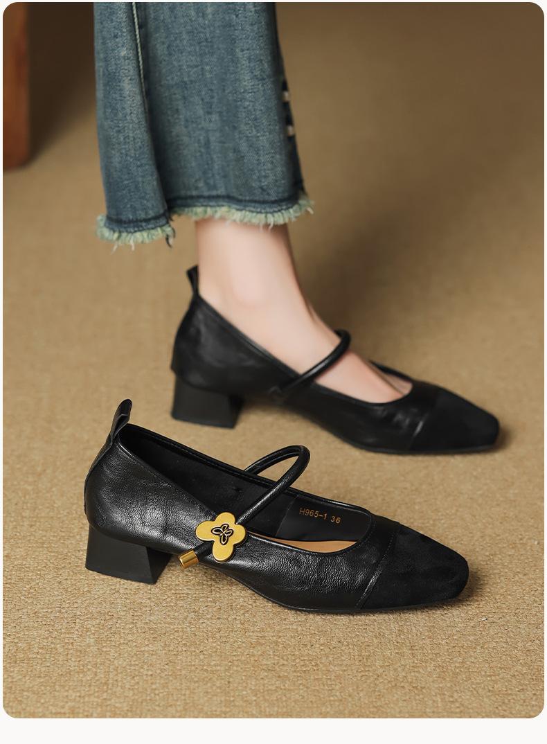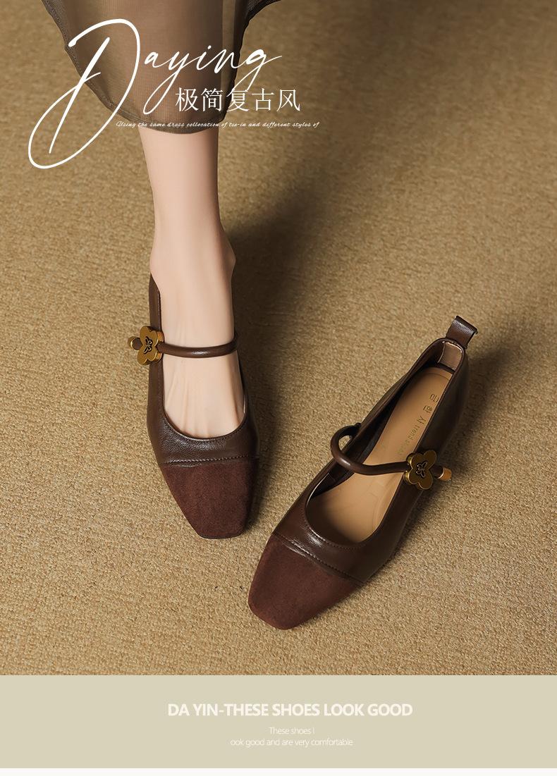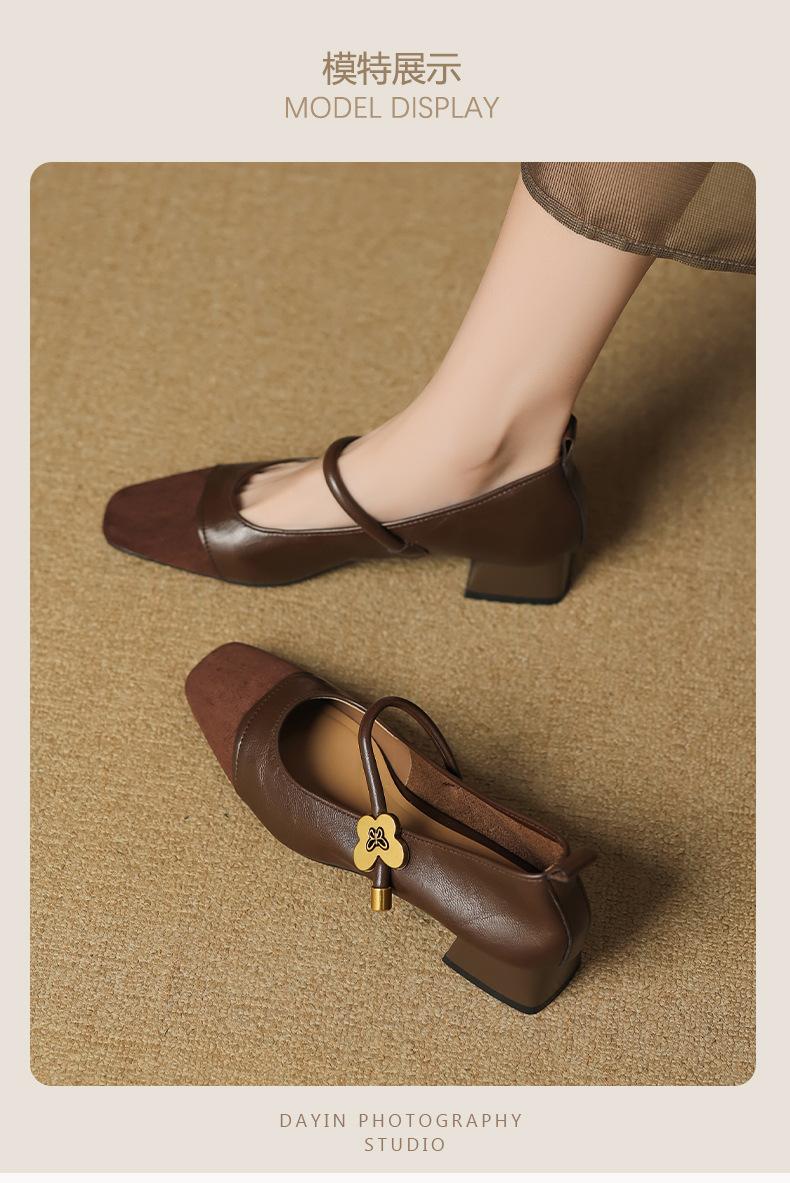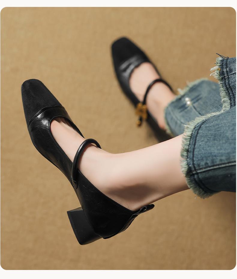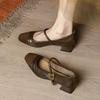 Zapatos Mary Jane con una sola tira para mujer 2025 verano nuevo moda de tacón medio y punta cuadrada francesa para combinar con vestidos tendencia zapatos sencillos de boca baja