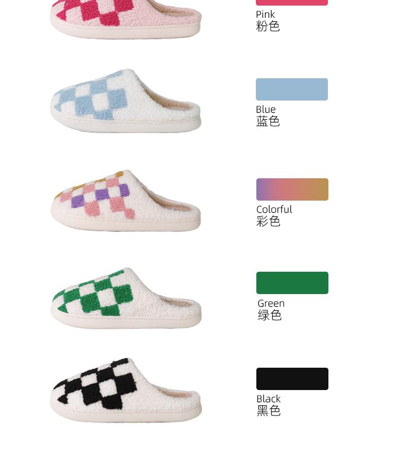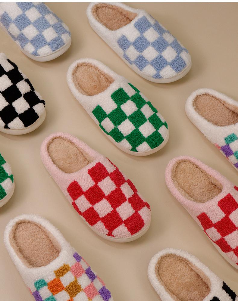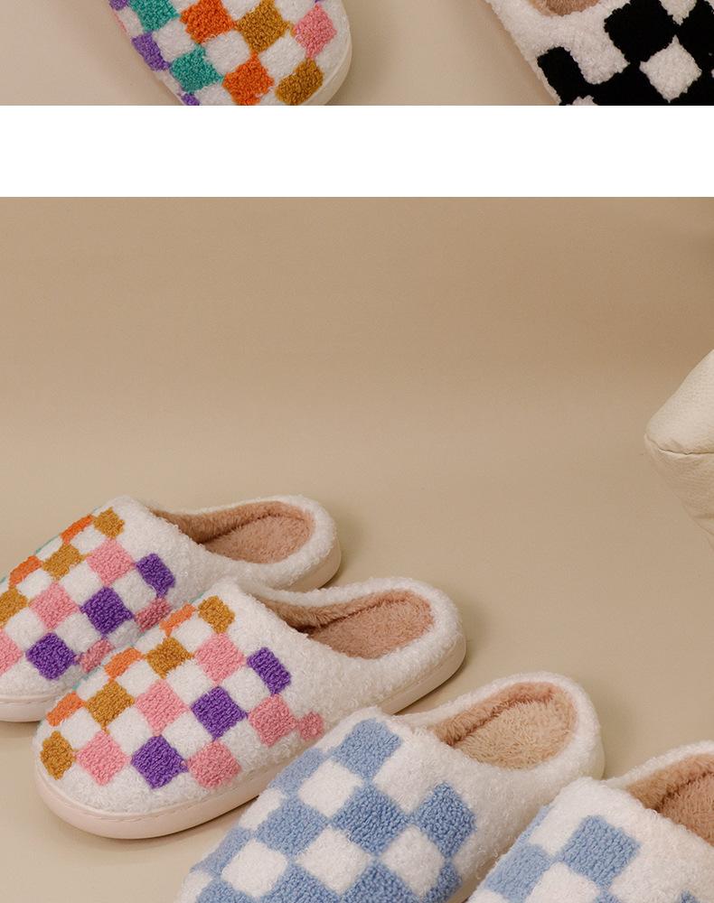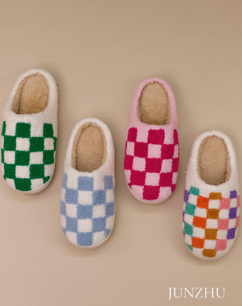 Pantuflas de Invierno para Interior a Cuadros de Arcoíris Antideslizantes para Casa de Algodón Felpa Cálidas Diarias Casuales Peludas