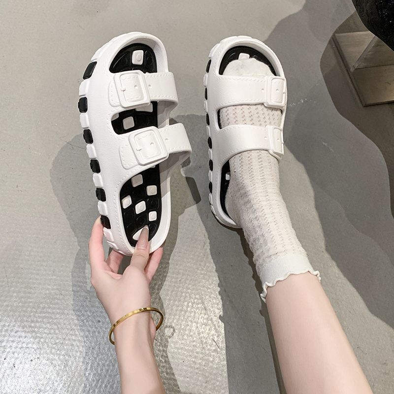 Pantuflas para Mujer Verano 2025 Nuevas de Suela Gruesa con Una Tira para Playa Antideslizantes Moda Casual Pantuflas de Suela Blanda para Mujer