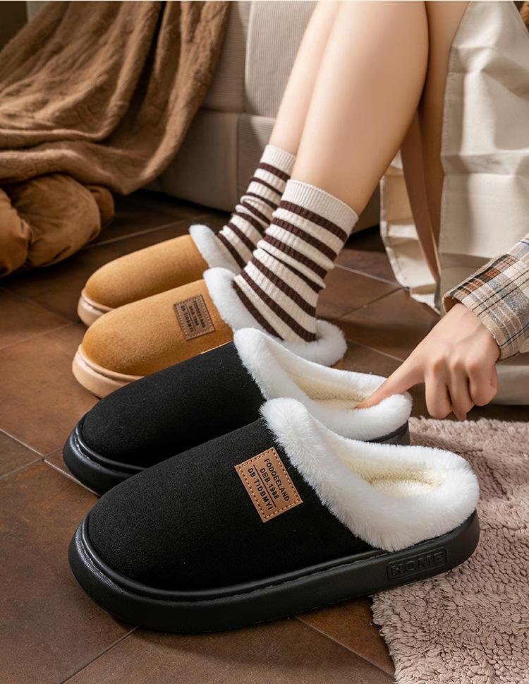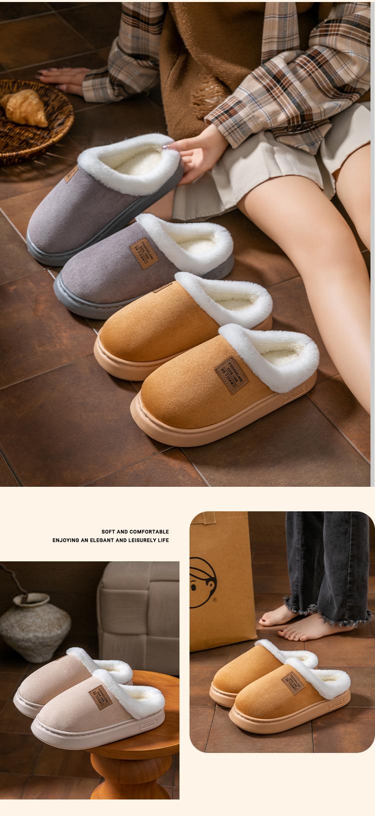 Zapatillas de Algodón Nuevas Otoño/Invierno 2025 para Mujer con Forro Polar Cálidas para Casa Interior Peludas de Felpa Suela Gruesa Antideslizantes para Hombre Hogar