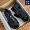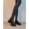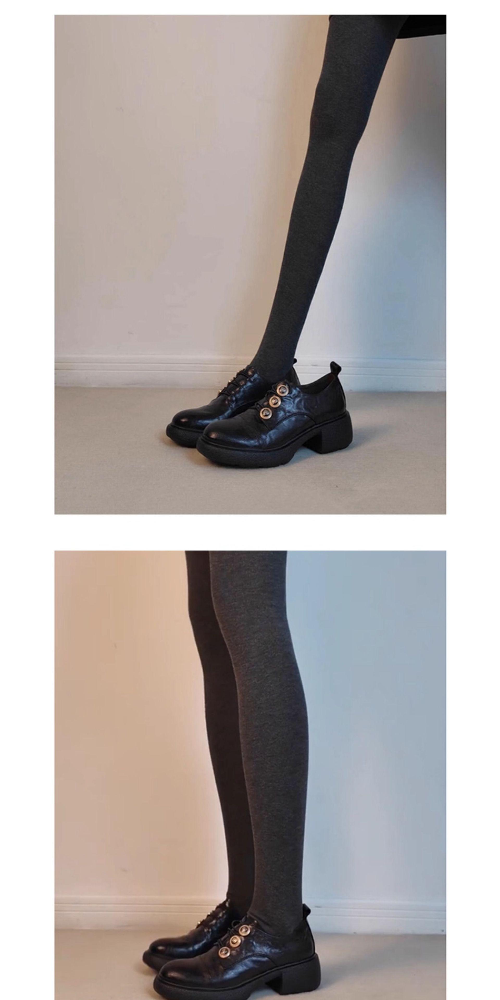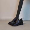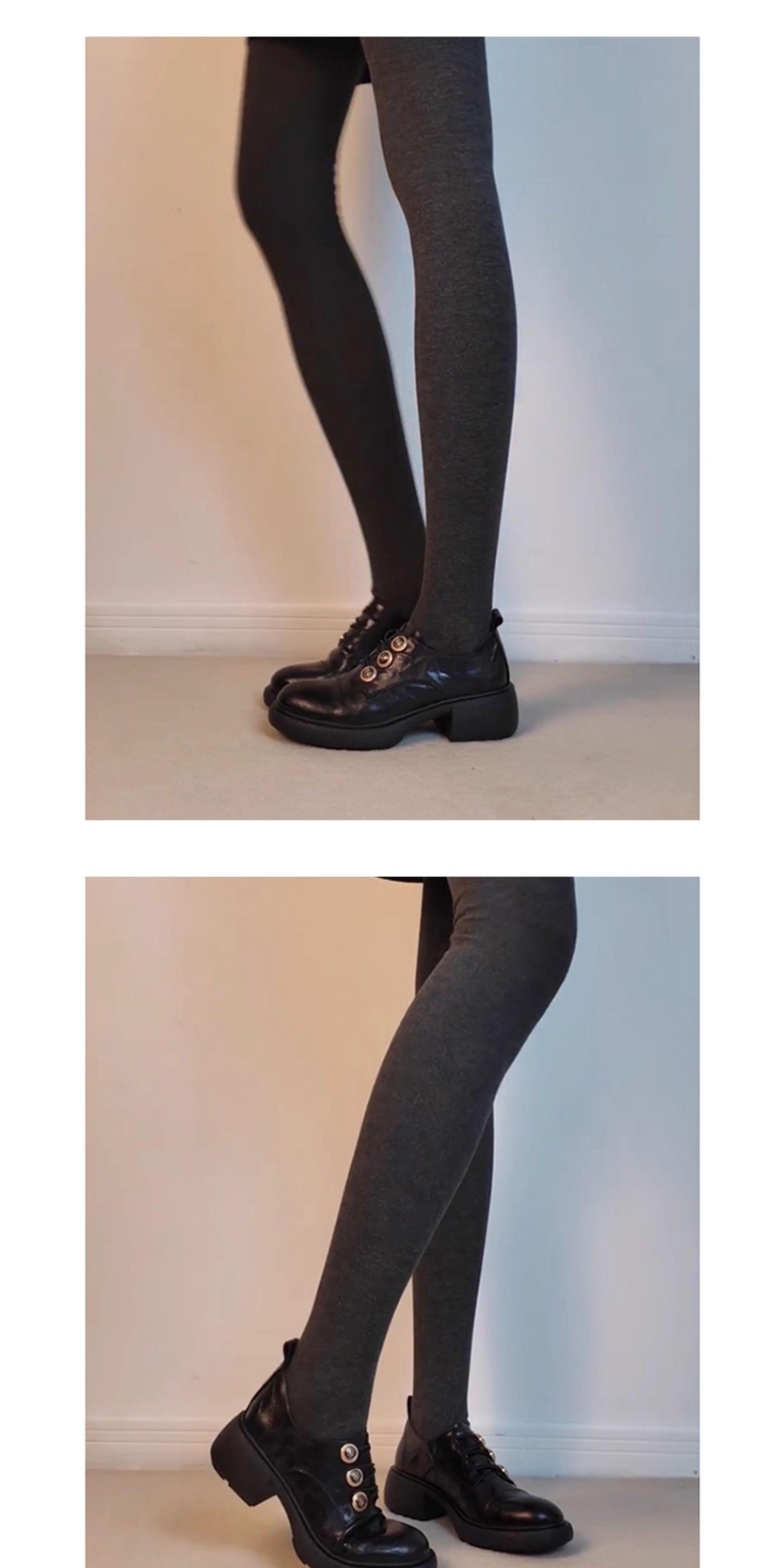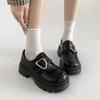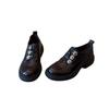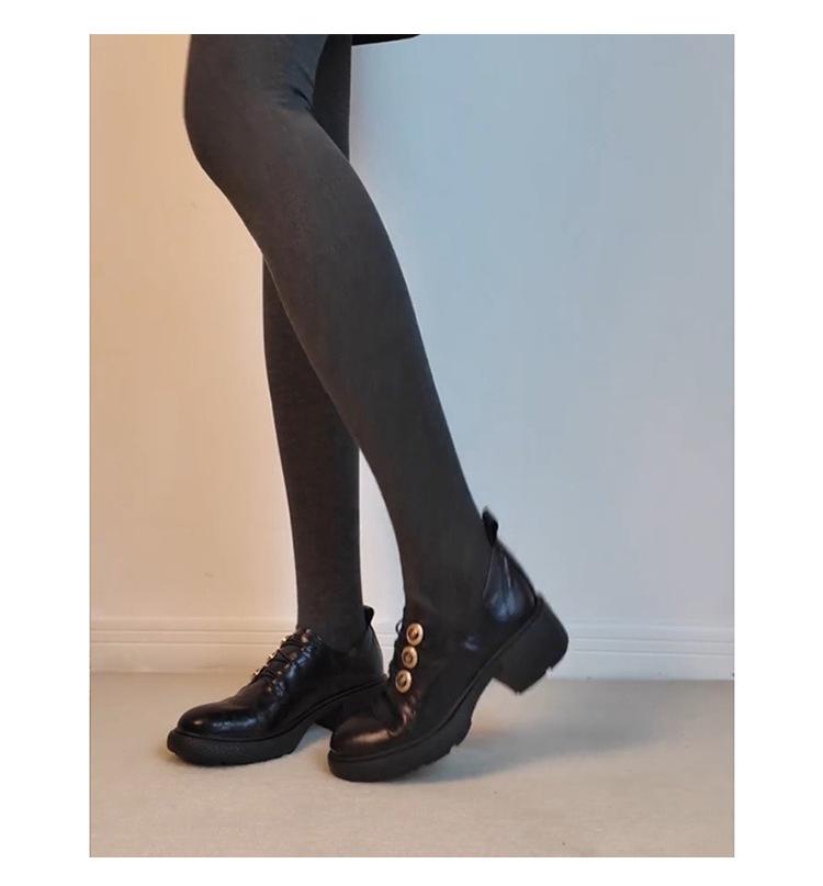 Zapatos pequeños de piel versátiles de punta redonda negros con botón de suela gruesa para mujer 2025 Otoño/Invierno Nuevos mocasines retro de estilo británico zapatos individuales
