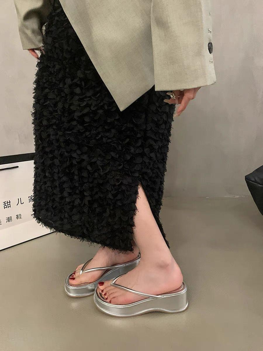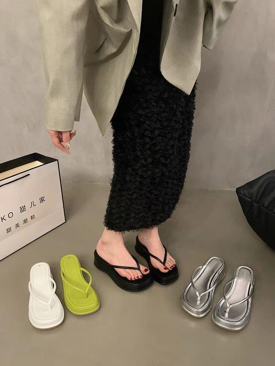 Chanclas Casuales de Moda 2024 Nicho Versátil Casual Zapatillas de Suela Gruesa para Mujer Modernas para Exterior de Una Pieza