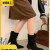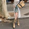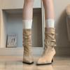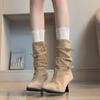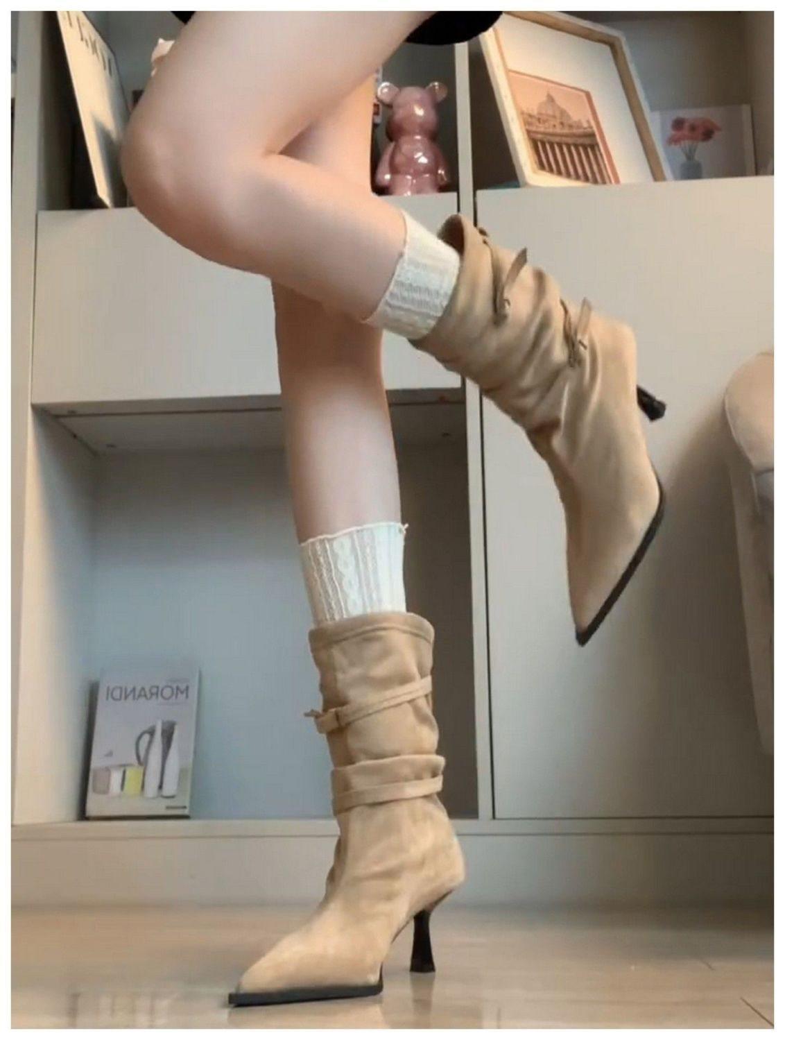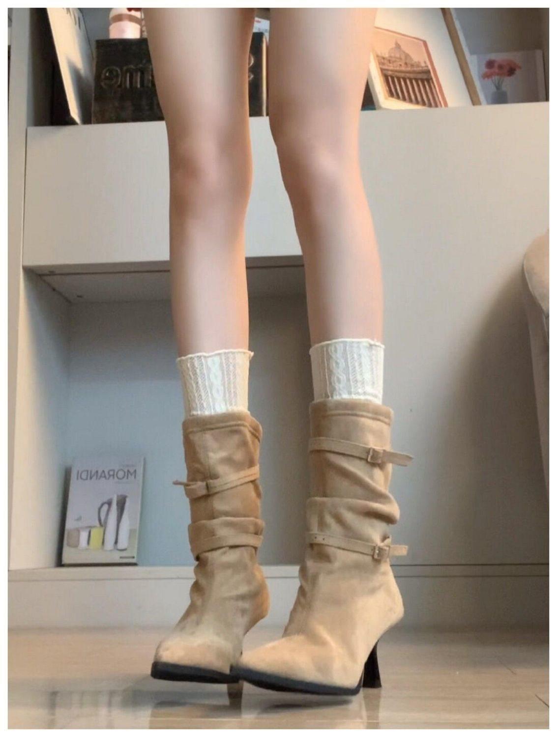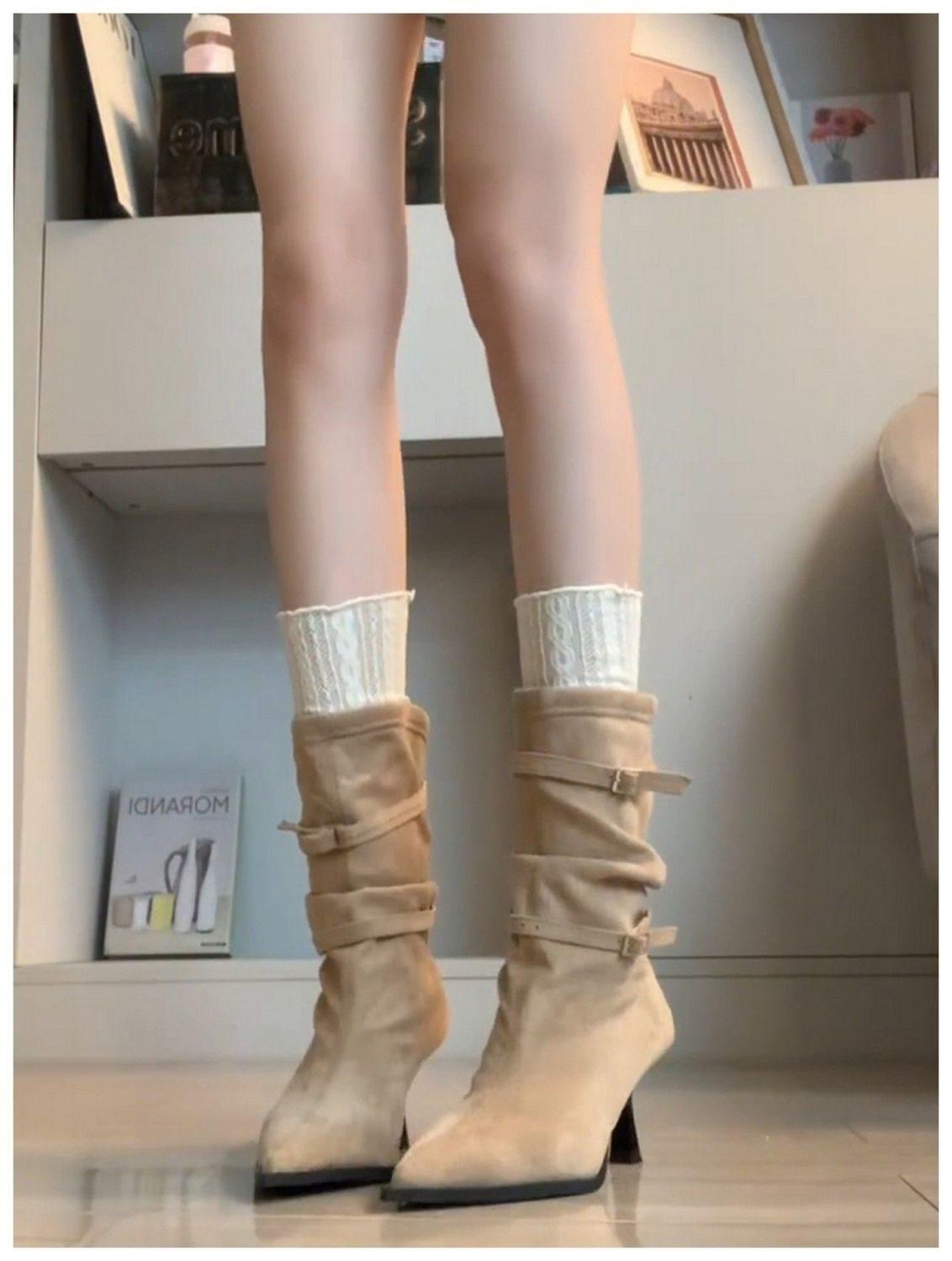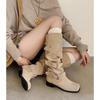 Botas de media caña tacón de aguja versátiles botas vaqueras occidentales mujer 2025 nuevas botas cortas moda hebilla gamuza arrugadas slouch boots
