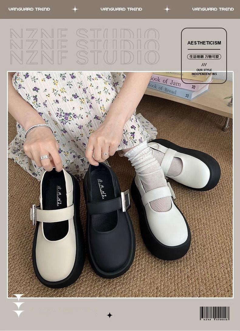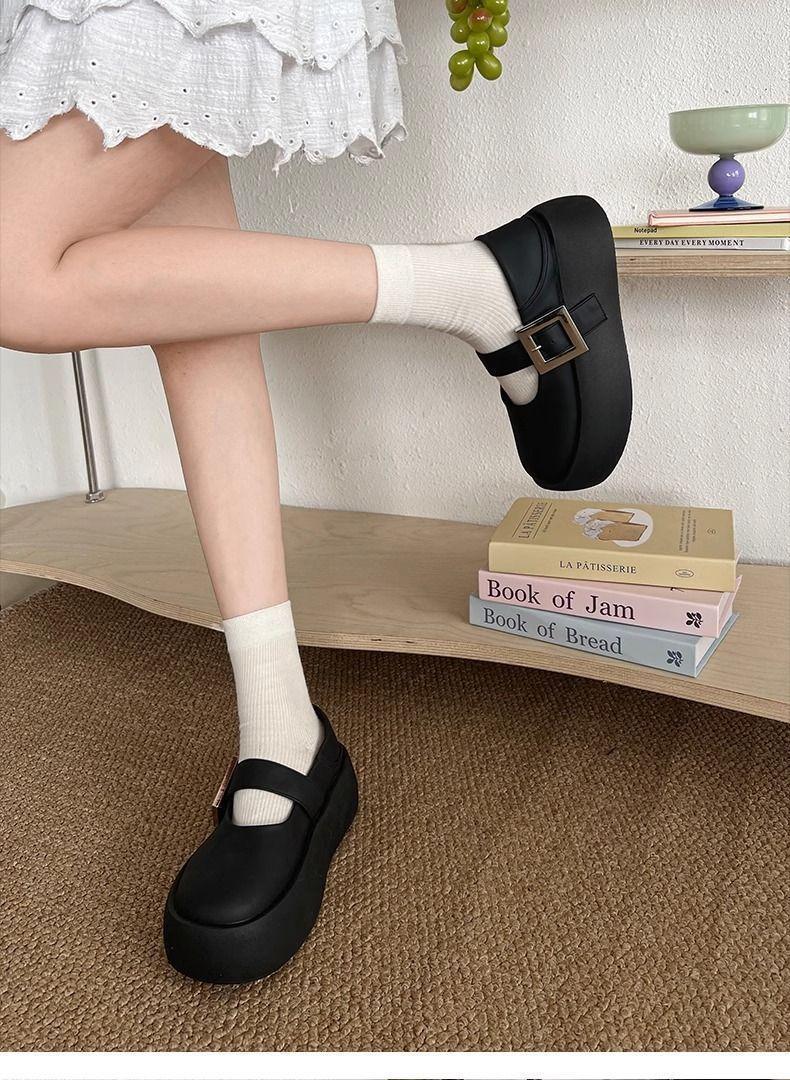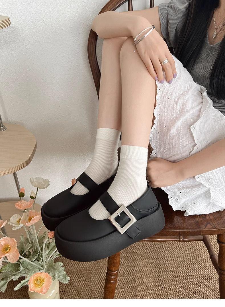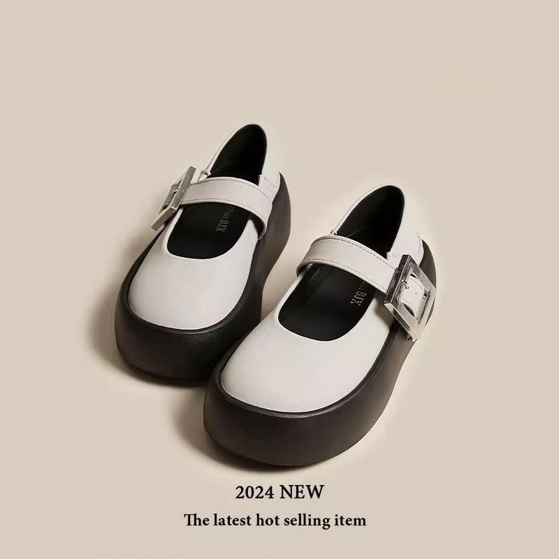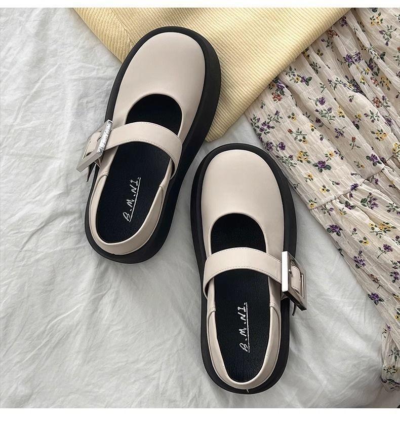 Zapatos Mary Jane 2025 Versátiles Celebridad de Internet Antideslizantes Punta Redonda Verano Casual Suela Gruesa Color Sólido Aumentadores de Altura Zapatos Individuales para Mujer