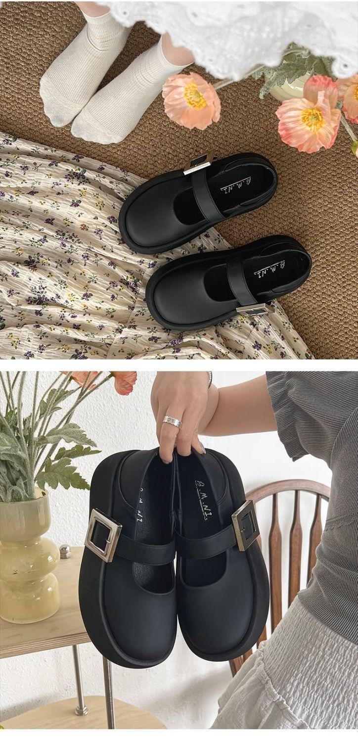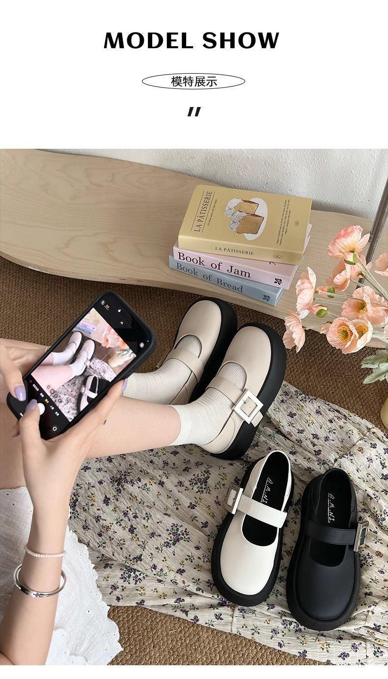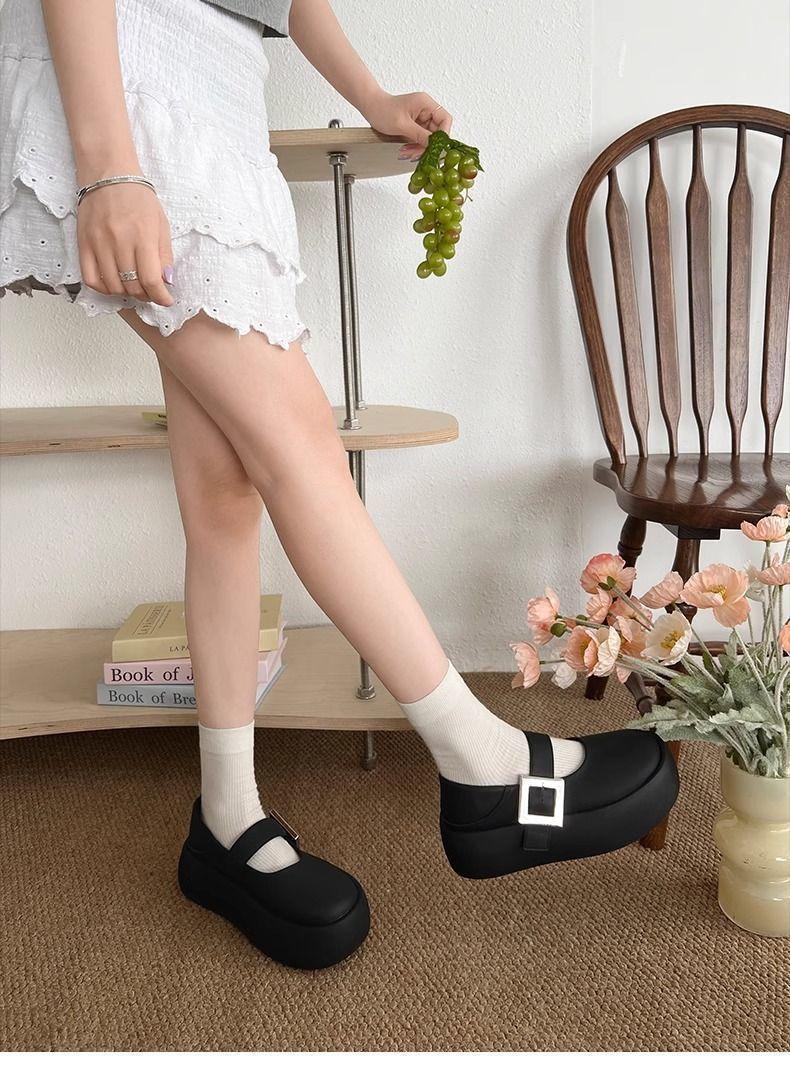 Zapatos Mary Jane 2025 Versátiles Celebridad de Internet Antideslizantes Punta Redonda Verano Casual Suela Gruesa Color Sólido Aumentadores de Altura Zapatos Individuales para Mujer