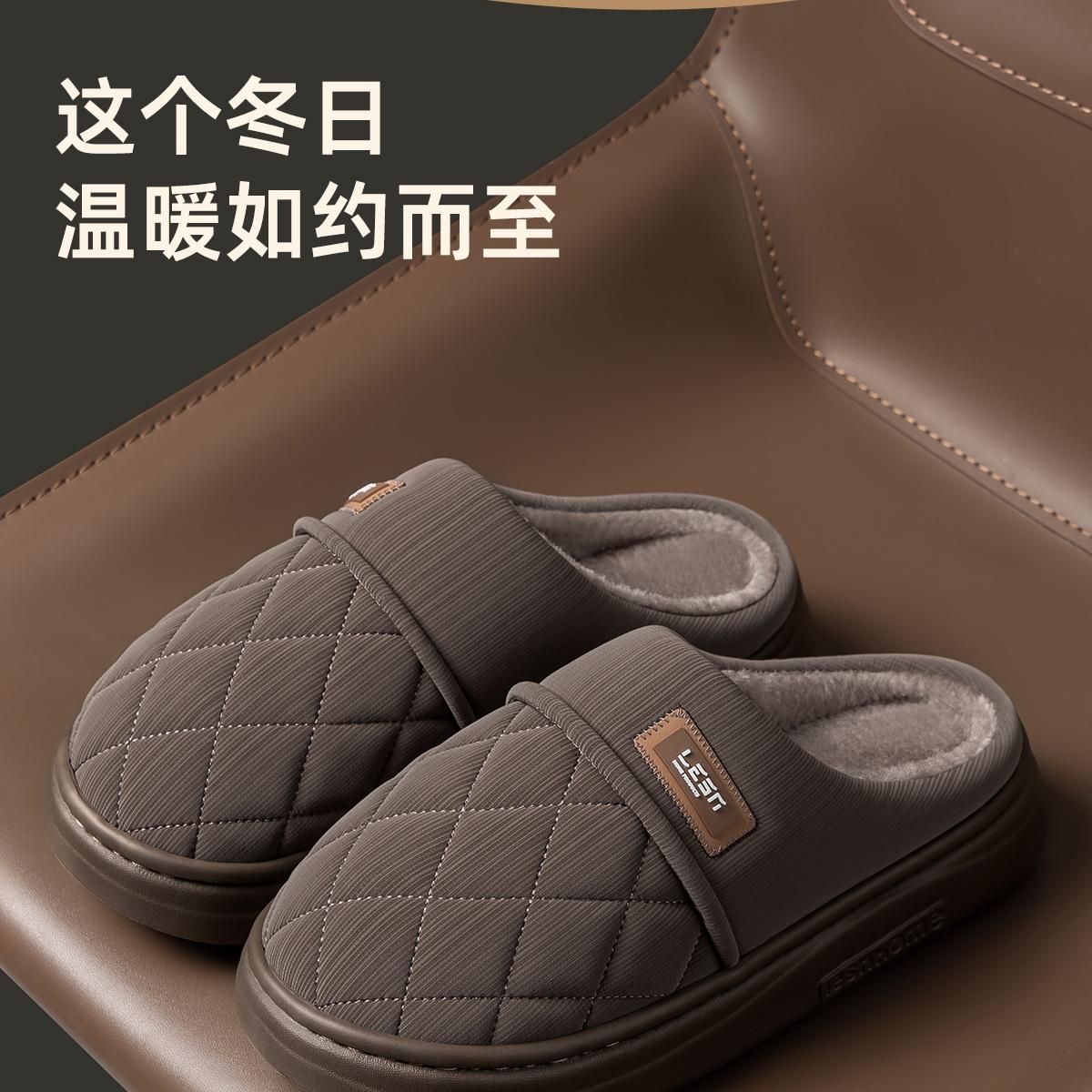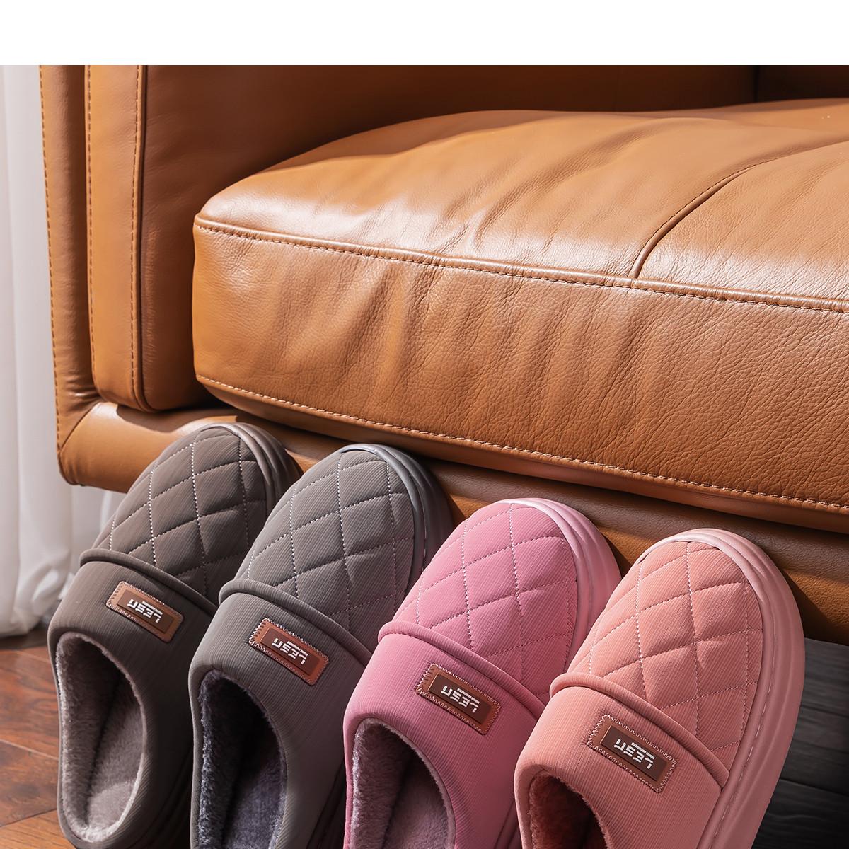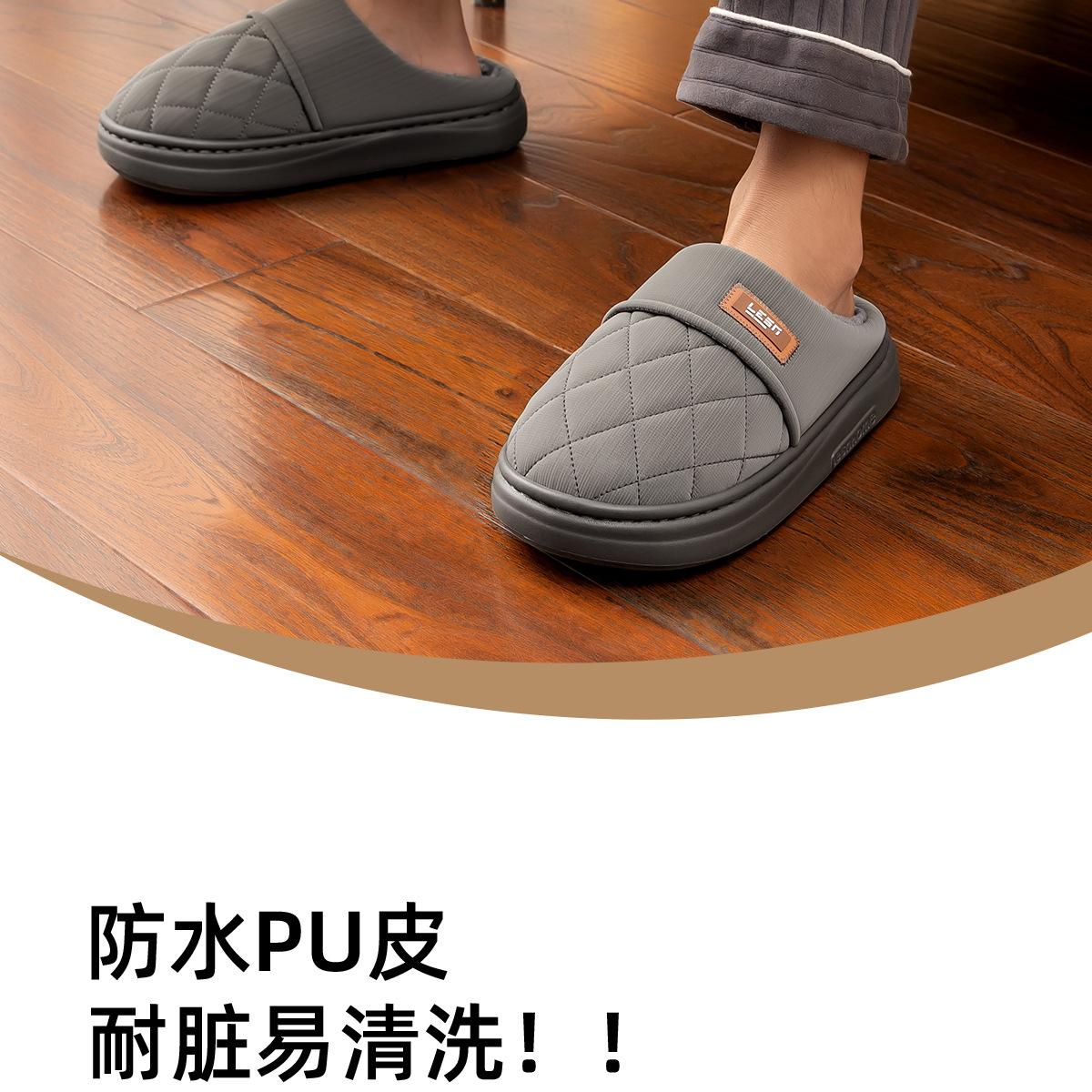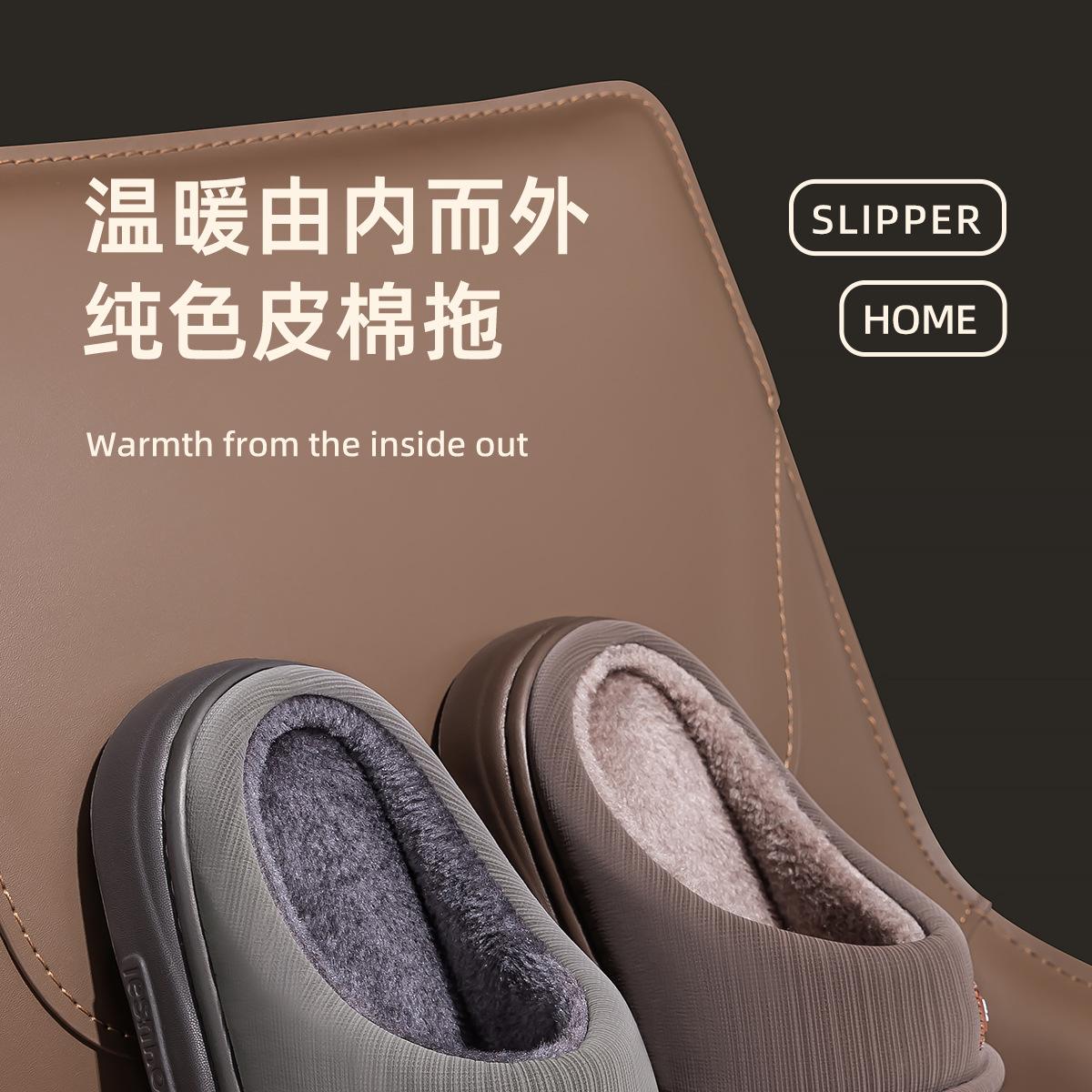 Pantuflas de Algodón Impermeables para Mujer Otoño e Invierno 2024 Nuevo Estilo Hogar Cálidas Felpa Antideslizantes Superficie de Cuero Zapatos de Algodón para Hombre para Usar en Exterior