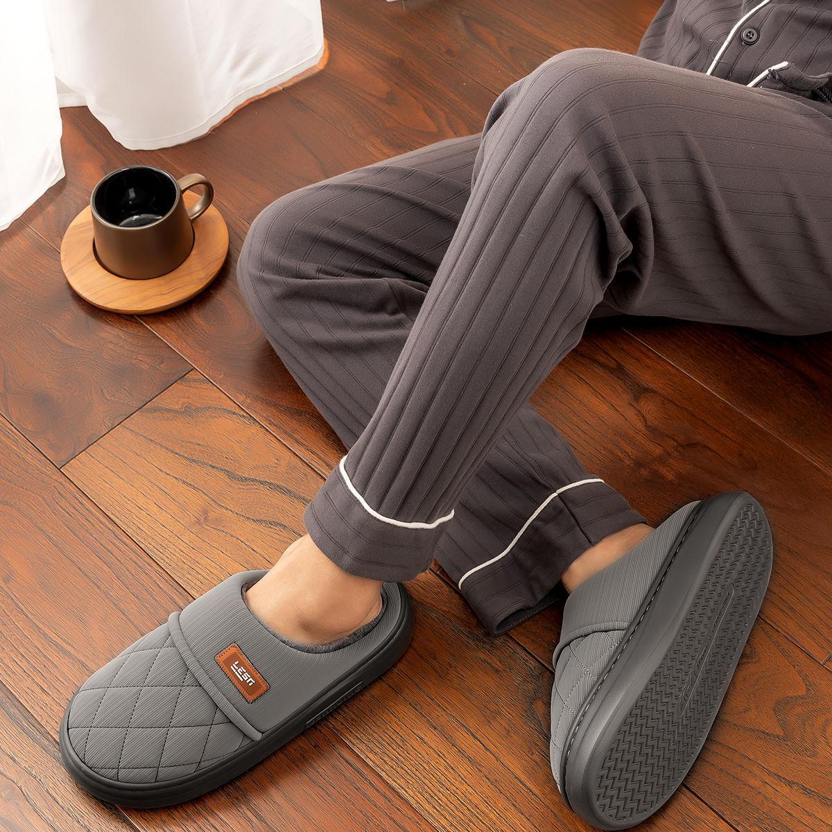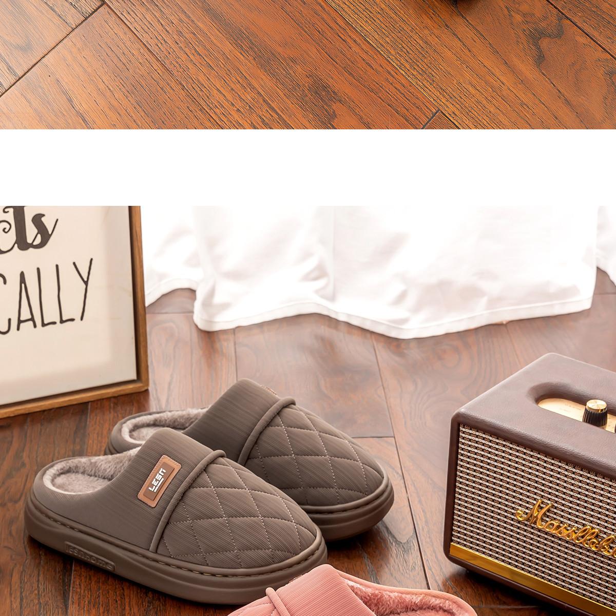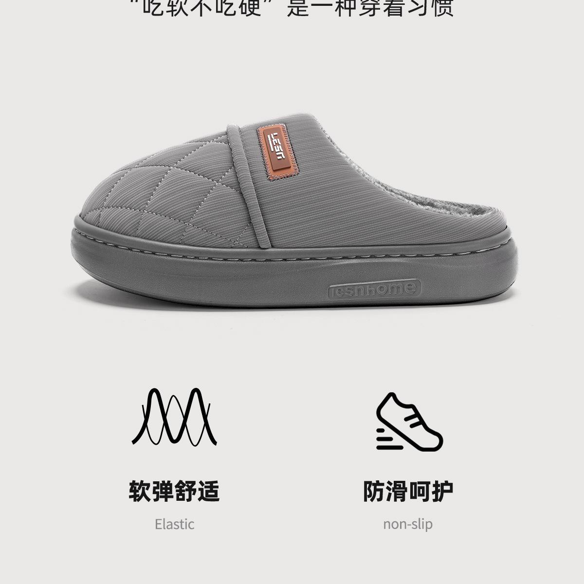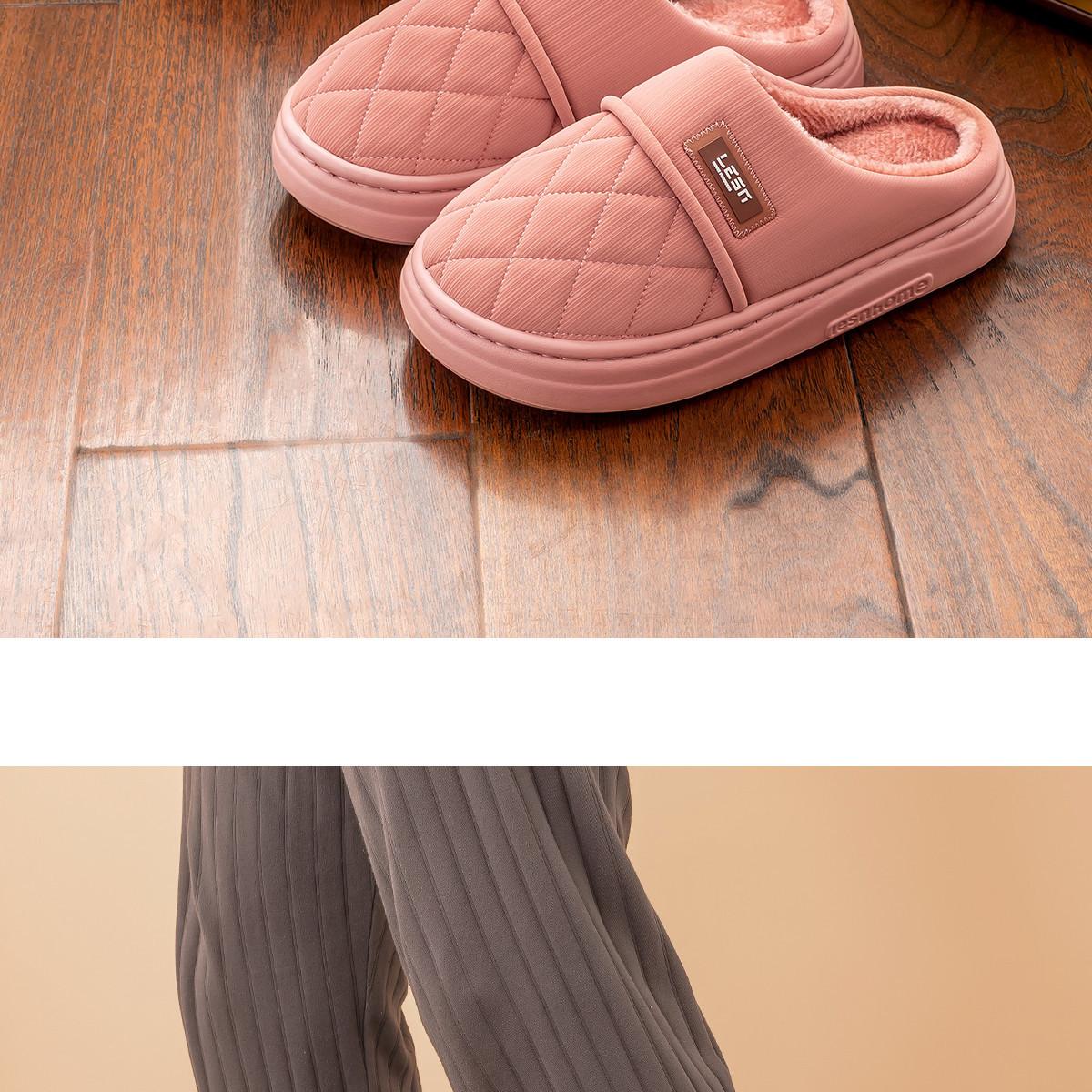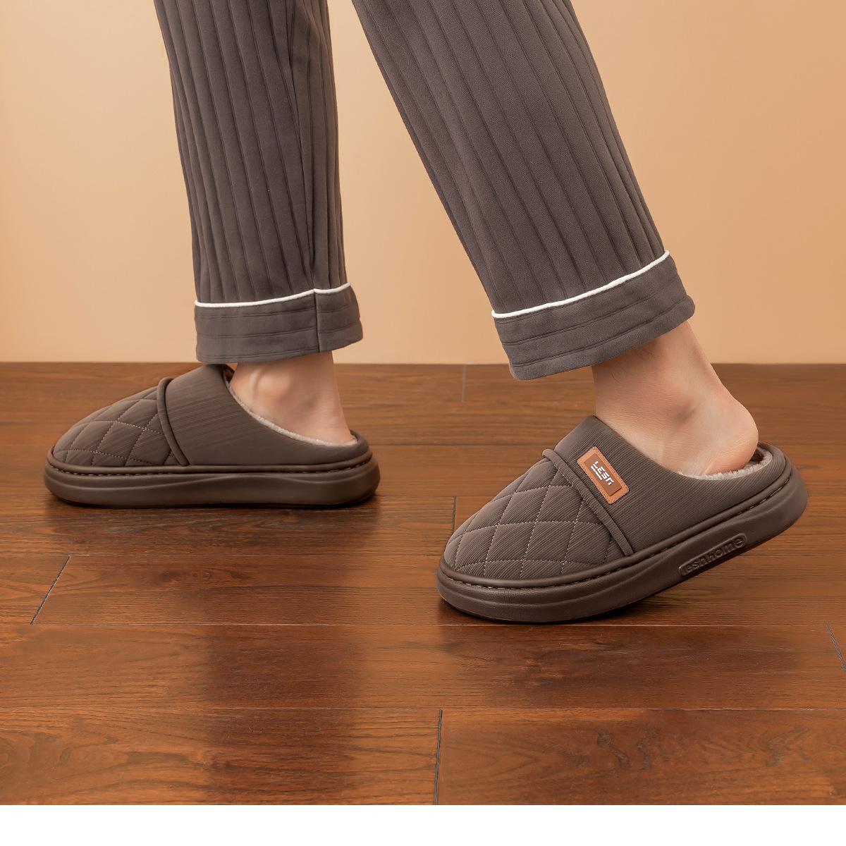Pantuflas de Algodón Impermeables para Mujer Otoño e Invierno 2024 Nuevo Estilo Hogar Cálidas Felpa Antideslizantes Superficie de Cuero Zapatos de Algodón para Hombre para Usar en Exterior
