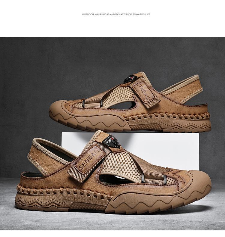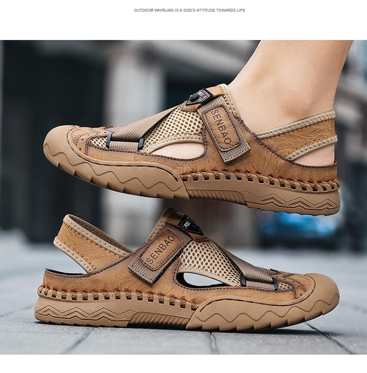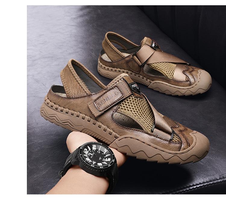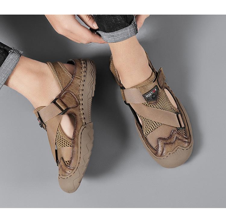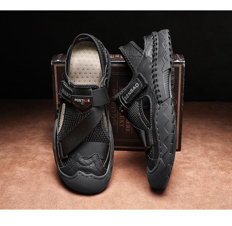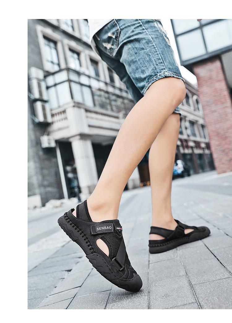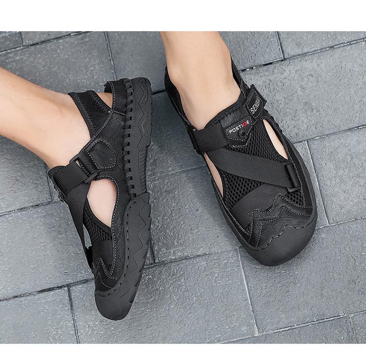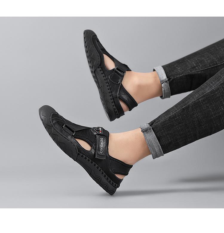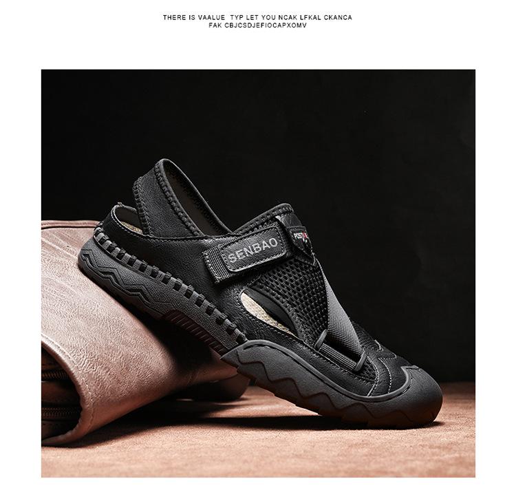 Primavera y Verano Nuevos Zapatos para Hombre Ventas Calientes Transfronterizas Talla Grande Baotou Malla Transpirable Banda Elástica Sandalias de Playa Dropshipping