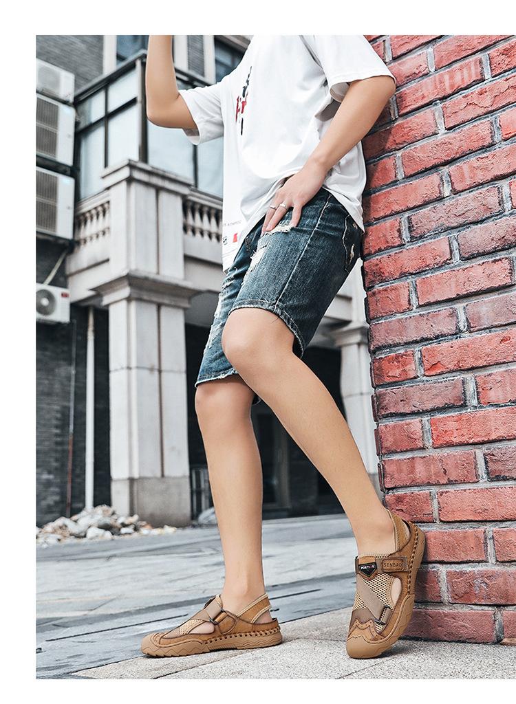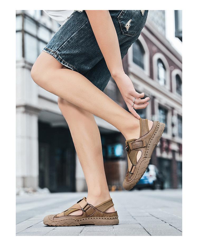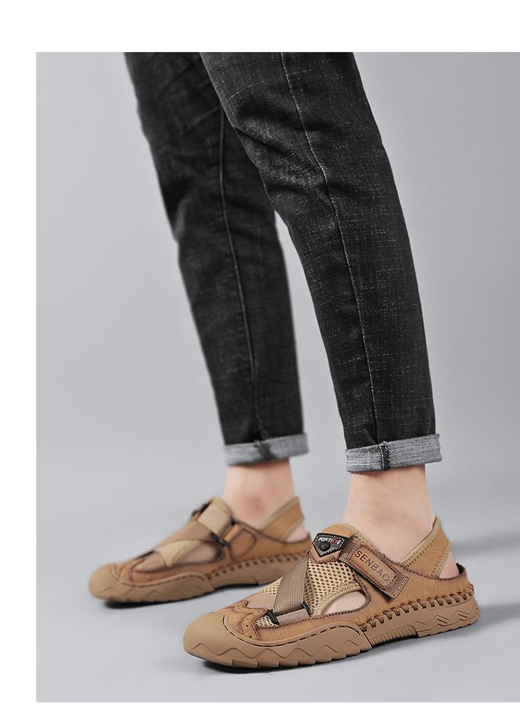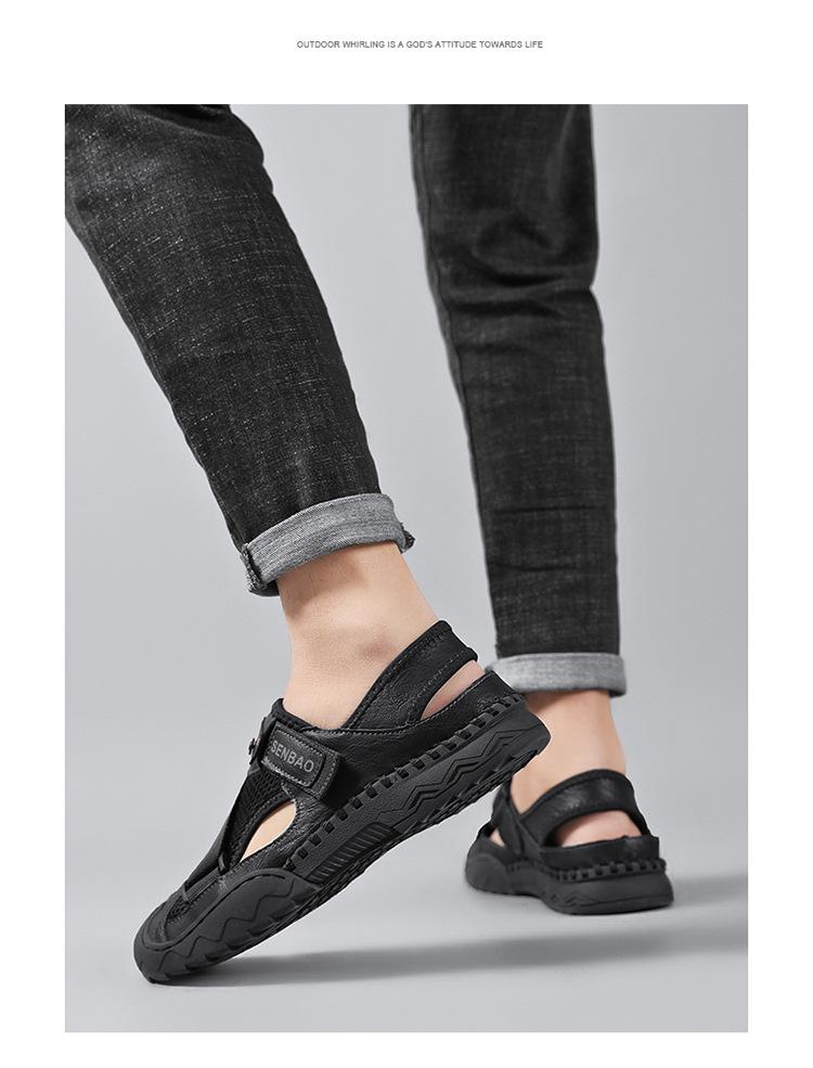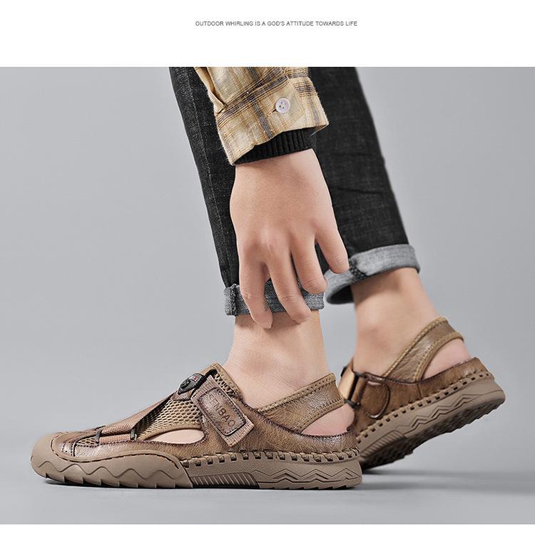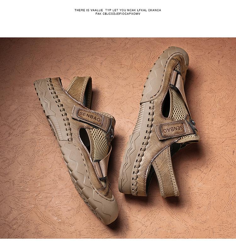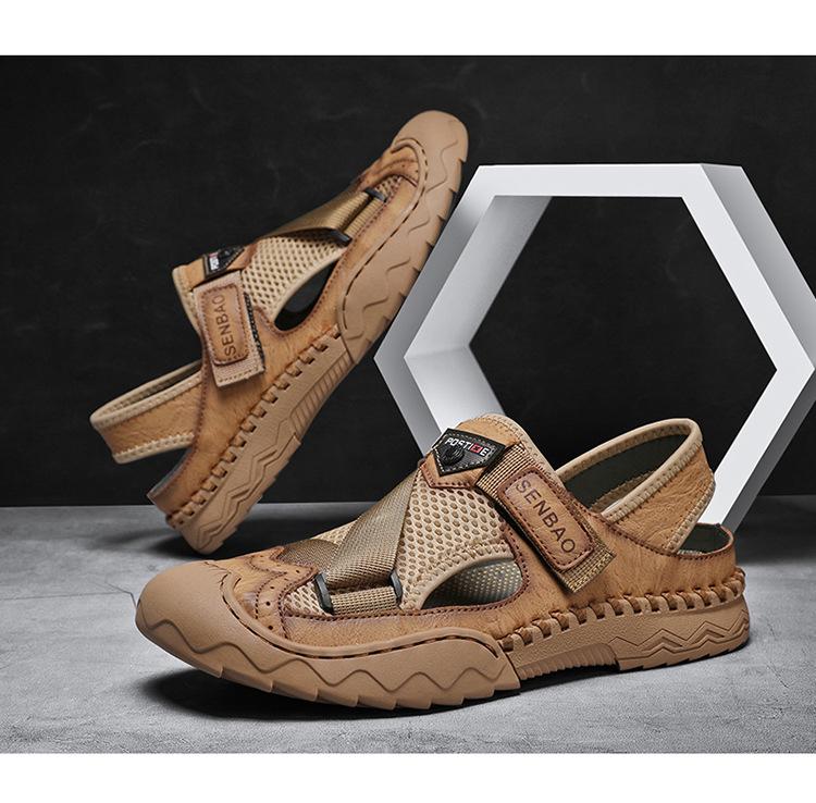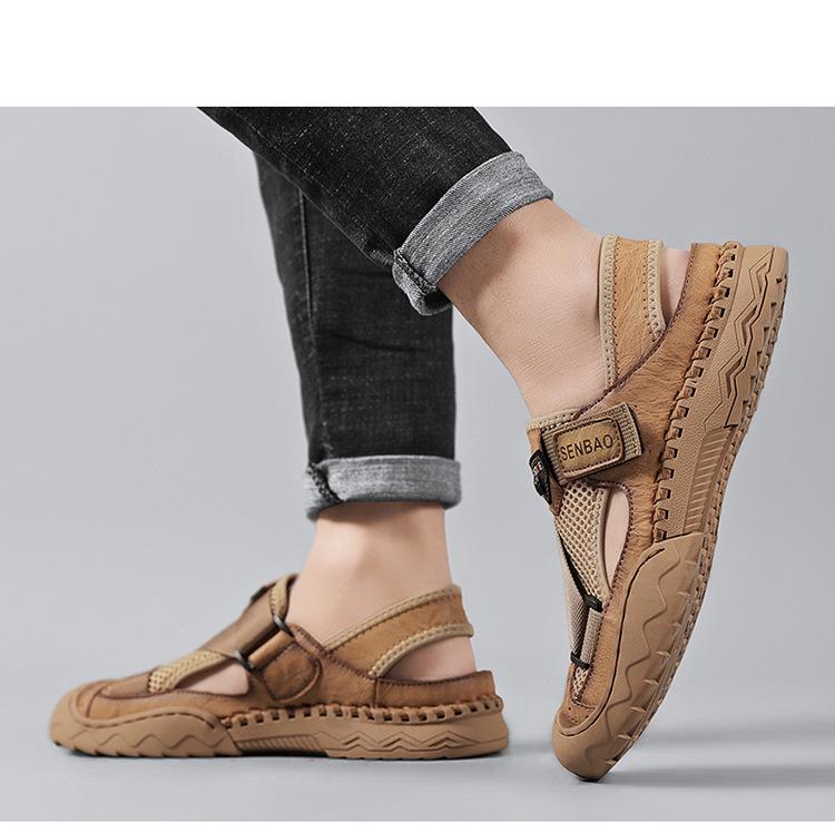Primavera y Verano Nuevos Zapatos para Hombre Ventas Calientes Transfronterizas Talla Grande Baotou Malla Transpirable Banda Elástica Sandalias de Playa Dropshipping