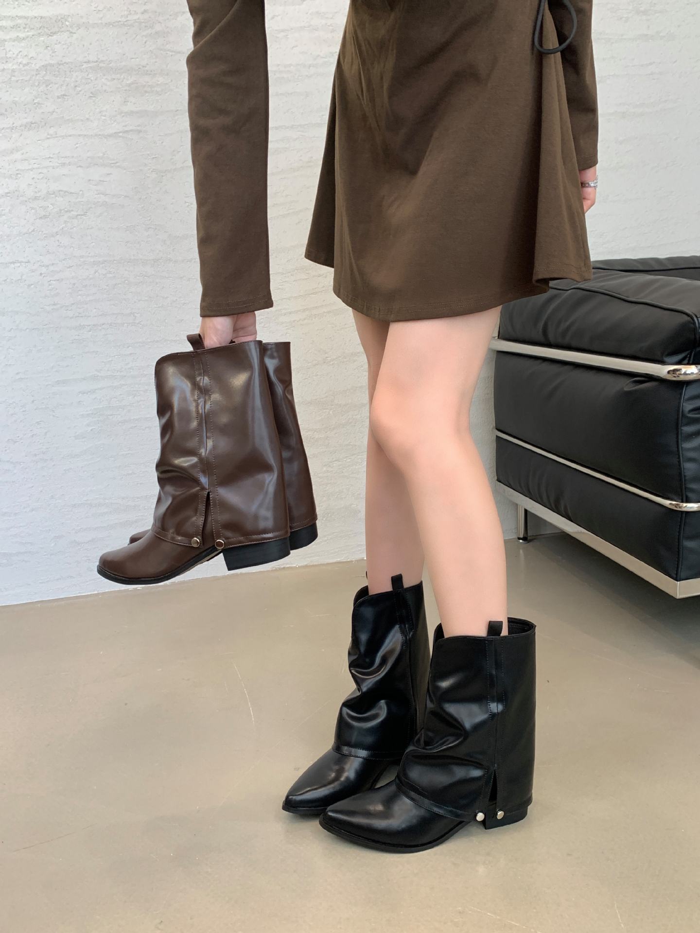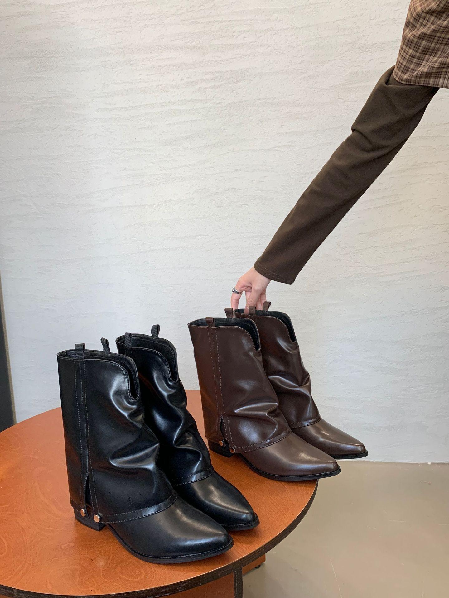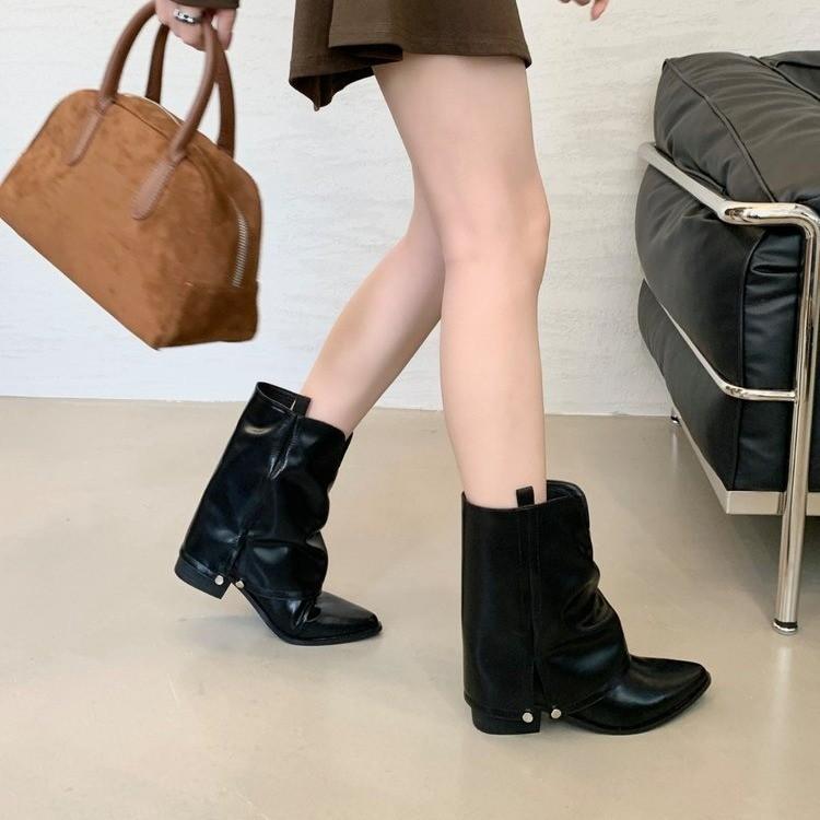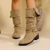 Botas de Punta Afilada por Encima de la Rodilla Estilo Urbano Botas de Moda Mujer 2025 Nuevo Otoño/Invierno Botas Vaqueras Occidentales Cómodo Tacón de Bloque Botas de Invierno