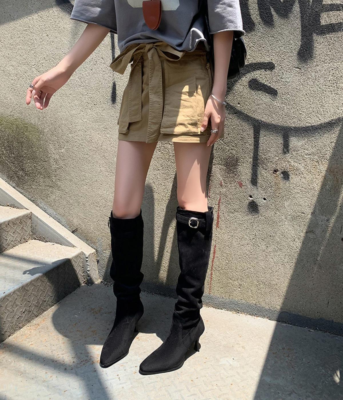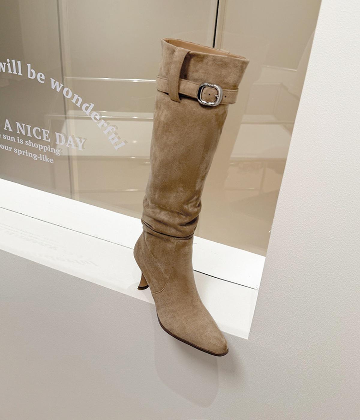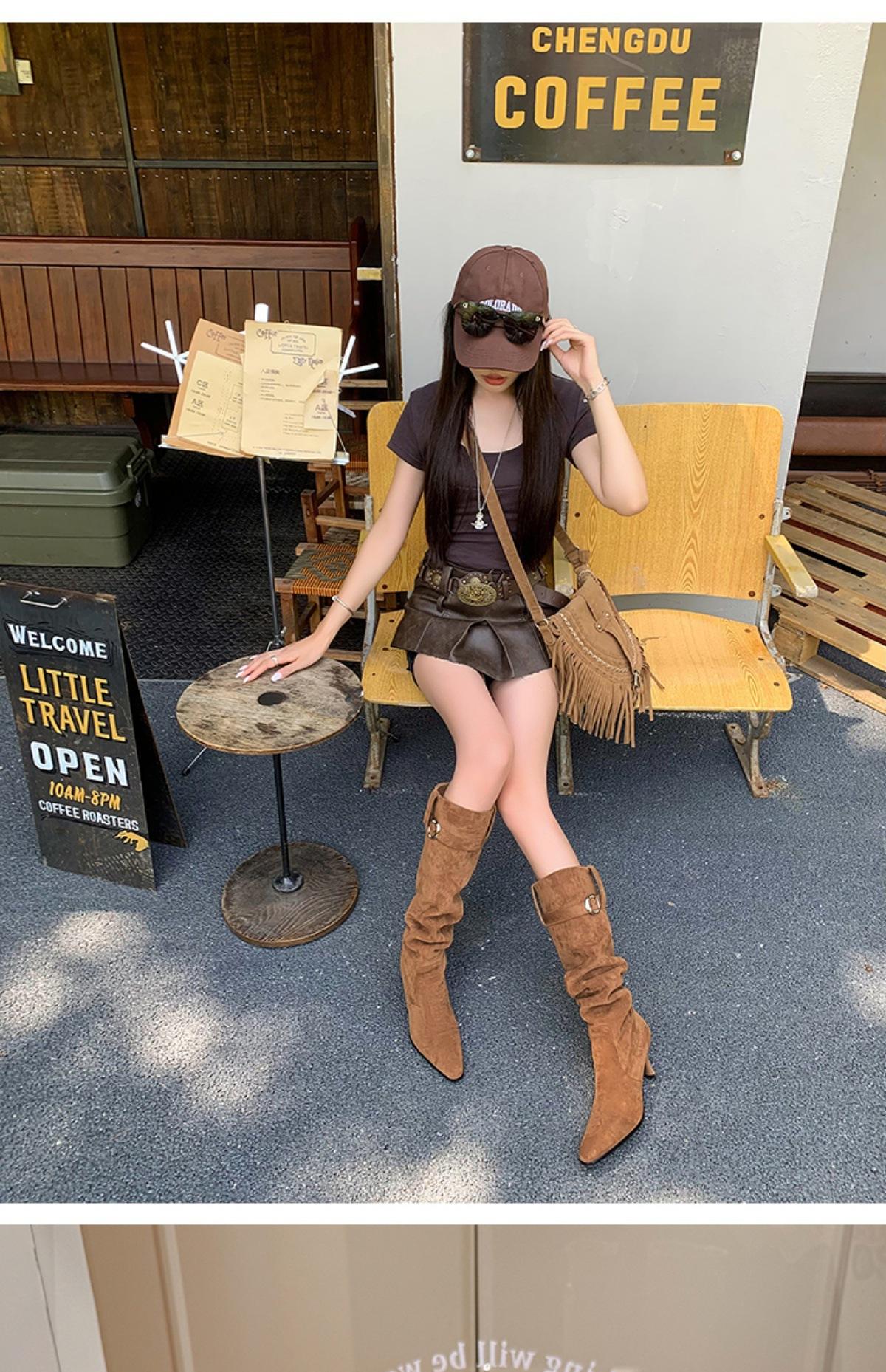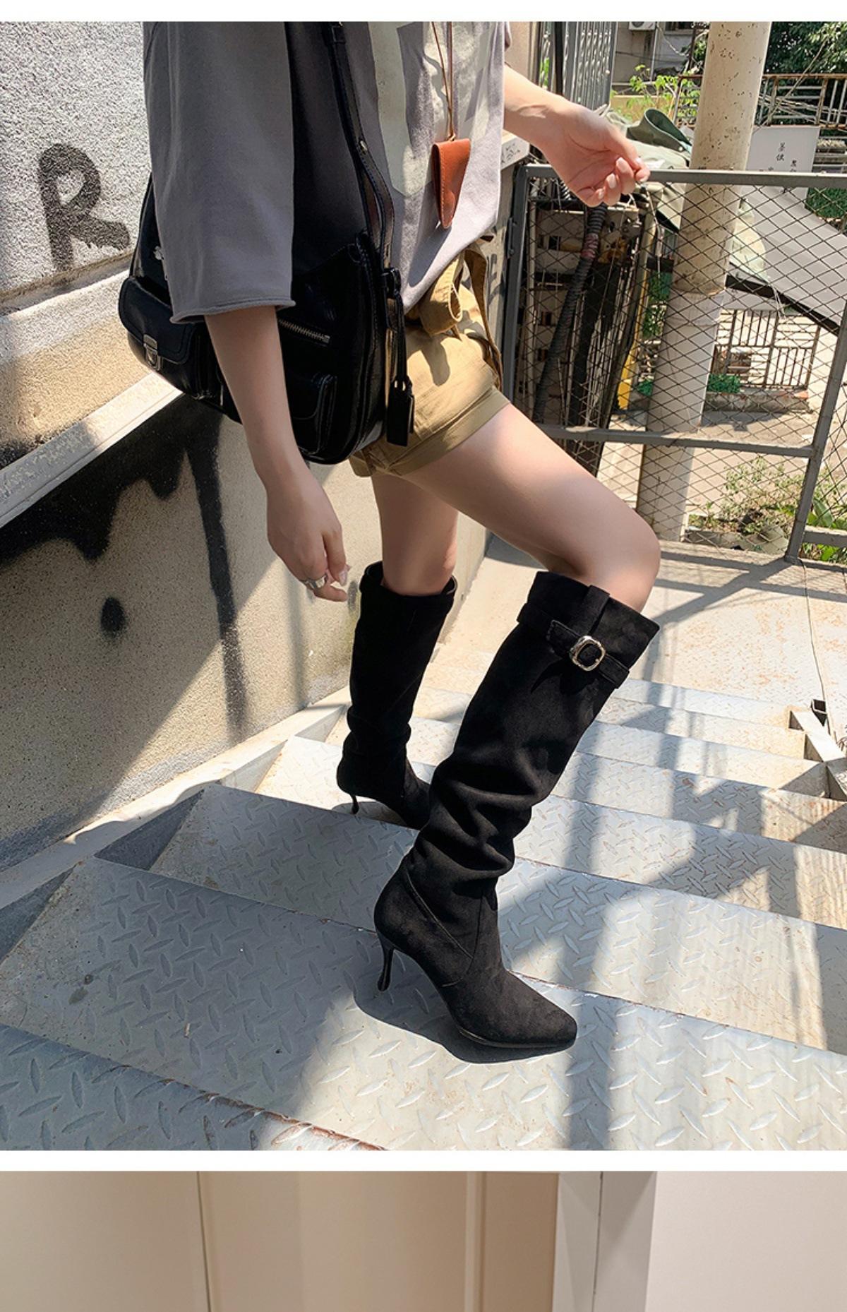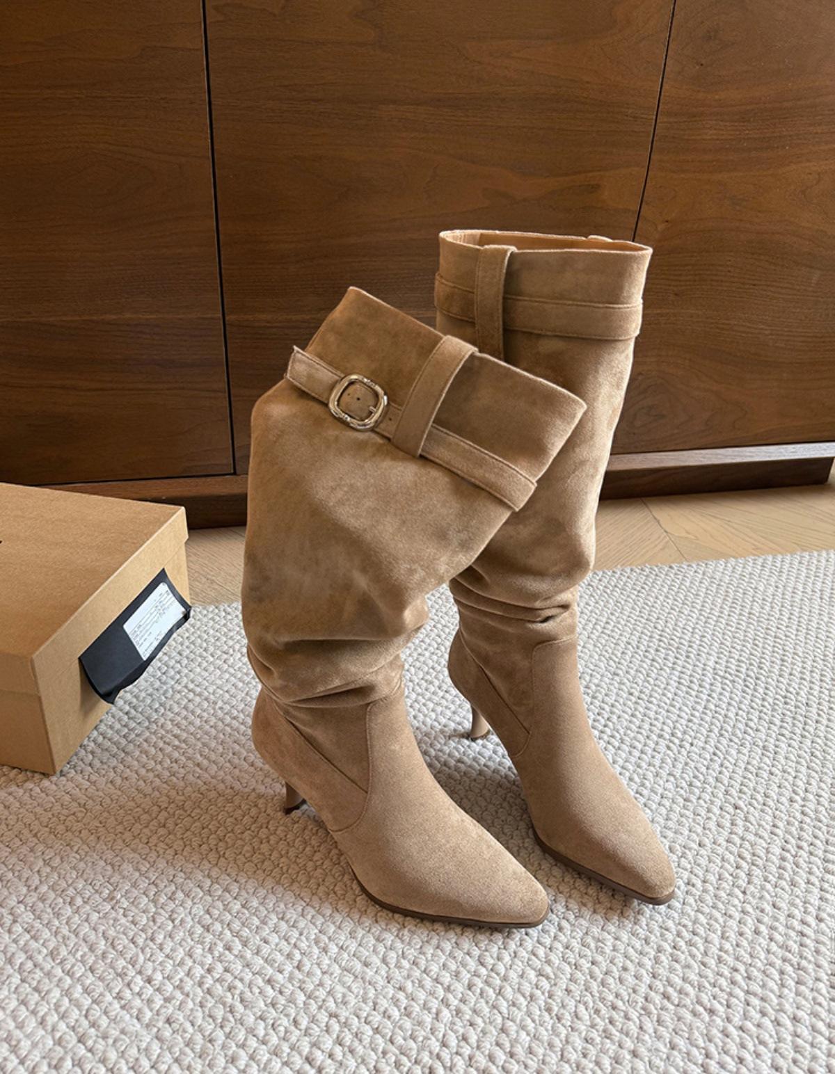 Botas Apiladas Fruncidas de Punta Europea y Americana para Mujer 2025 Otoño/Invierno Nuevo Estilo Tacón de Aguja Botas Altas hasta la Rodilla Temperamento Adelgazantes Botas Altas Mujer
