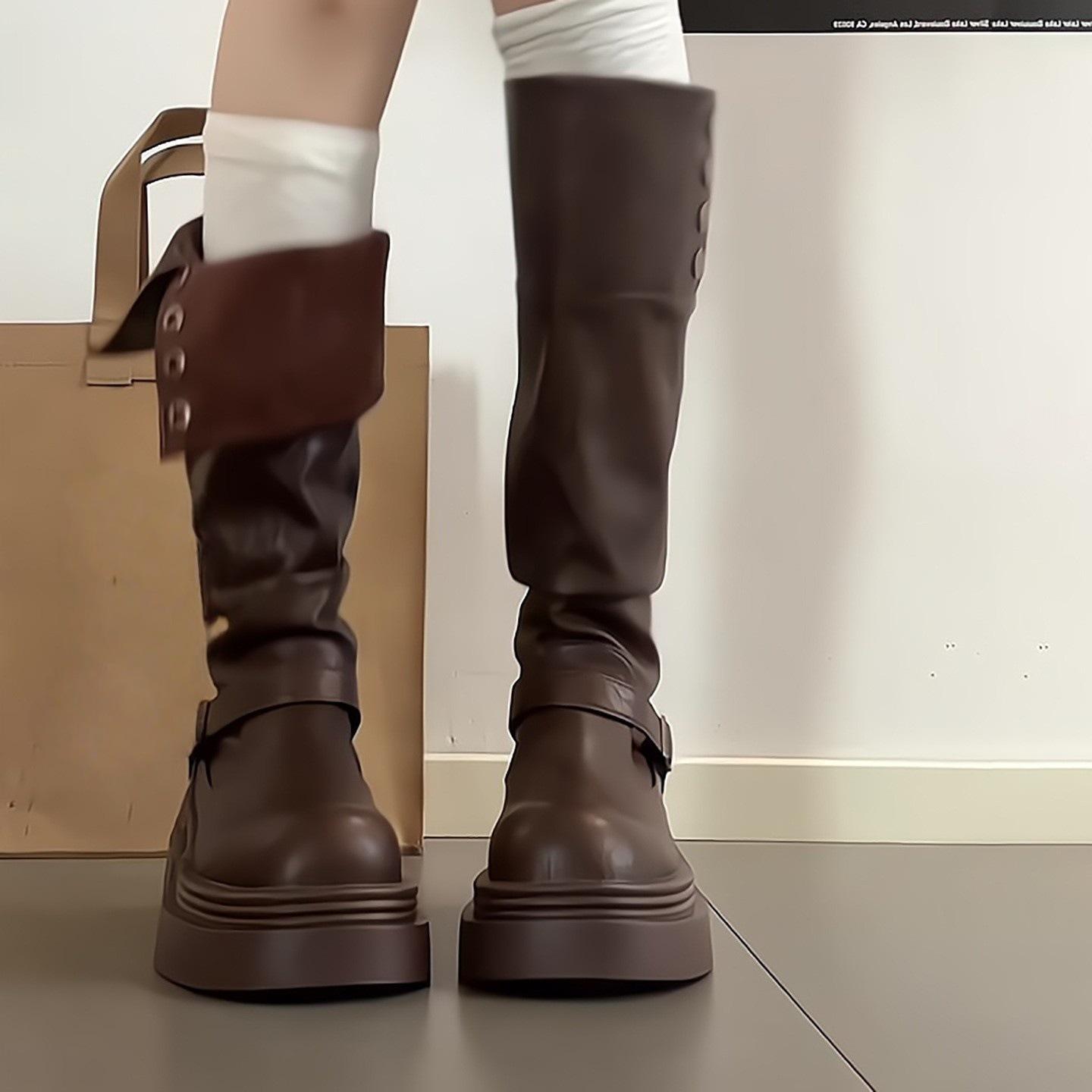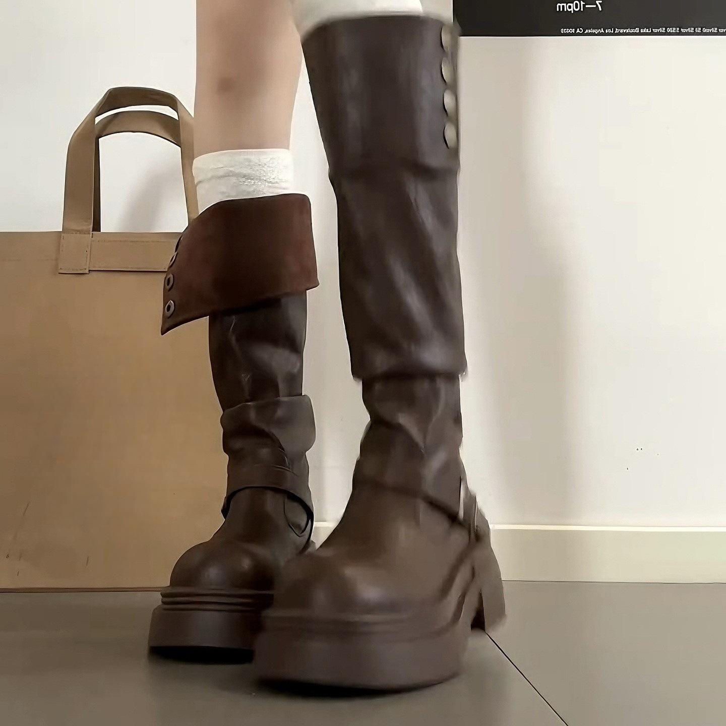 Botas Retro de Plataforma con Tacón Grueso para Chica Picante por Encima de la Rodilla para Mujer Verano 2025 Nuevo Botas de Caballero Adelgazantes