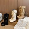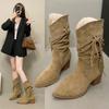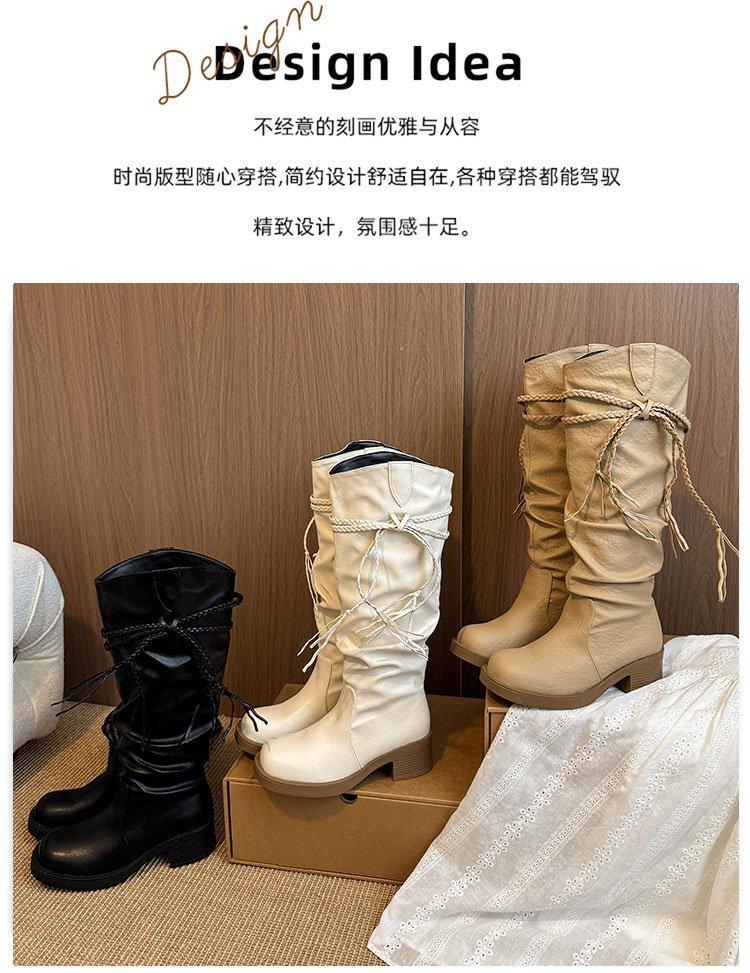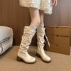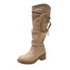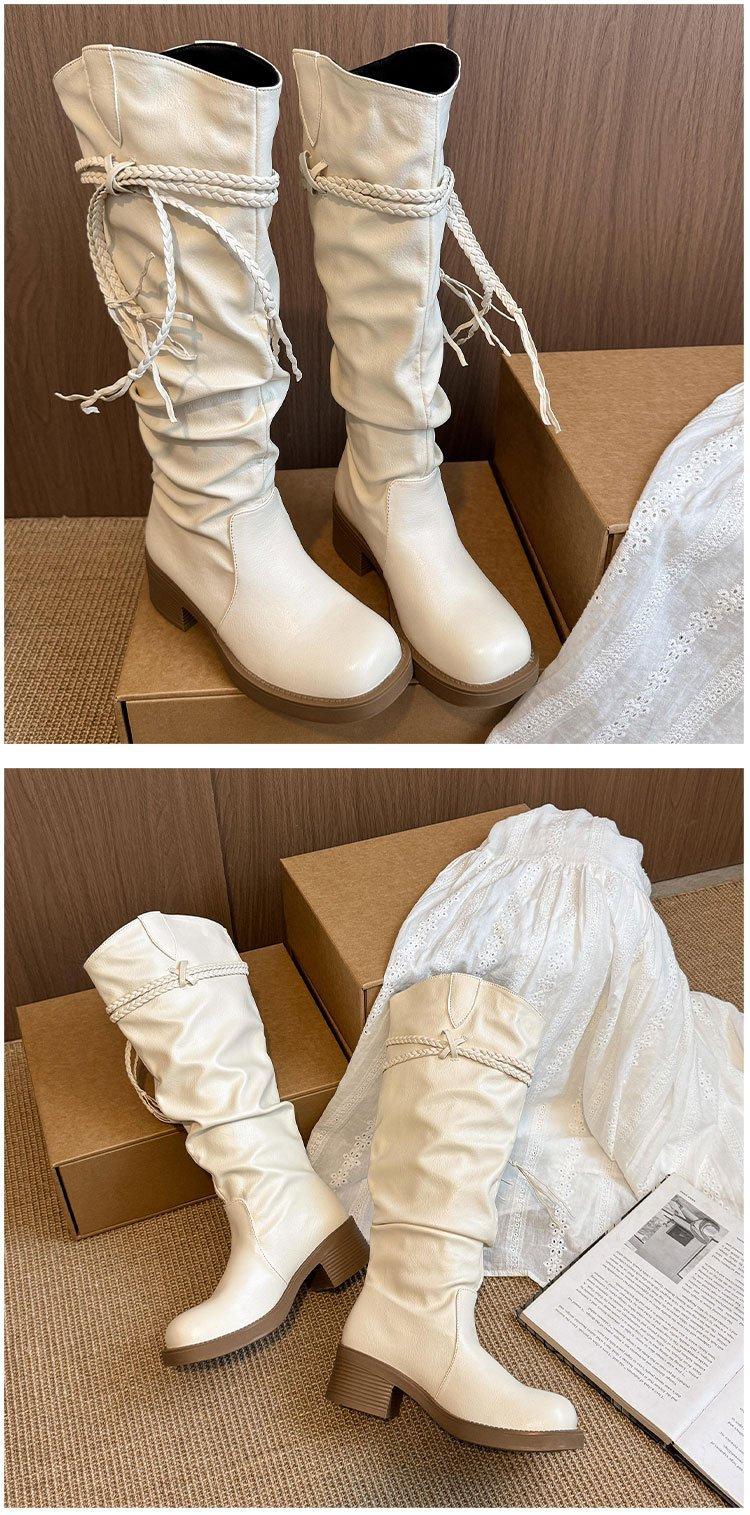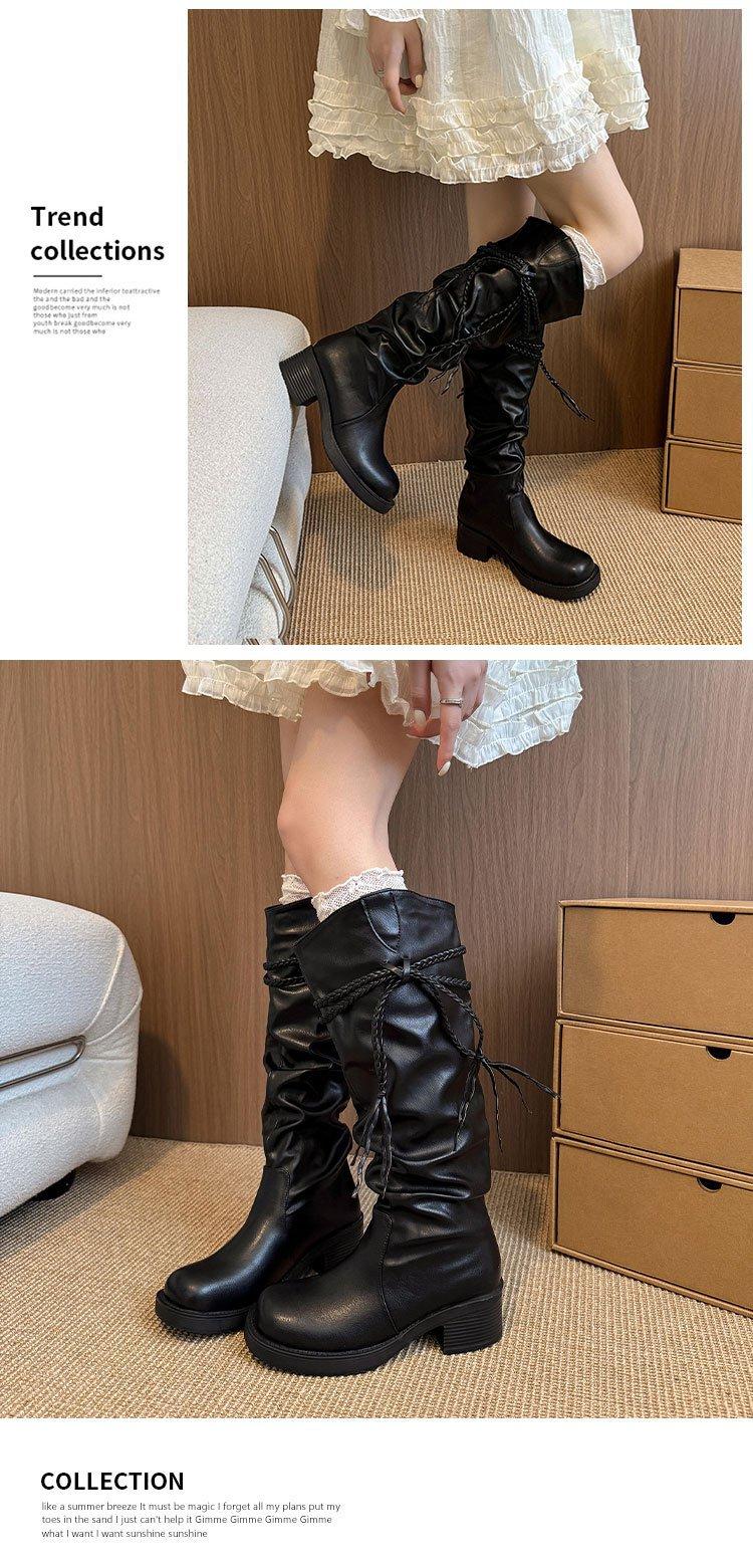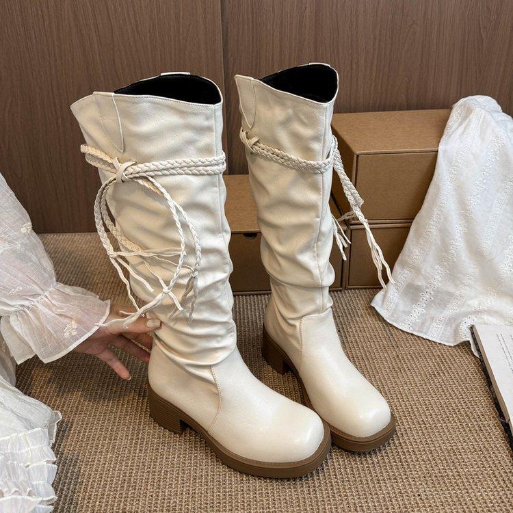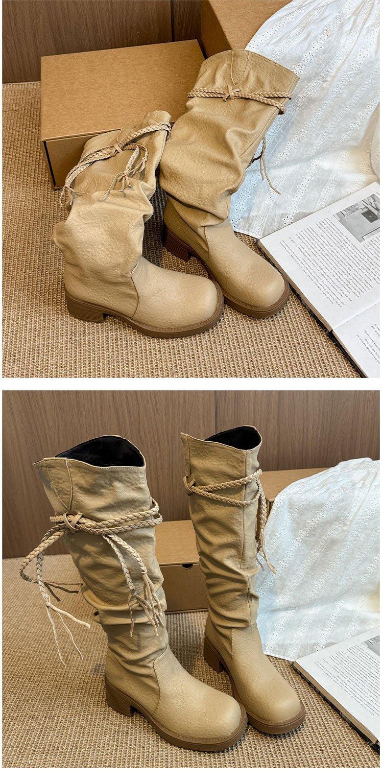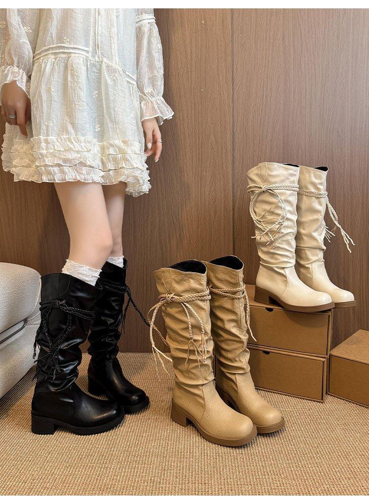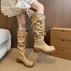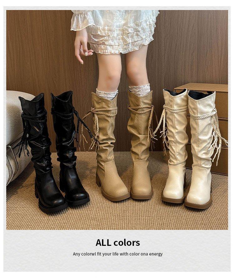 Botas de Caballero con Borlas Retro de Otoño 2025 Tacón Grueso por Encima de la Rodilla Botas Largas Adelgazantes Apiladas Punta Afilada Estilo Retro para Mujer