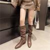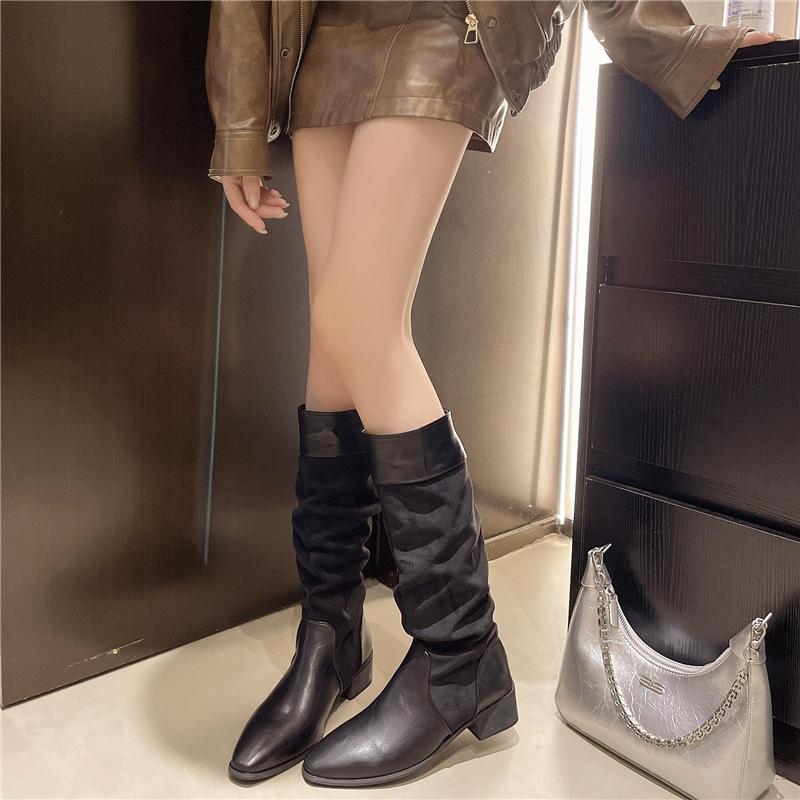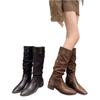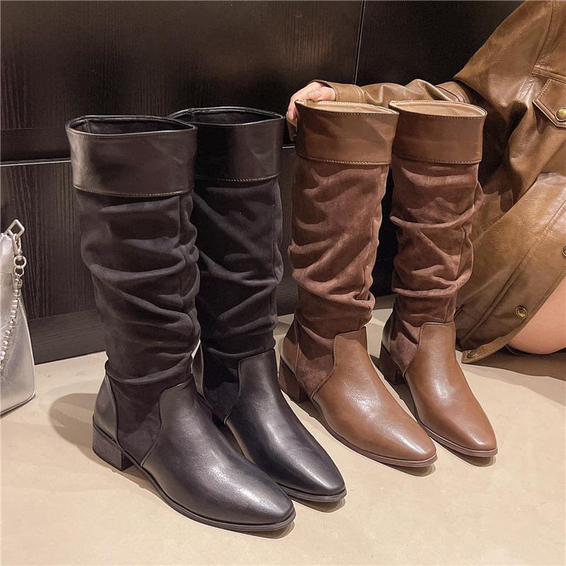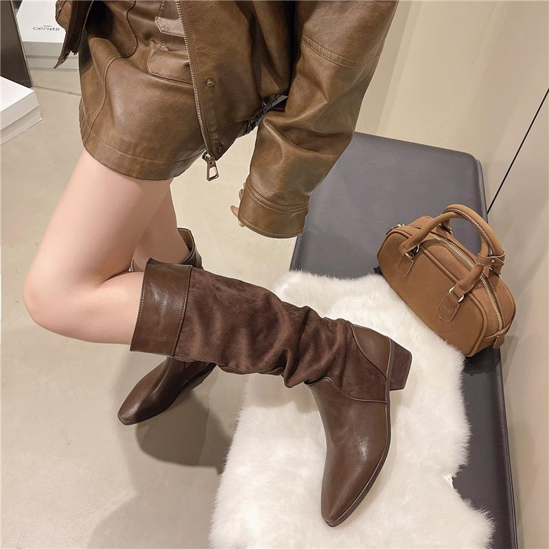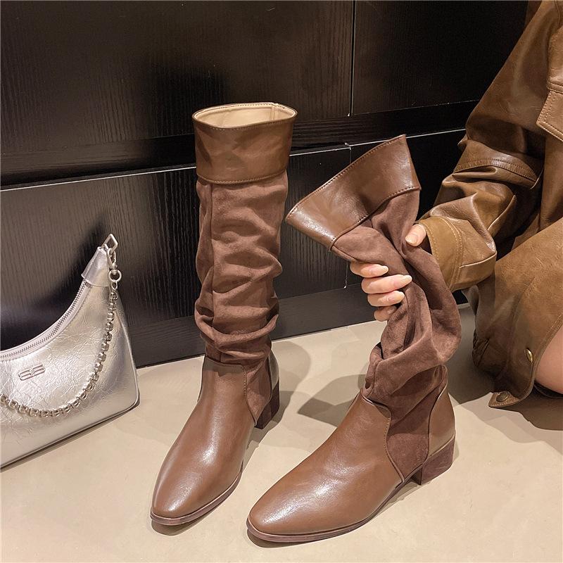 Botas de Moda Otoño/Invierno 2025 Retro Europeas y Americanas Punta Cuadrada Tacón Medio Caña Alta Cuero Suave Botas de Mujer Botas de Moda Zapatos de Mujer de Lujo Ligero Material PU