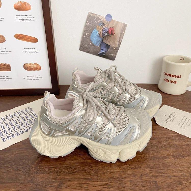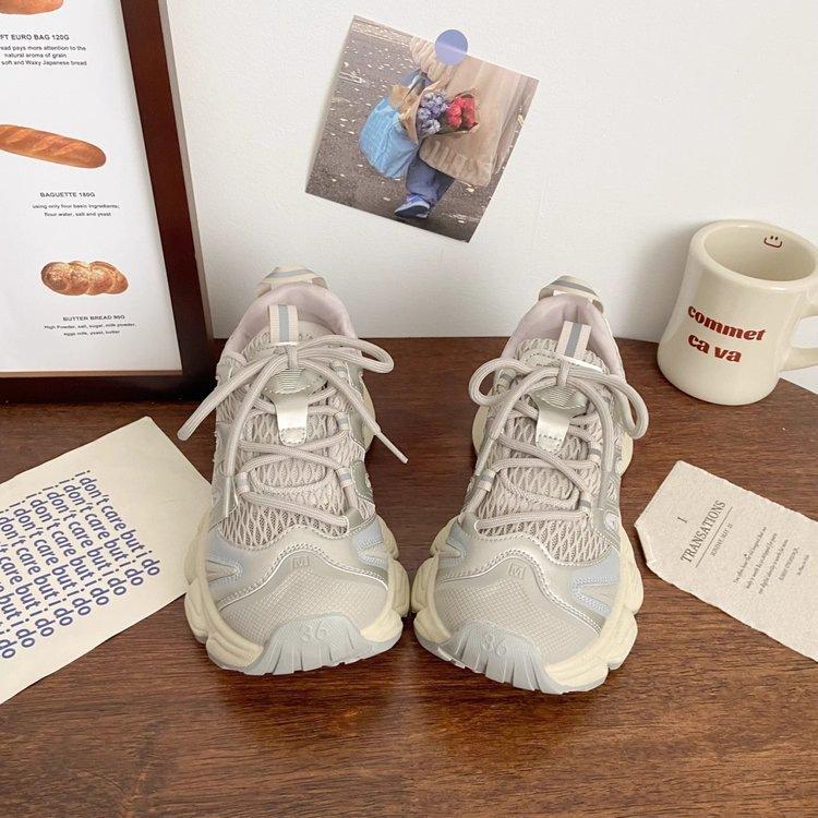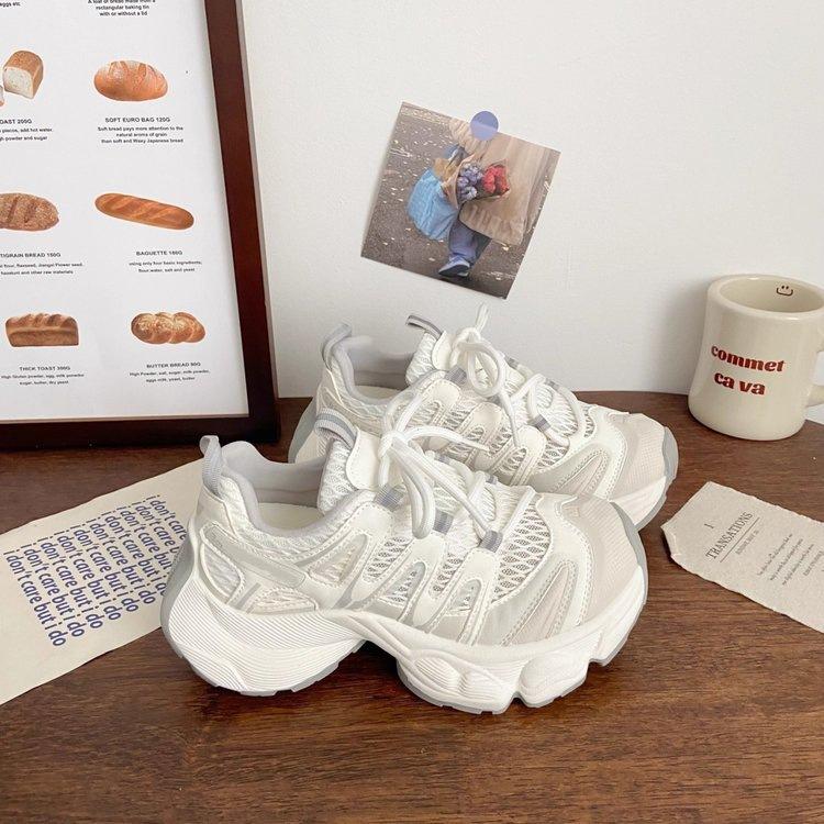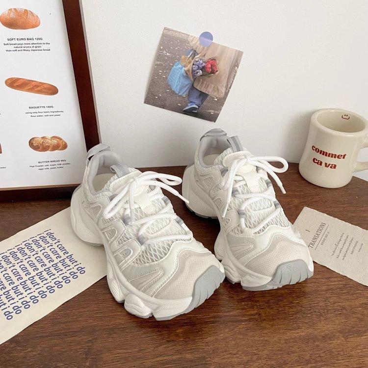 Nicho Estilo Coreano Estudiante Zapatos Blancos de Suela Gruesa Otoño 2025 Nuevo Chic Estilo Caliente Deportivo Malla Zapatos de Papá Viejos Mujer
