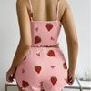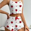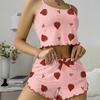 Verano Nuevo Europeo y Americano 2024 Tejido Punto Pit Amor Diseño Estampado Dulce Tirantes Shorts Pijama Puro