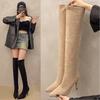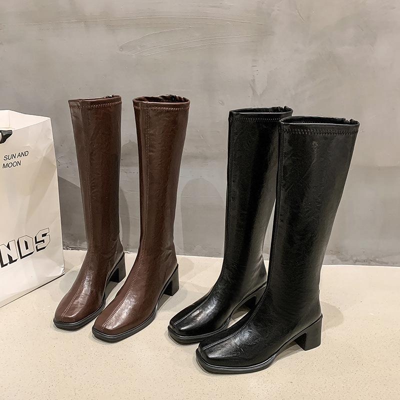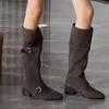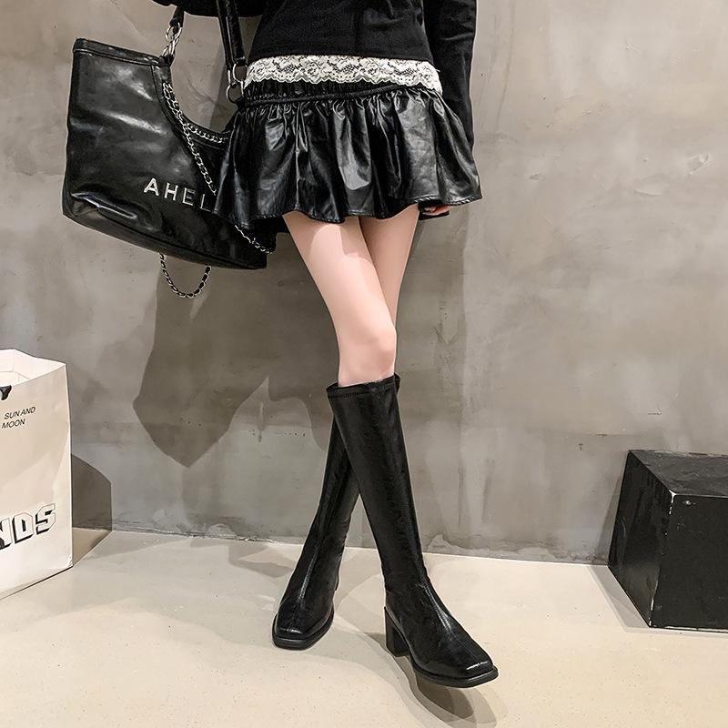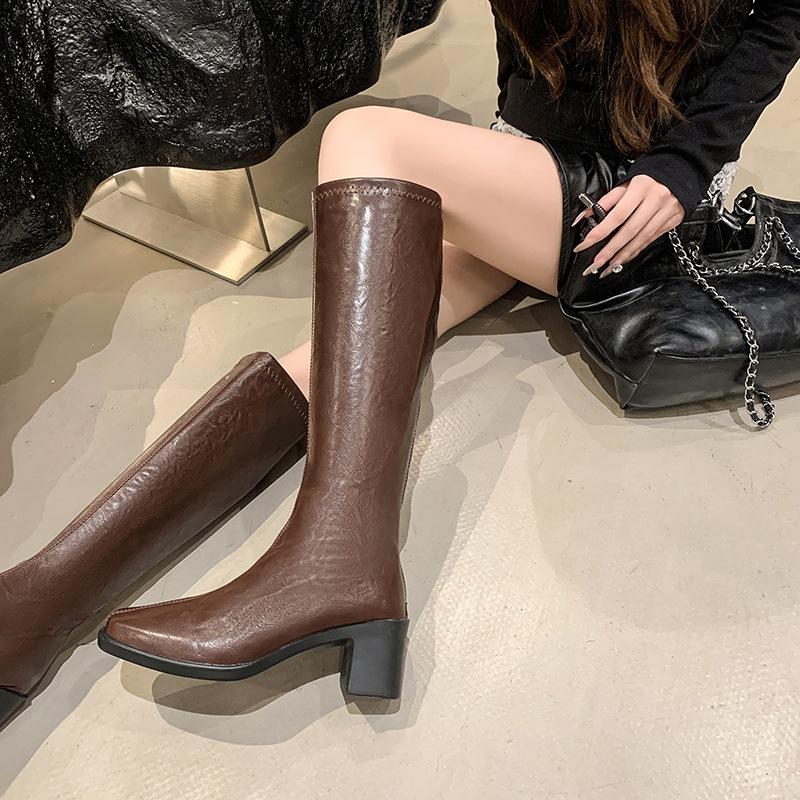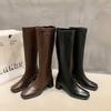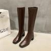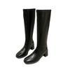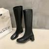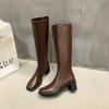 Botas de Caballero de Verano 2025 de Caña Alta y Punta Redonda con Tacón Medio para Mujer, Botas Casuales Diarias de Cuero PU, Botas Largas Adelgazantes por Encima de la Rodilla