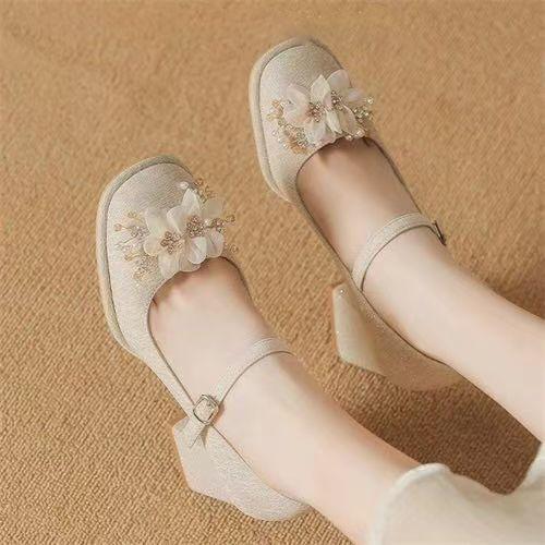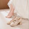 Nicho de alta gama estilo hada de una tira con vestido zapatos de boda zapatos de dama de honor zapatos de mujer 2025 zapatos de tacón grueso de tacón medio