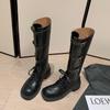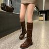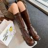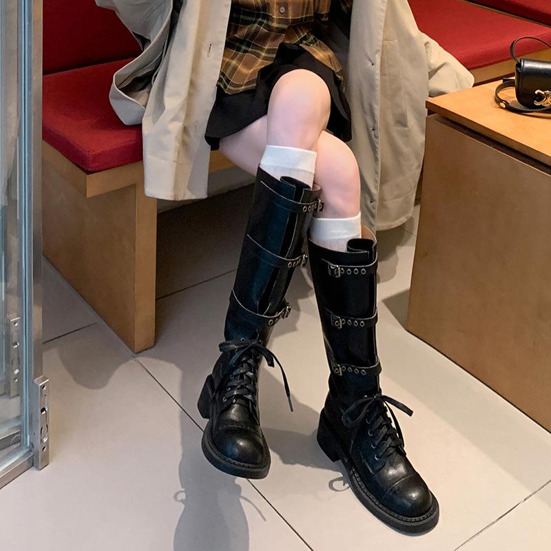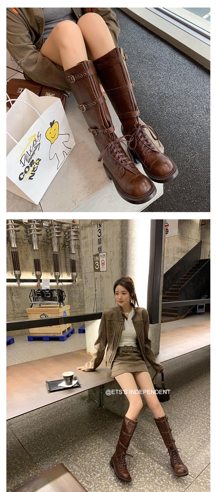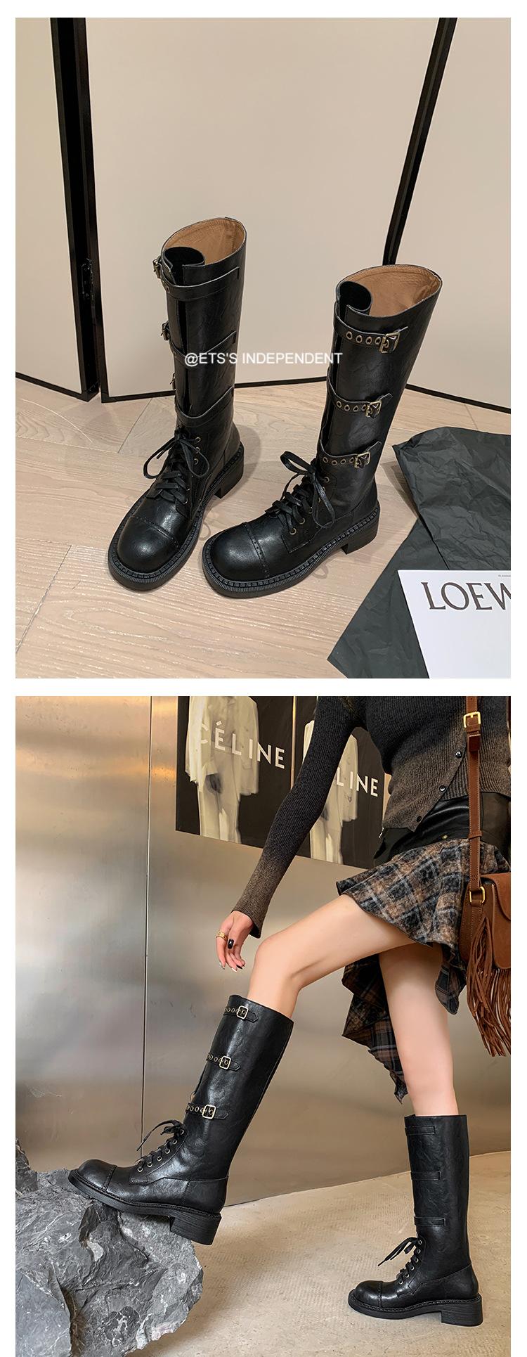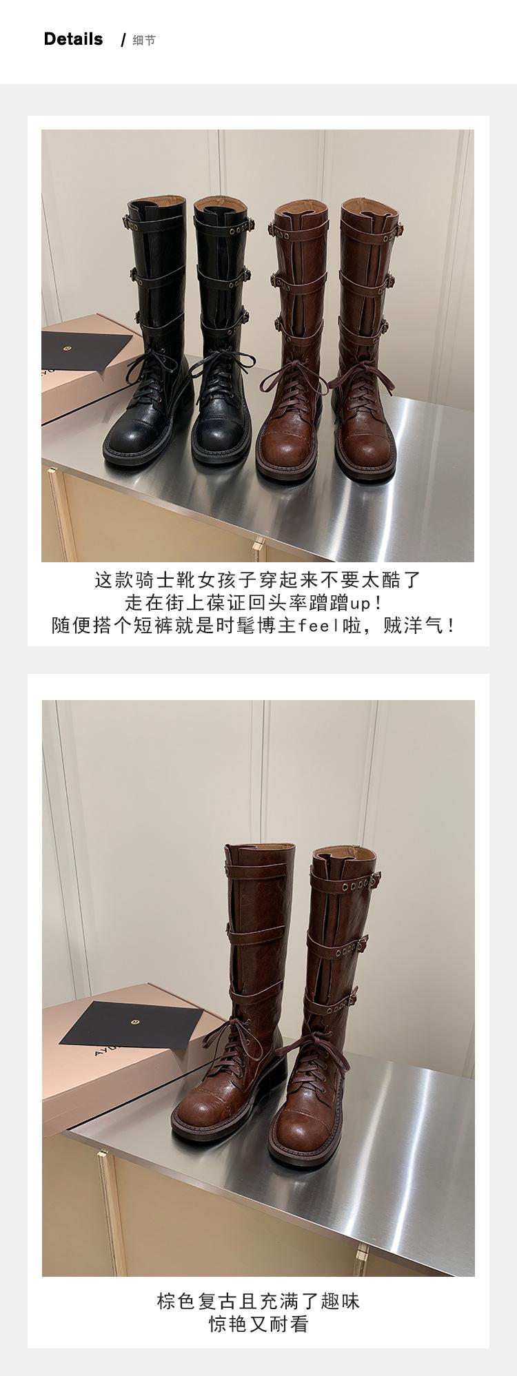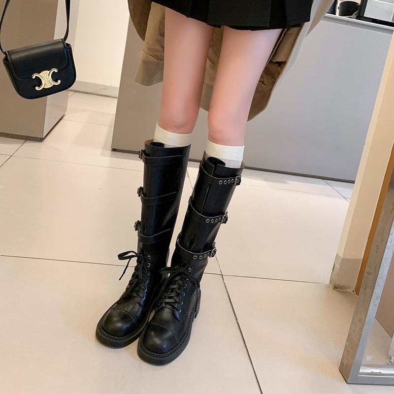 2025 Nuevas Botas de Otoño e Invierno de Punta Redonda con Hebilla de Cinturón para Mujer Botas de Moda de Tacón Grueso Botas de Caballero Botas Altas de Motociclista