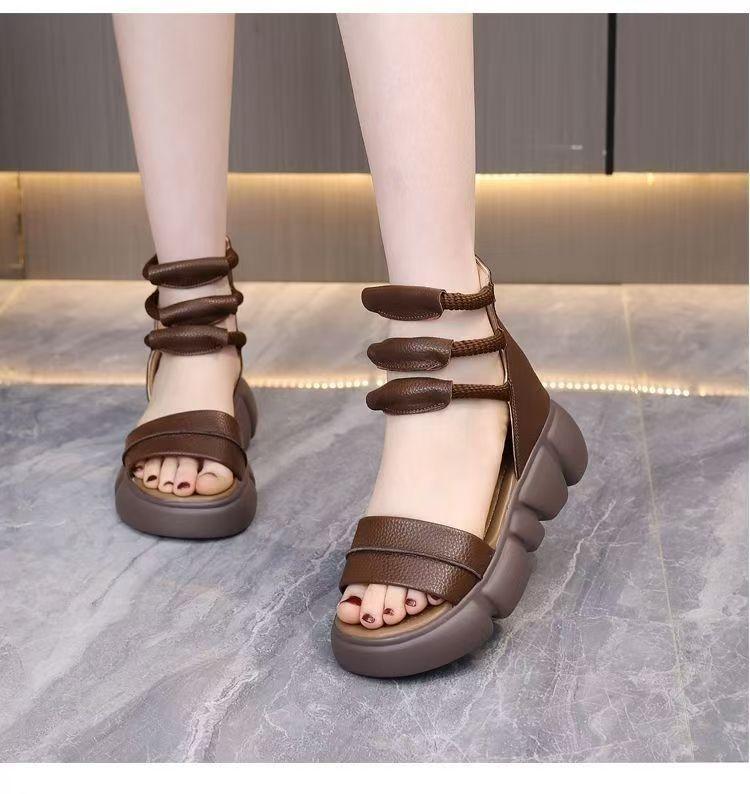 Sandalias Romanas de Nuevo Estilo 2025 para Mujer, Plataforma de Suela Gruesa Punta Abierta Peep-Toe Moda Casual Antideslizantes