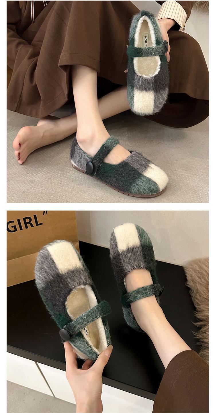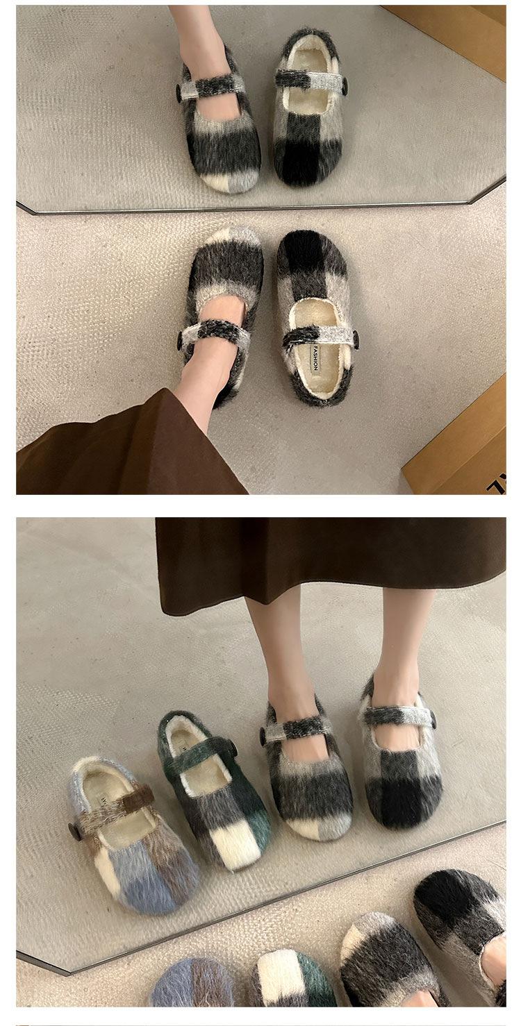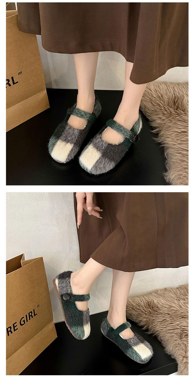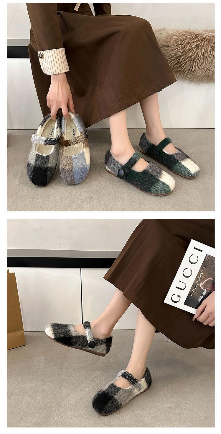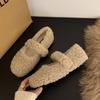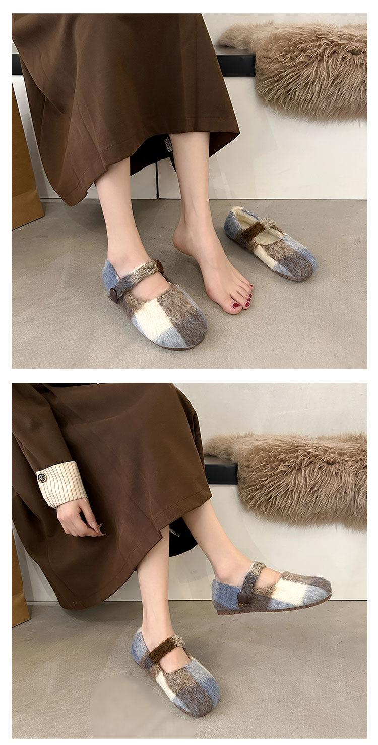 Mary Janes planas forradas de vellón para mujer, ropa exterior de otoño/invierno 2025, zapatos sencillos versátiles de corte bajo estilo Chanel con suela suave