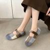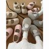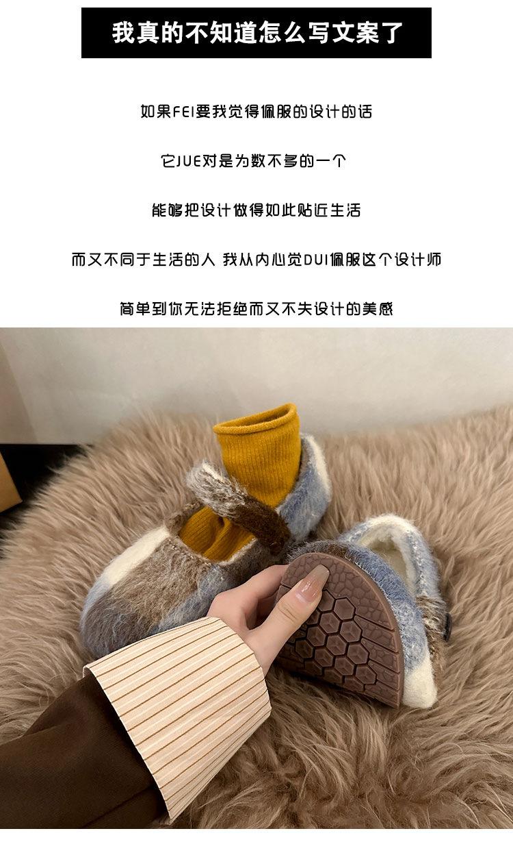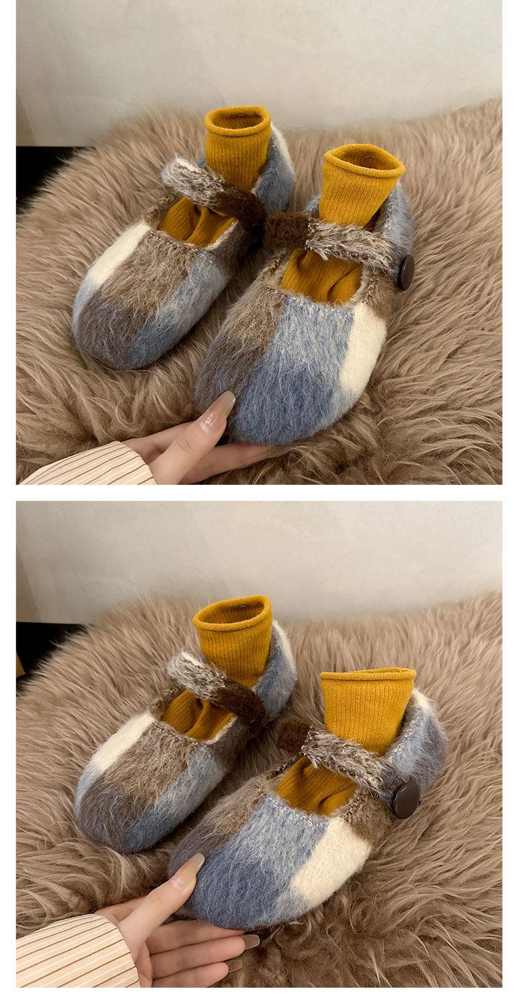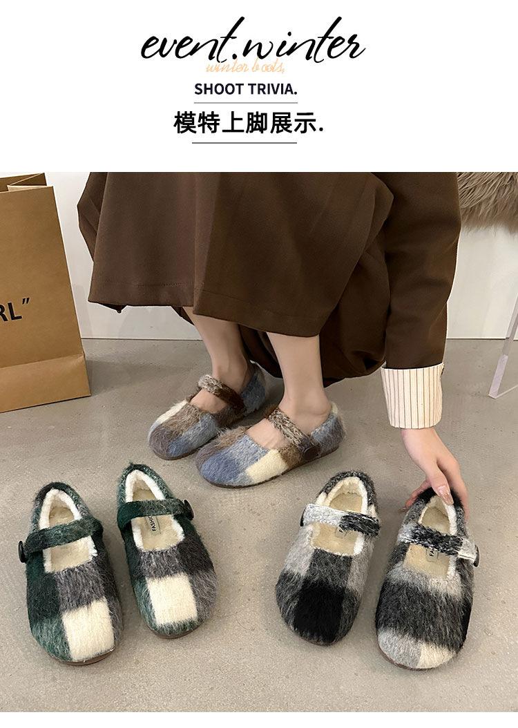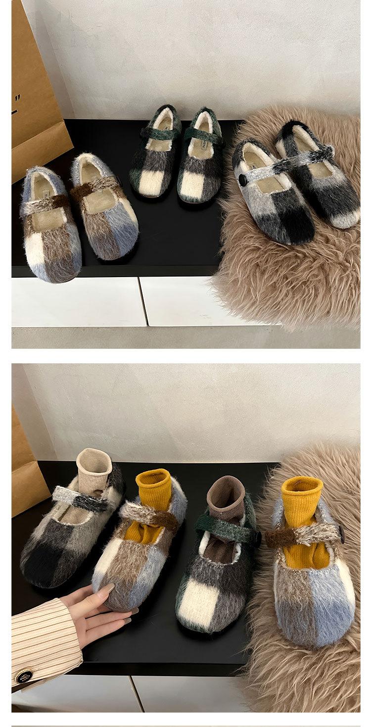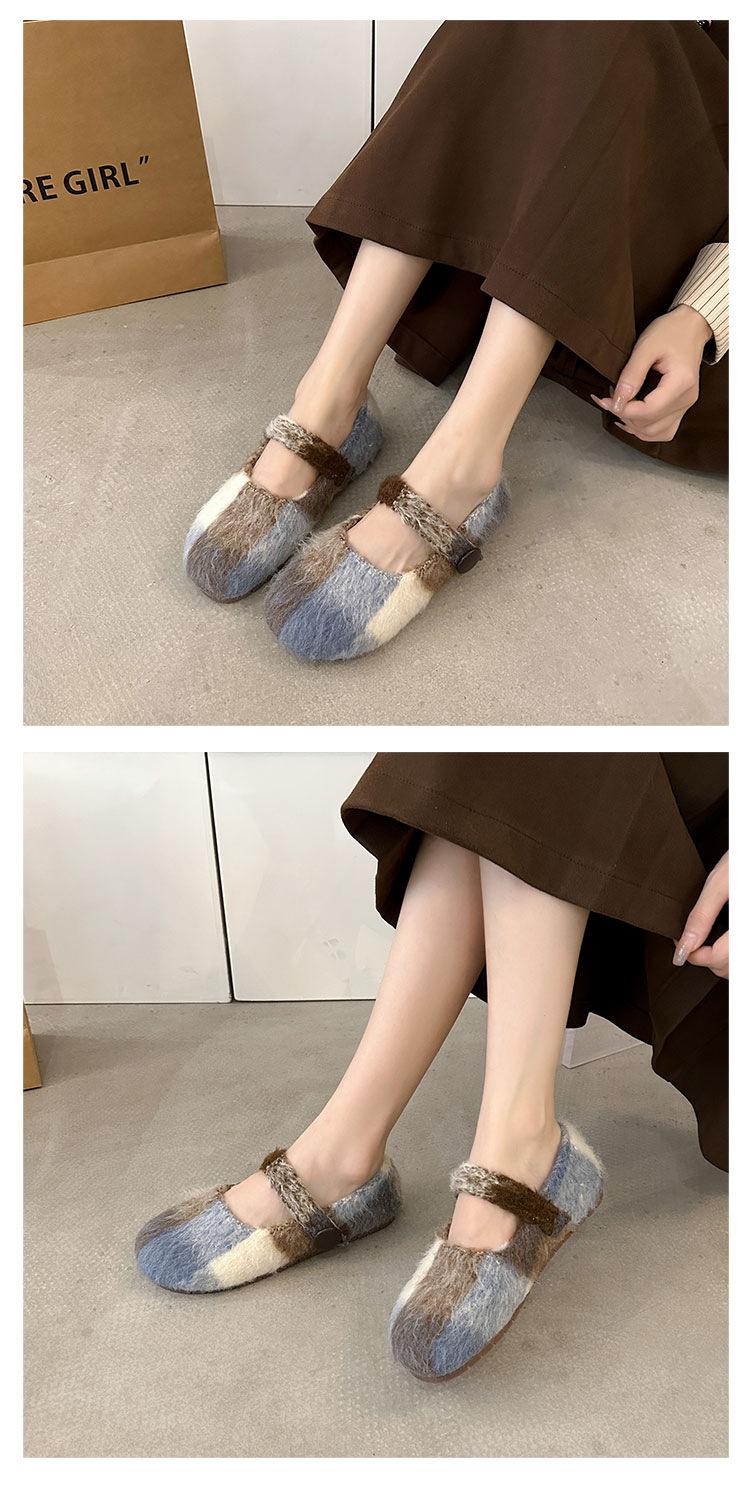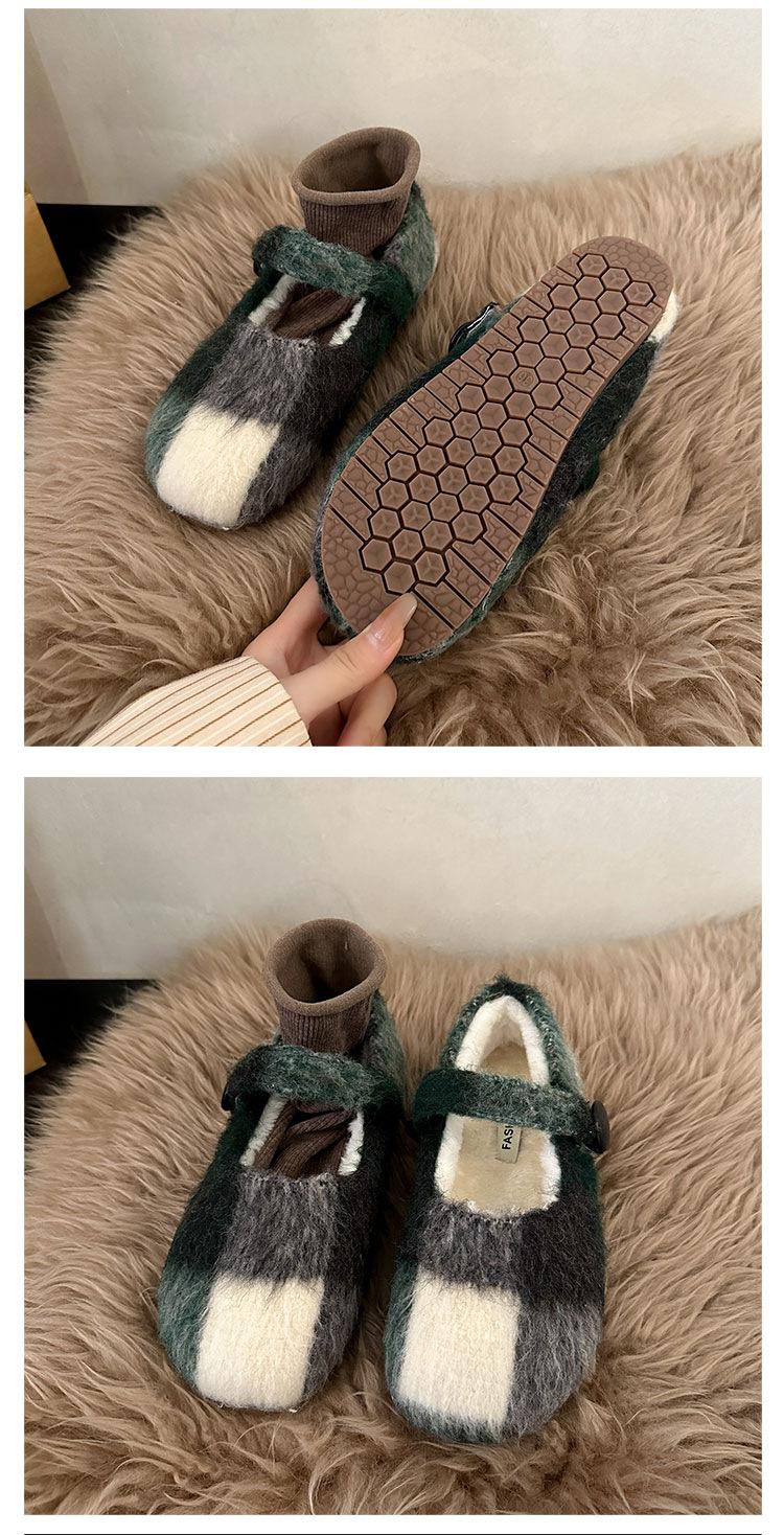 Mary Janes planas forradas de vellón para mujer, ropa exterior de otoño/invierno 2025, zapatos sencillos versátiles de corte bajo estilo Chanel con suela suave