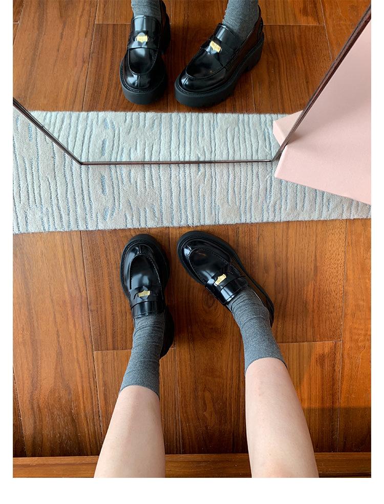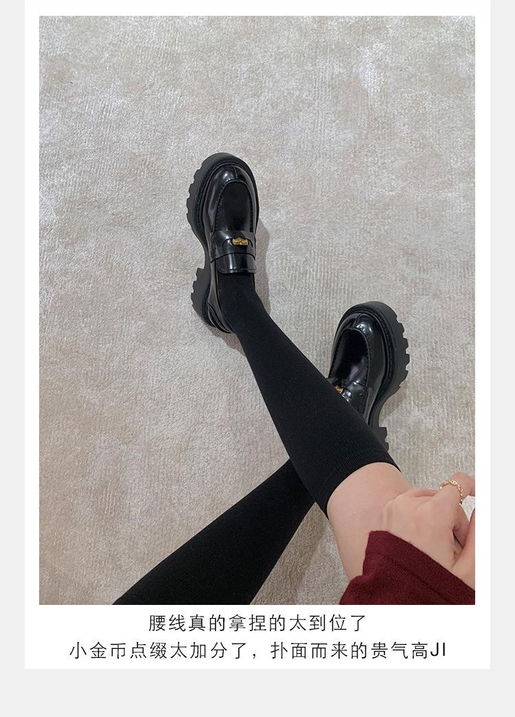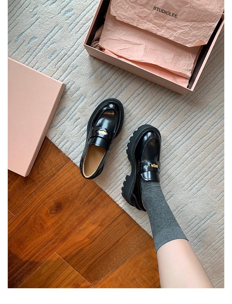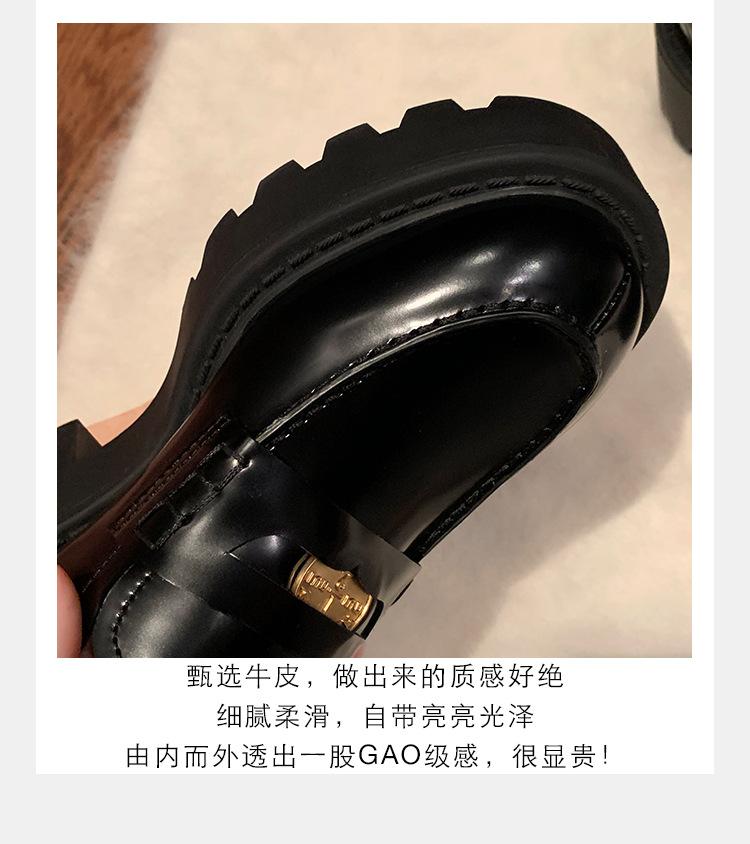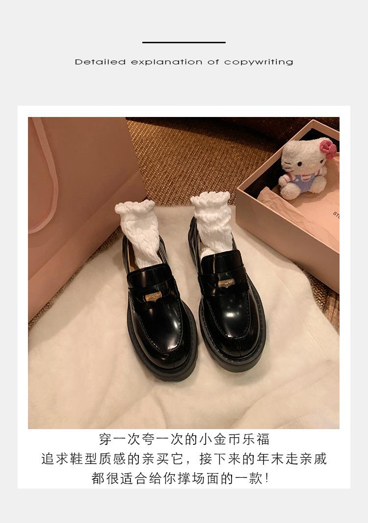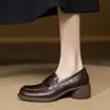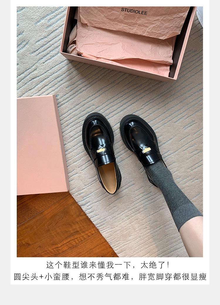Piel de Oveja Lujoso Moneda de Oro Pequeño Punta Redonda Zapatos de Cuero Pequeños Tacón Grueso Suela Gruesa Zapatos Individuales Slip-on Cuero Genuino con Falda Mocasines Mujer