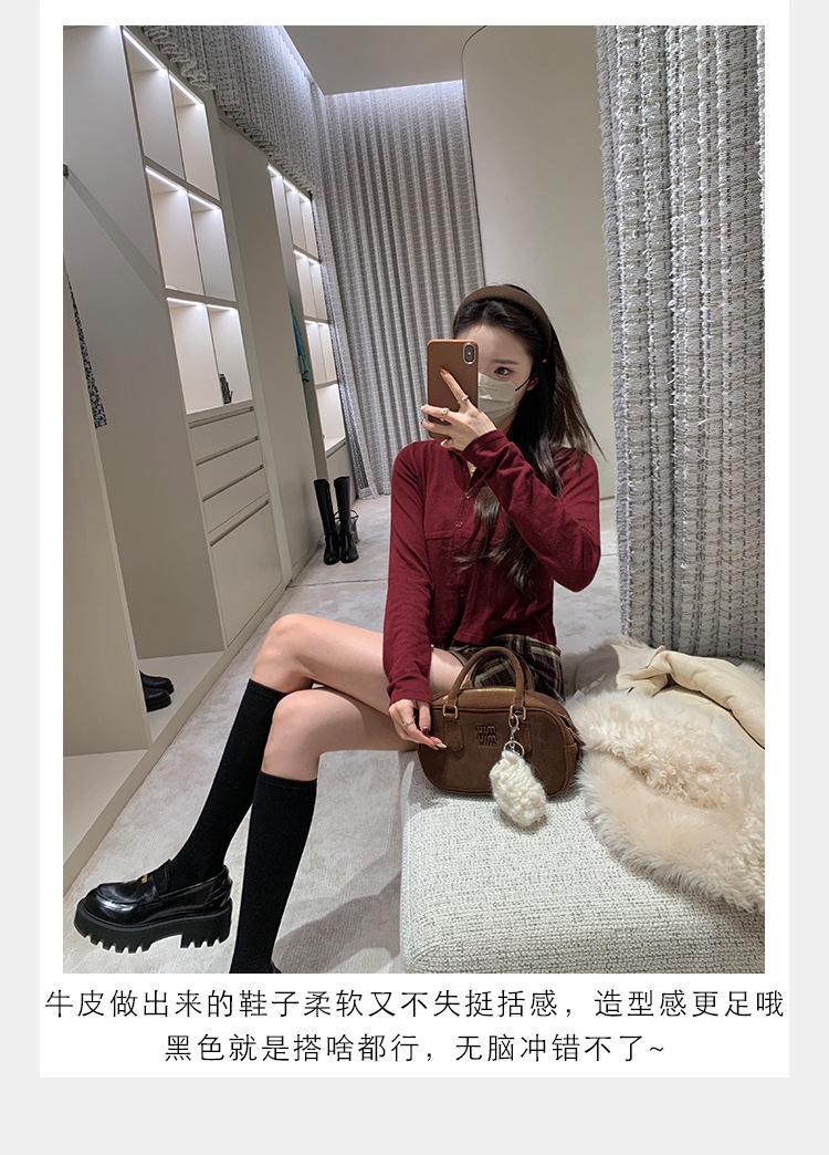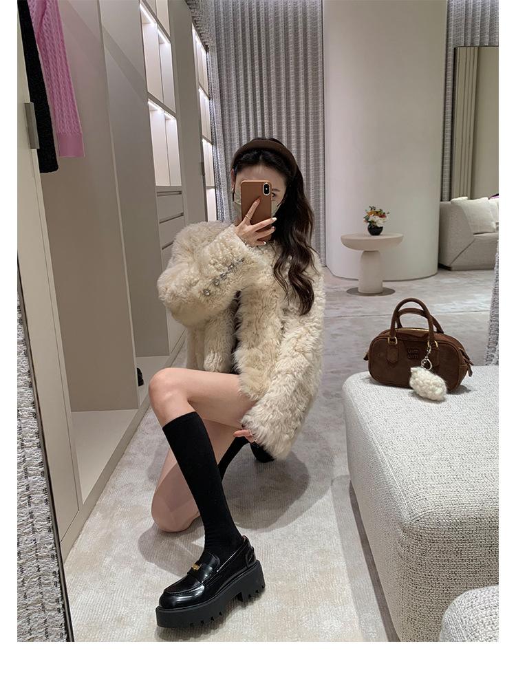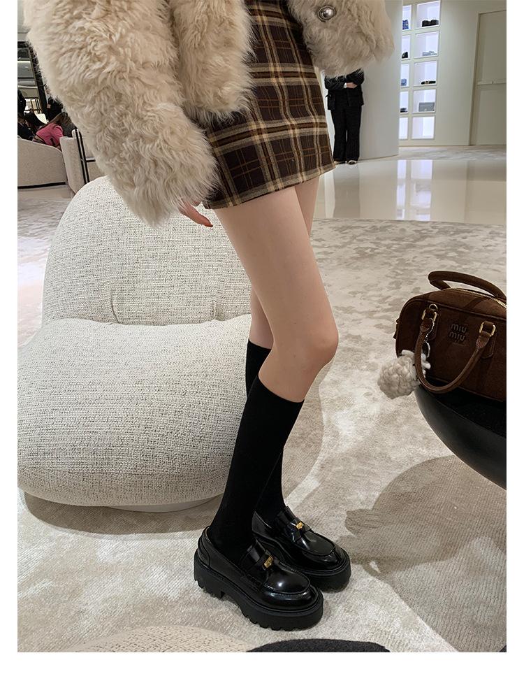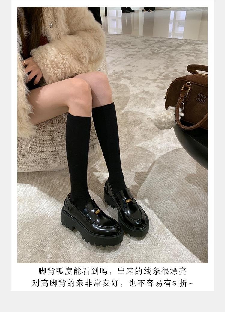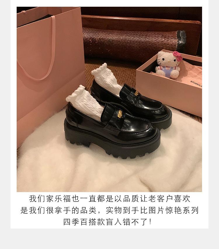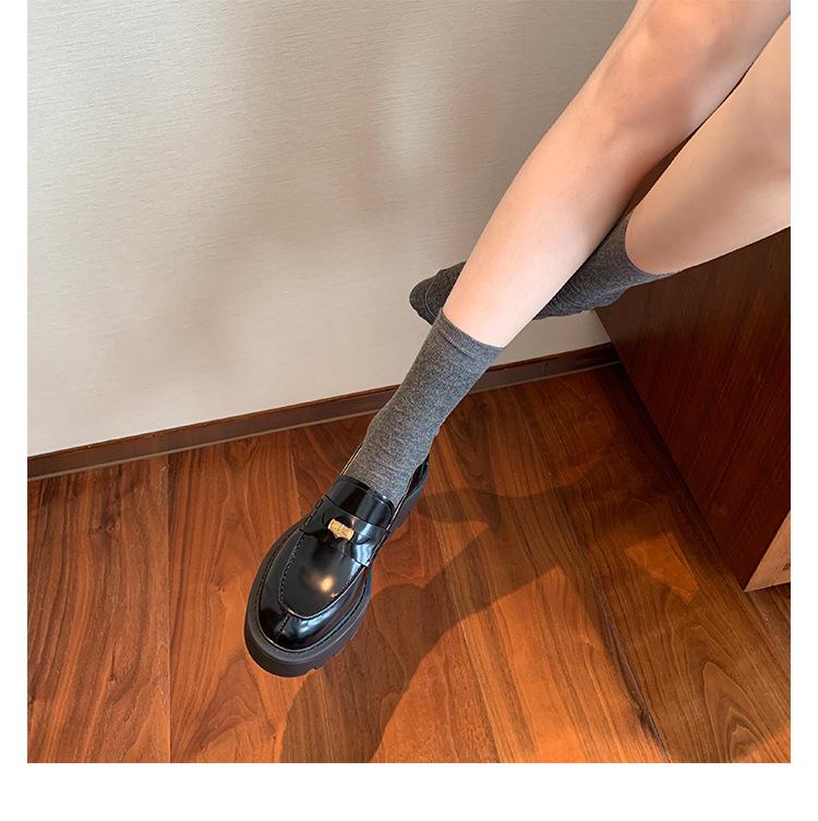 Piel de Oveja Lujoso Moneda de Oro Pequeño Punta Redonda Zapatos de Cuero Pequeños Tacón Grueso Suela Gruesa Zapatos Individuales Slip-on Cuero Genuino con Falda Mocasines Mujer