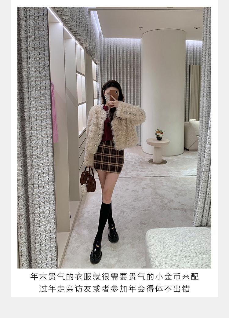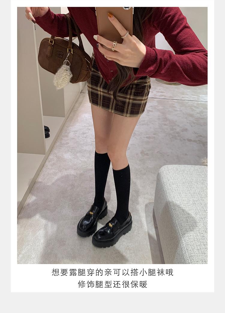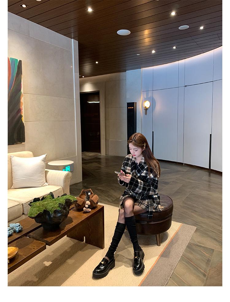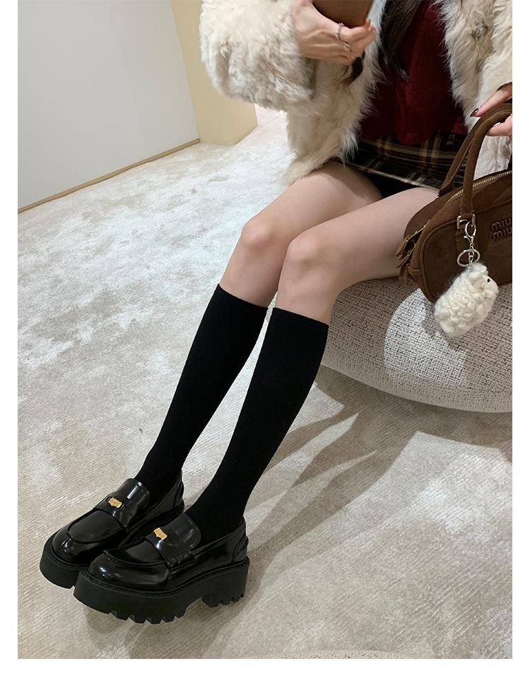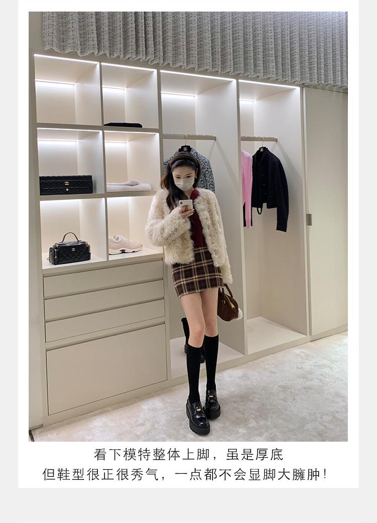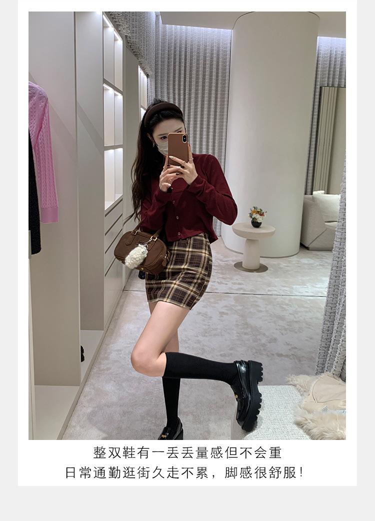 Piel de Oveja Lujoso Moneda de Oro Pequeño Punta Redonda Zapatos de Cuero Pequeños Tacón Grueso Suela Gruesa Zapatos Individuales Slip-on Cuero Genuino con Falda Mocasines Mujer