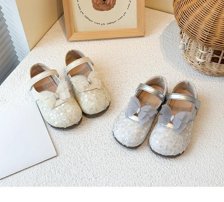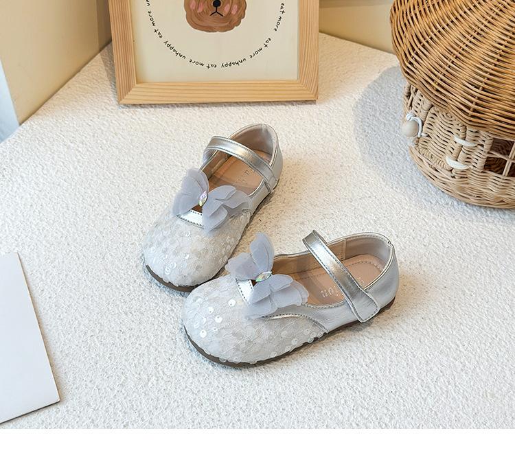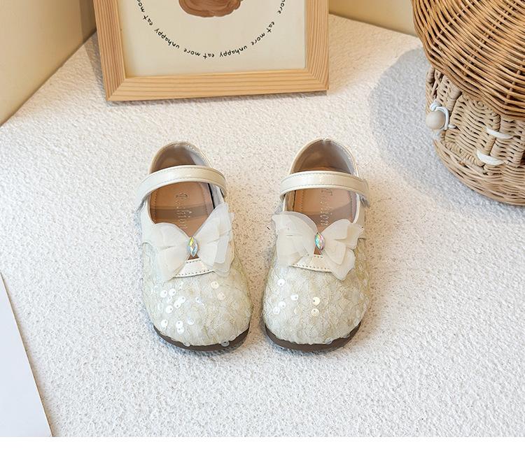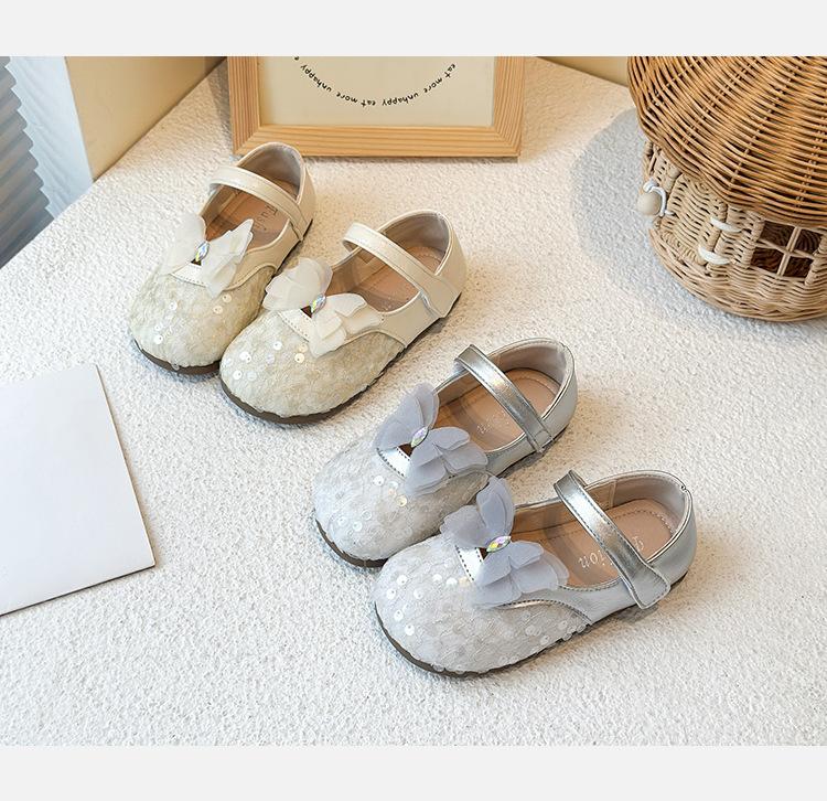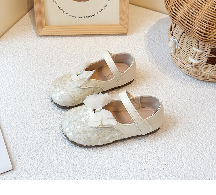 Zapatos Individuales Dulces para Bebé con Decoración de Lentejuelas para Niñas 2025 Verano Nuevo Estilo Princesa Mariposa de Corte Bajo Zapatos Pequeños de Piel