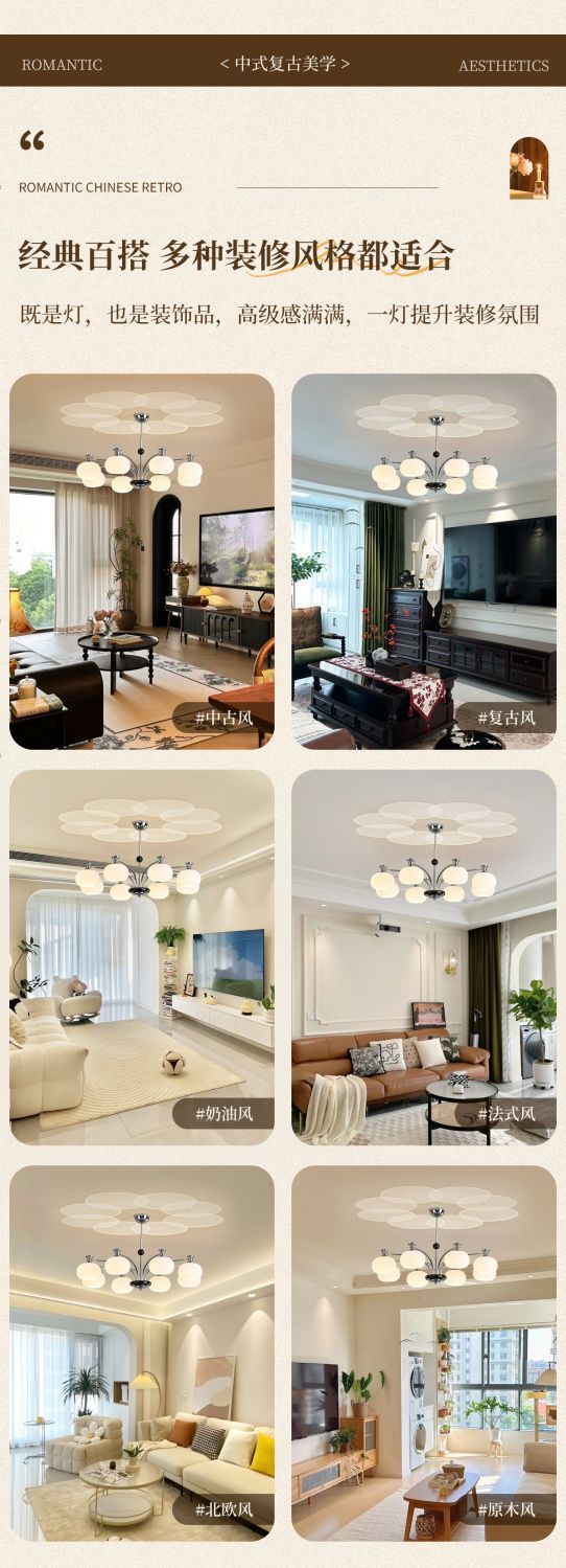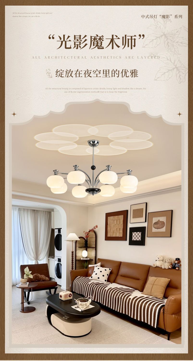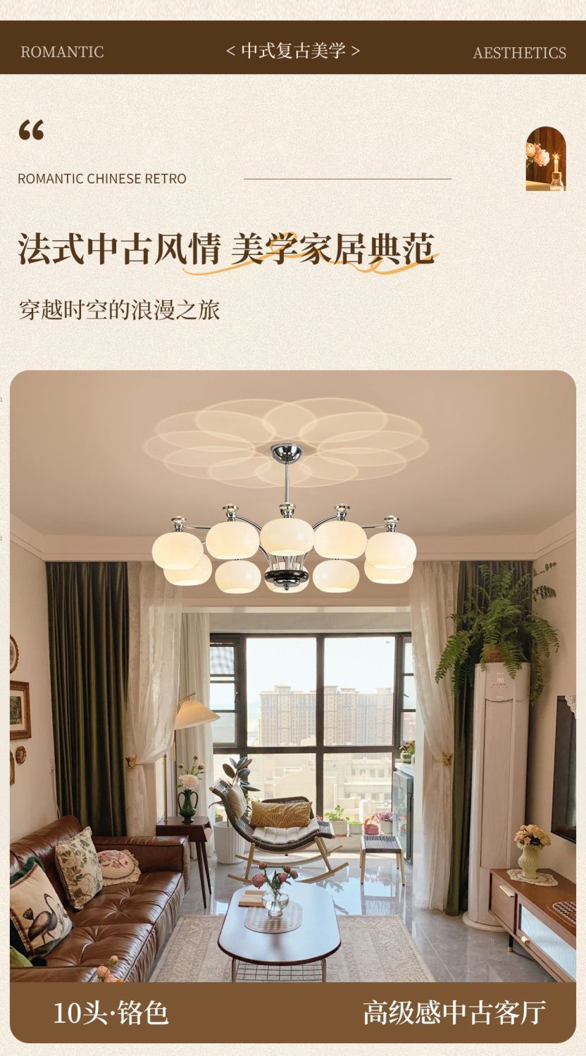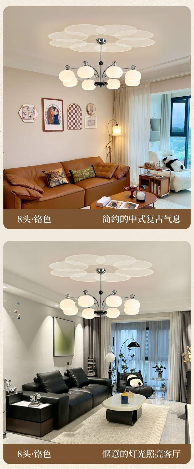Lámpara de Sala de Estar Francesa Antigua Media 2025 Nueva Vintage Caqui Moderna Simple Nórdica Restaurante Dormitorio Lámparas Araña