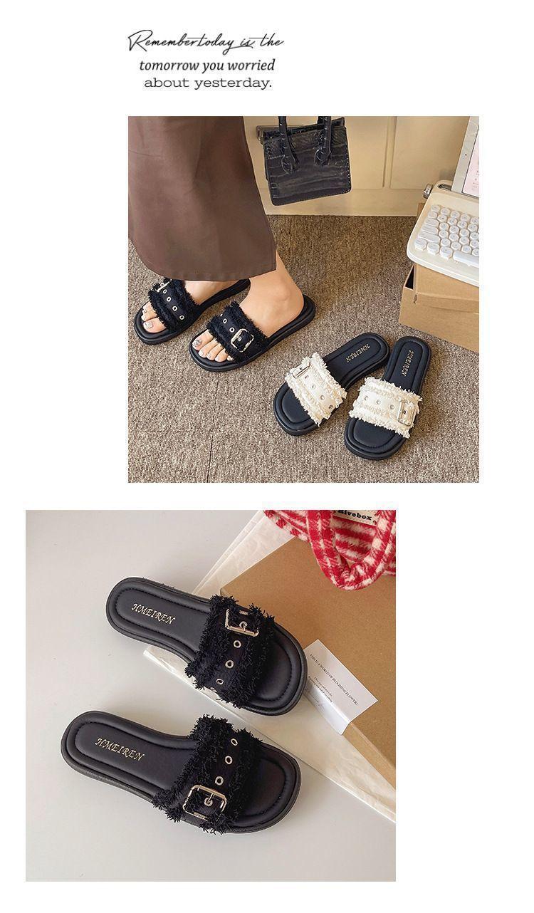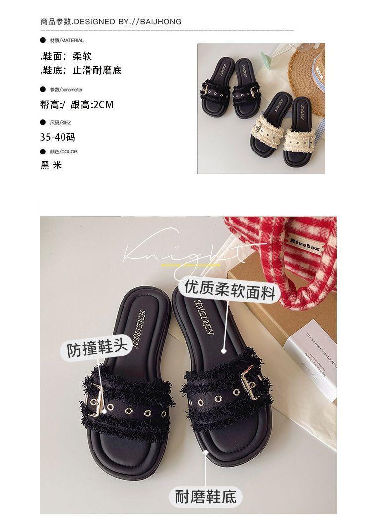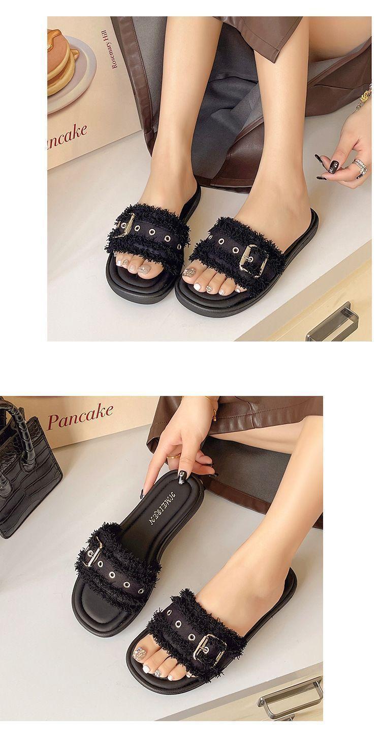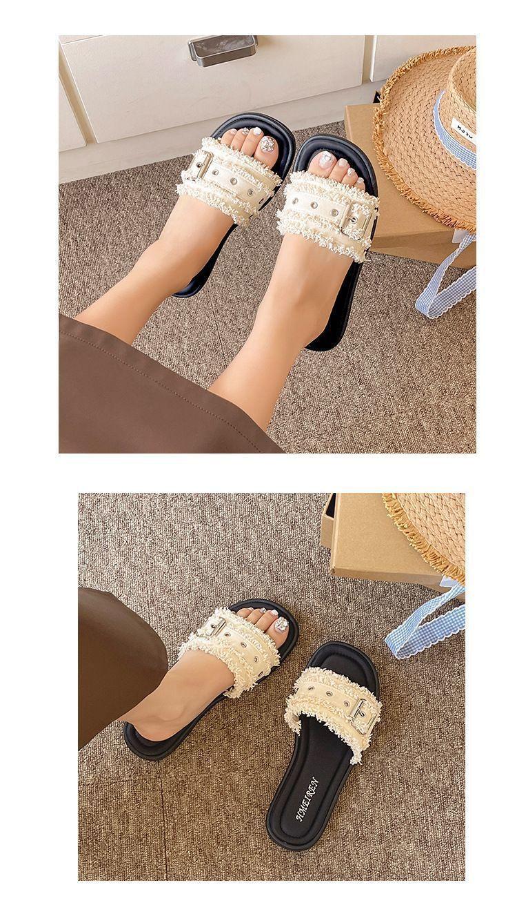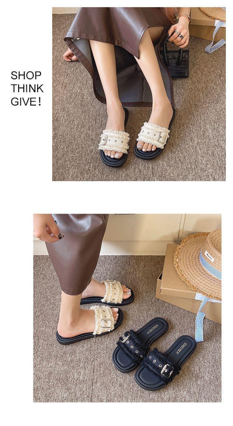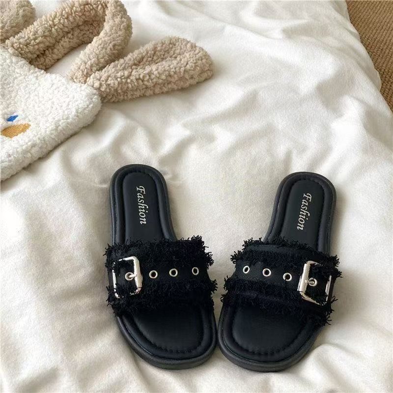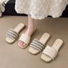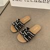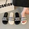 Elegantes pantuflas estilo Chanel para mujer, para verano, moda de influencer, pedrería, planas de una palabra, sandalias de playa de fondo plano, nuevo 2025