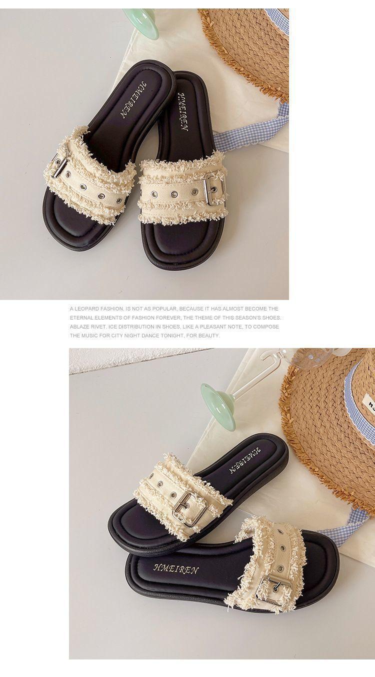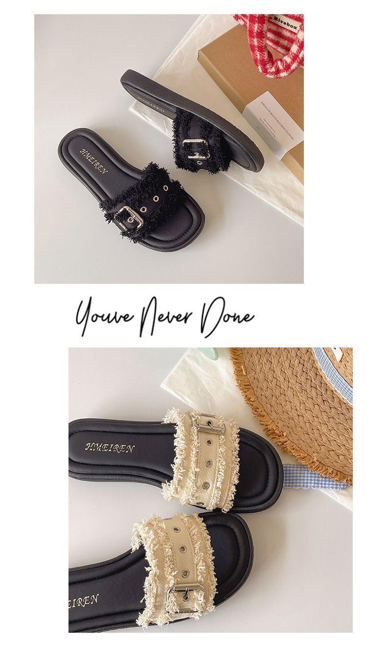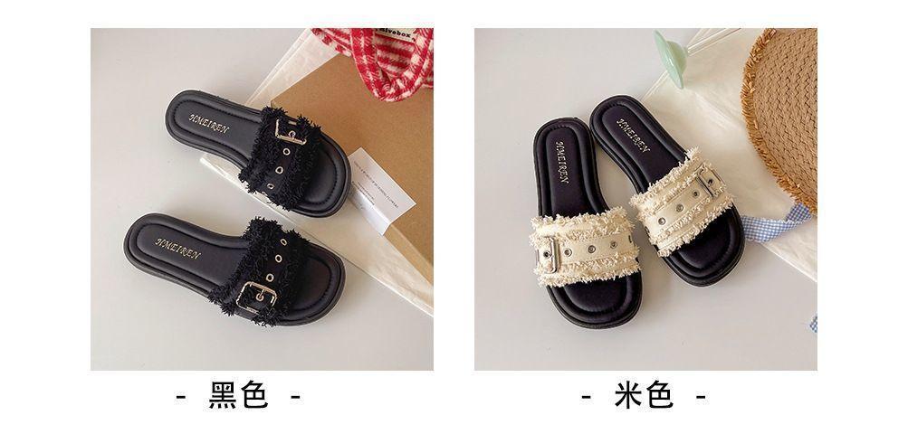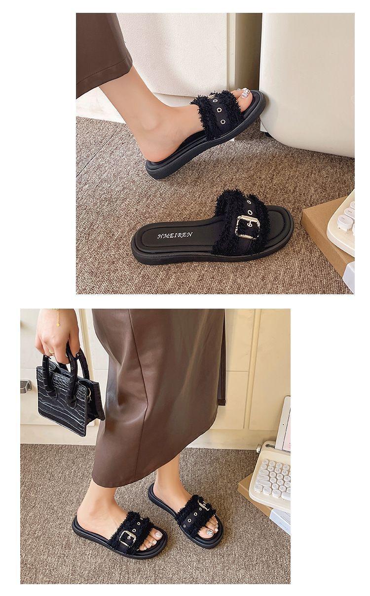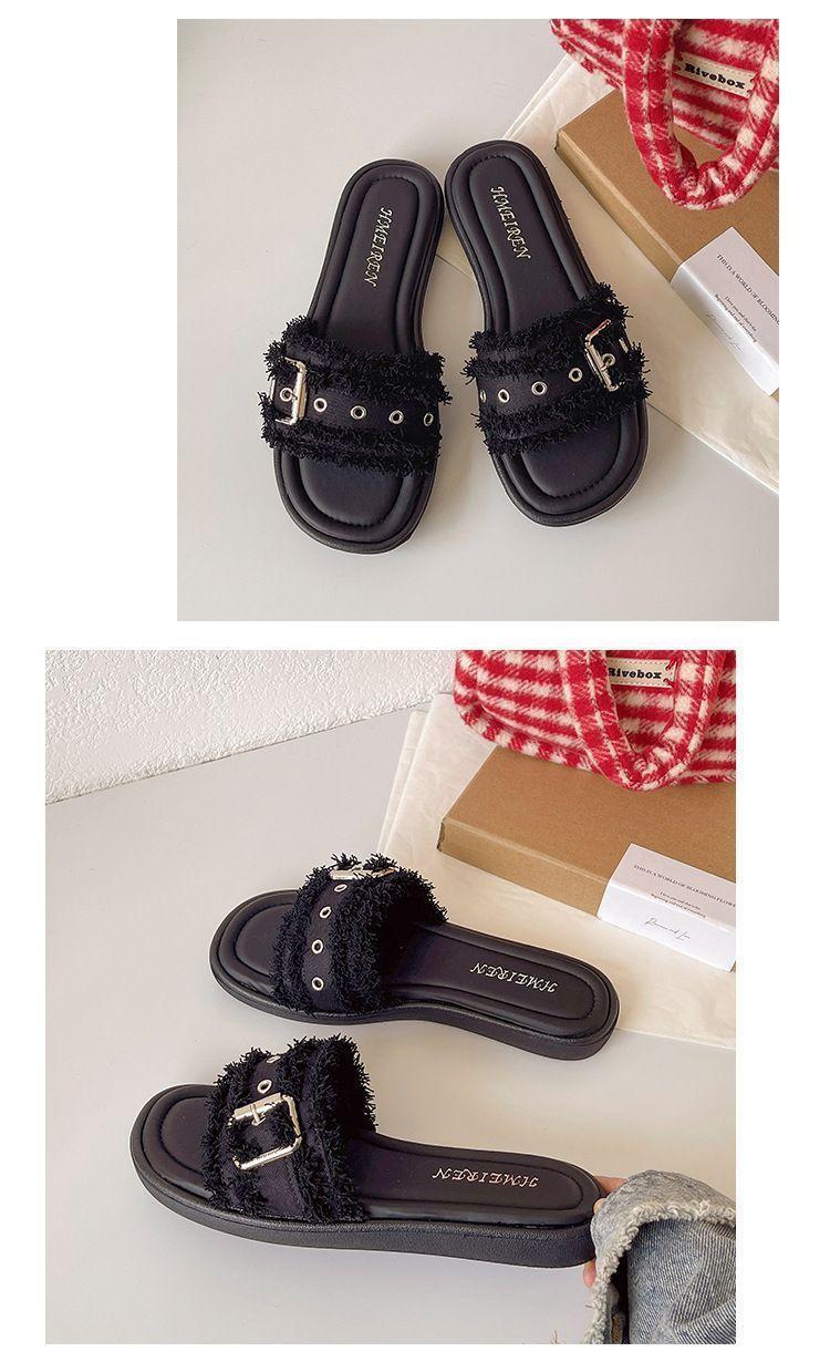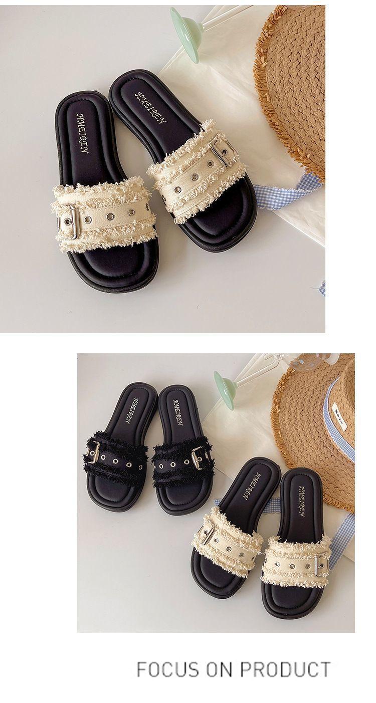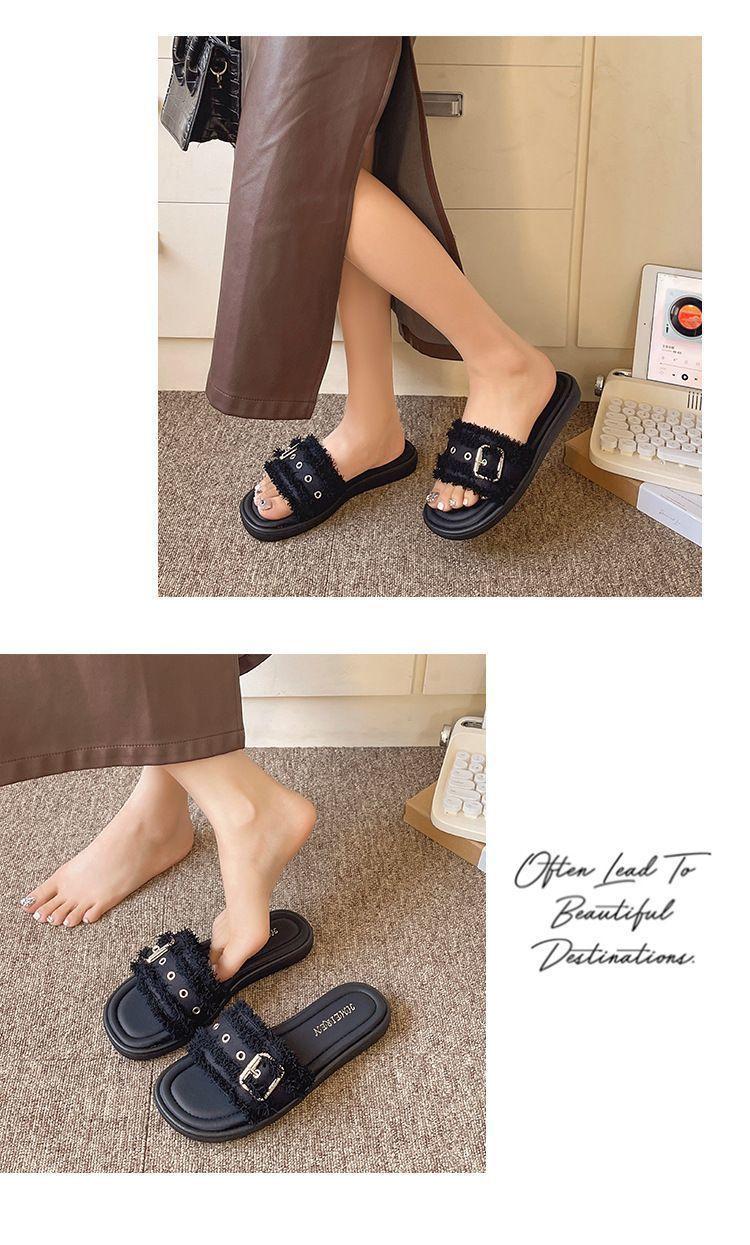 Elegantes pantuflas estilo Chanel para mujer, para verano, moda de influencer, pedrería, planas de una palabra, sandalias de playa de fondo plano, nuevo 2025