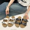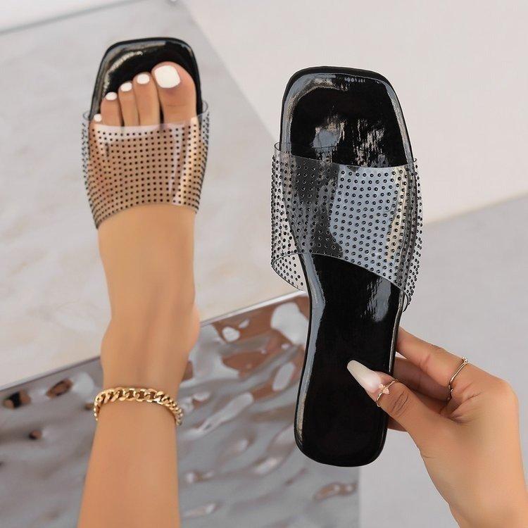 Talla Grande 2025 Primavera y Verano Nuevo Moda Europea y Americana Ropa para Casa y Exterior Zapatillas Casuales de Mujer con Puntos de Diamantes Brillantes de una Línea