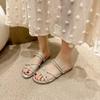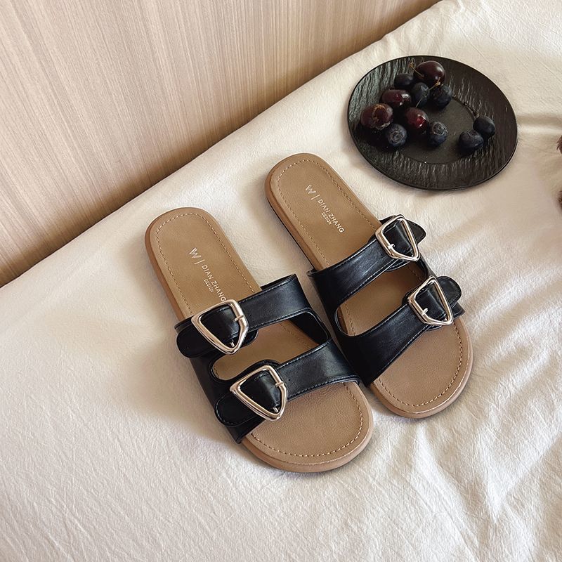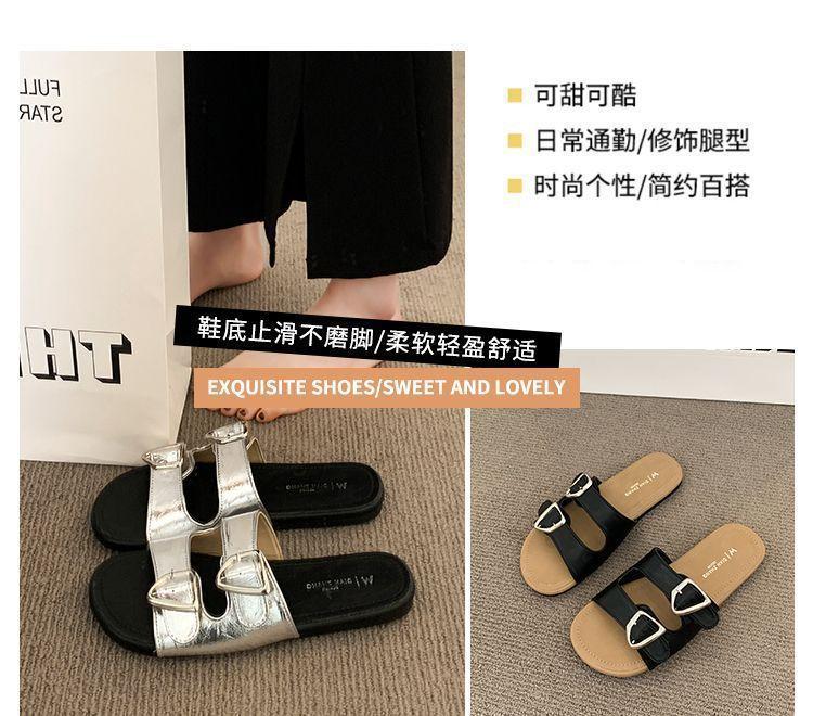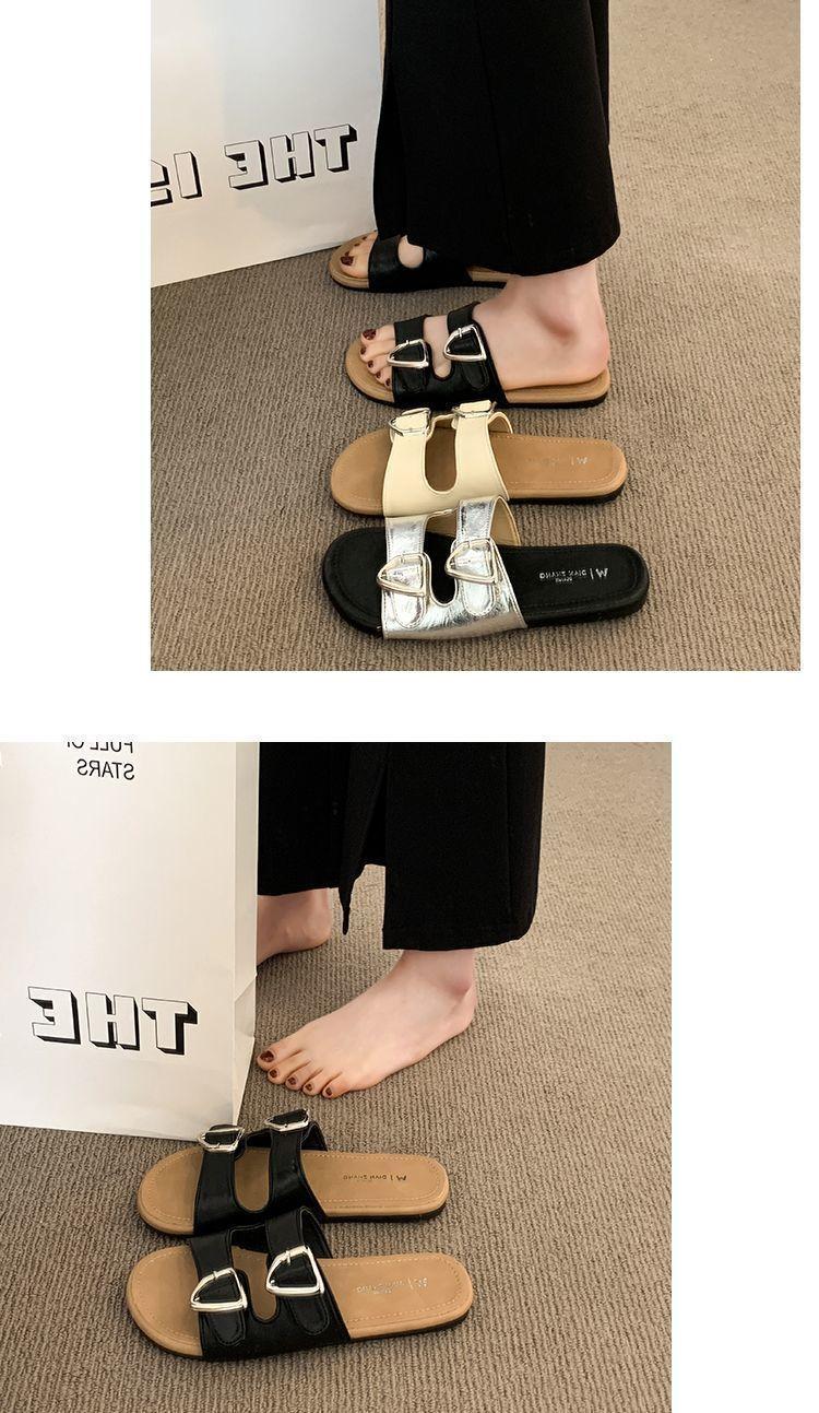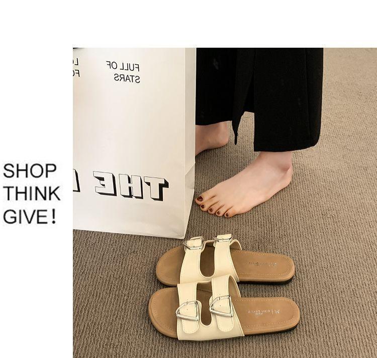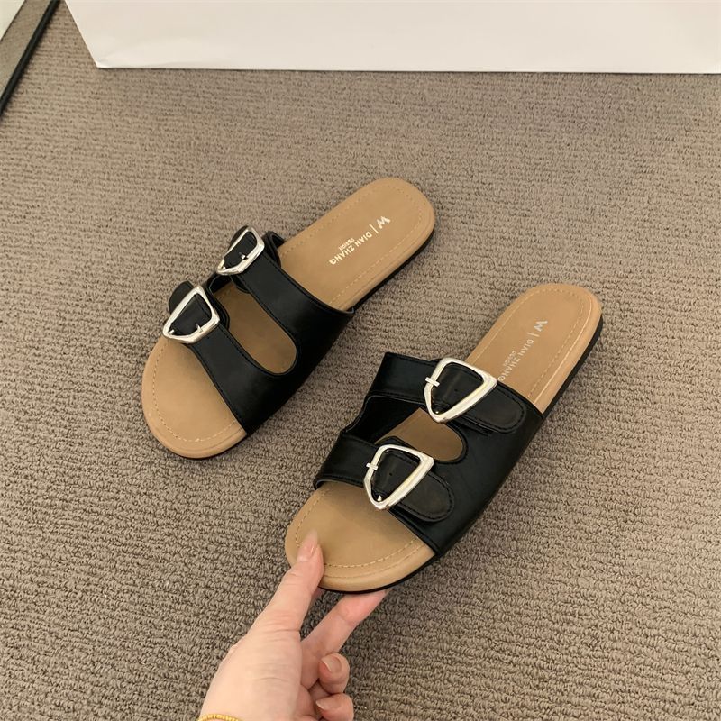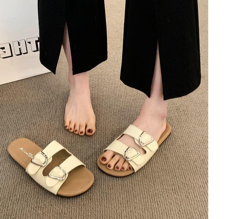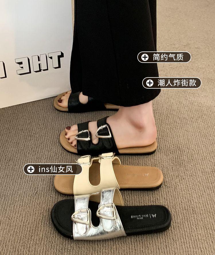 Elegantes sandalias de verano de moda de alto valor para mujer para exteriores 2025 nuevas coreanas versátiles ligeras de suela plana con una tira
