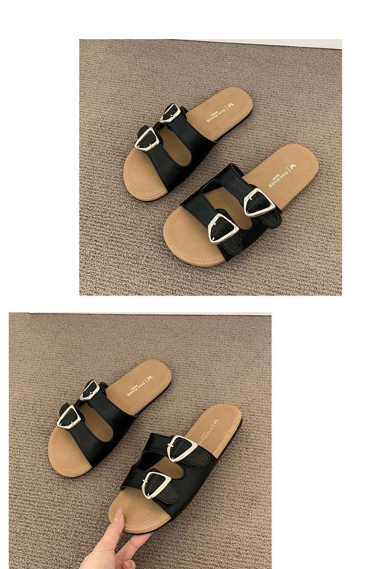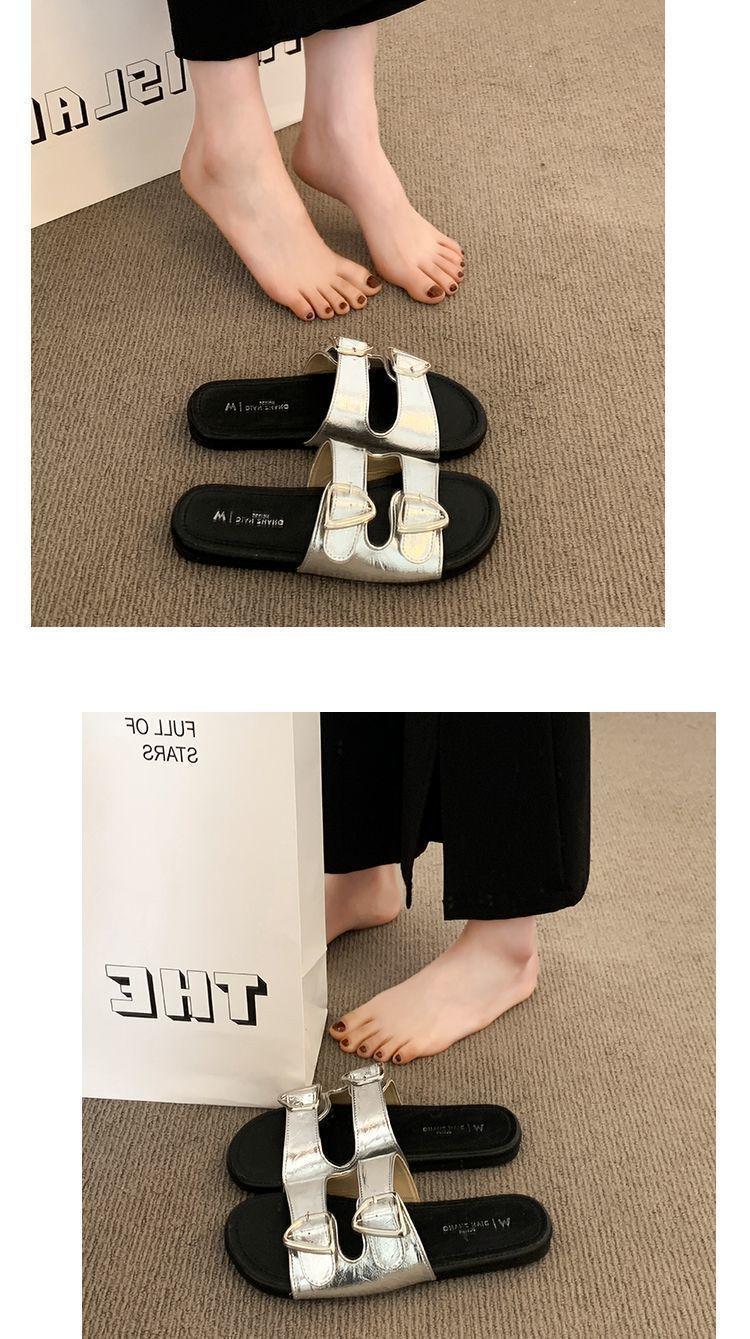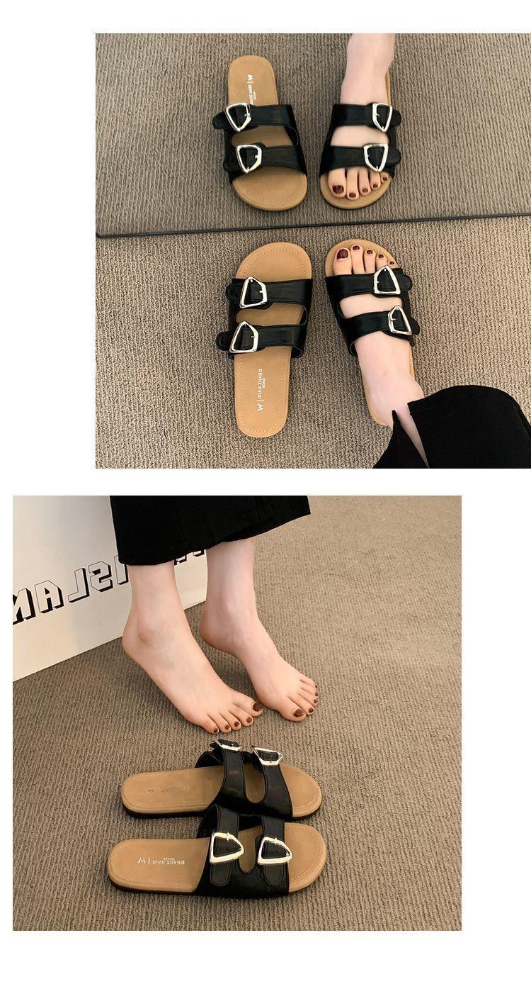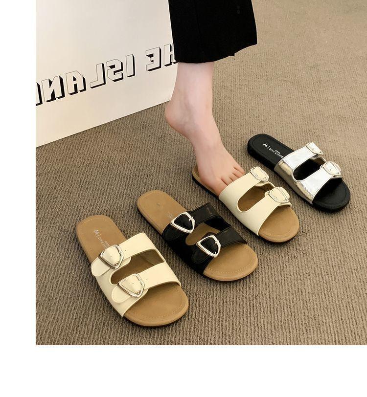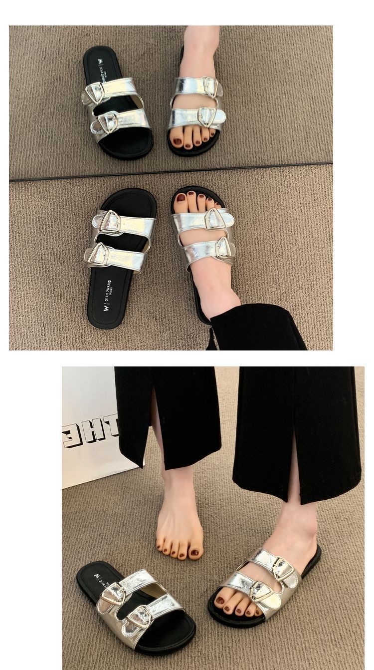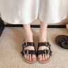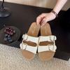 Elegantes sandalias de verano de moda de alto valor para mujer para exteriores 2025 nuevas coreanas versátiles ligeras de suela plana con una tira