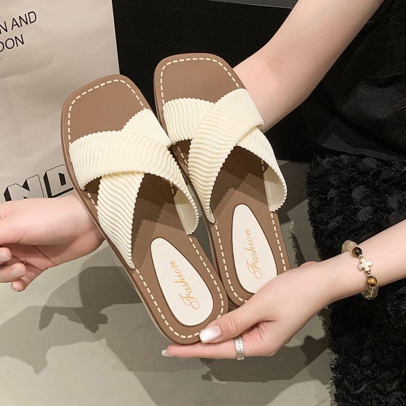 Pantuflas de gran venta para mujer verano para exteriores moda versátil 2025 nuevas sandalias planas de una tira estilo hada comercio exterior