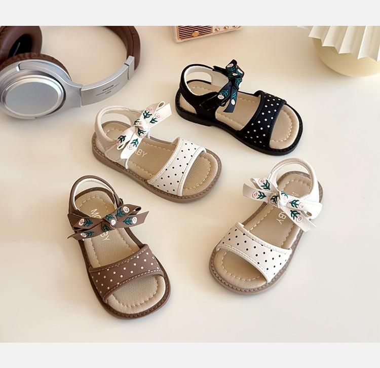 2025 Verano Nuevos Zapatos de Bebé Suela Blanda Estilo Coreano Transpirables Sandalias con Lazo para Niñas Zapatos de Playa de Moda para Niños