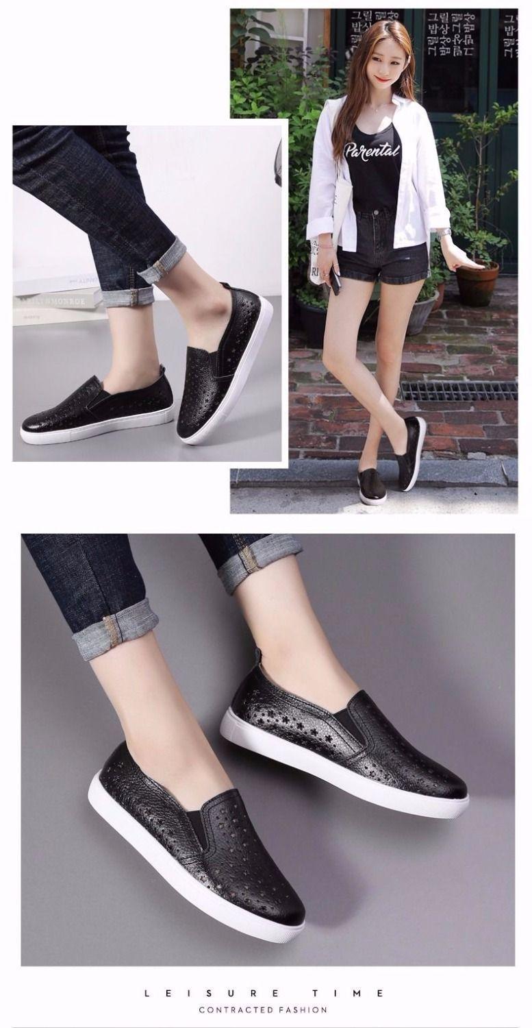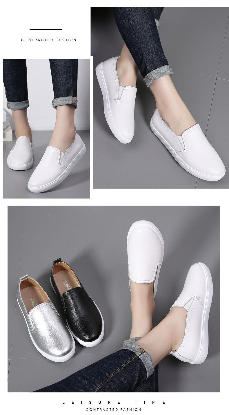 Grulla de Nuca Blanca 2025 Otoño Nuevo Cuero Genuino Calados Mocasines Mujer Slip-on Zapatos Casuales Versátiles Transpirables Planos