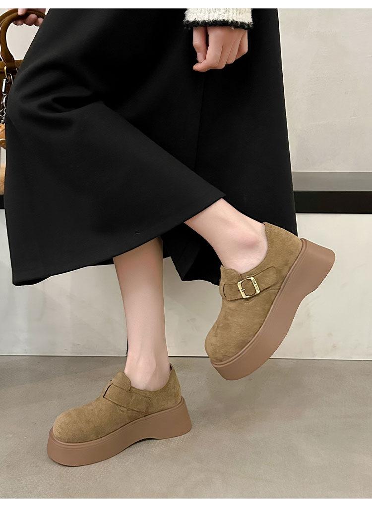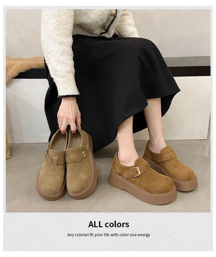Birkenstock de mujer de suela gruesa para aumentar la altura, otoño 2025, nuevos mocasines casuales retro Birkenstock de un solo zapato
