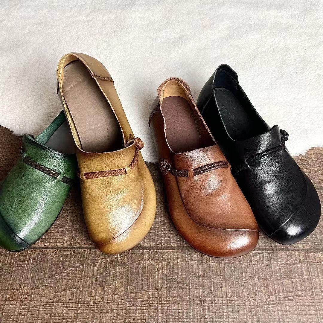 Zapatos individuales retro para mujer 2025 nuevos para madres de mediana edad y mayores, moda versátil, suela suave, antideslizante, cómodos, no cansan los pies, zapatos de cuero pequeños