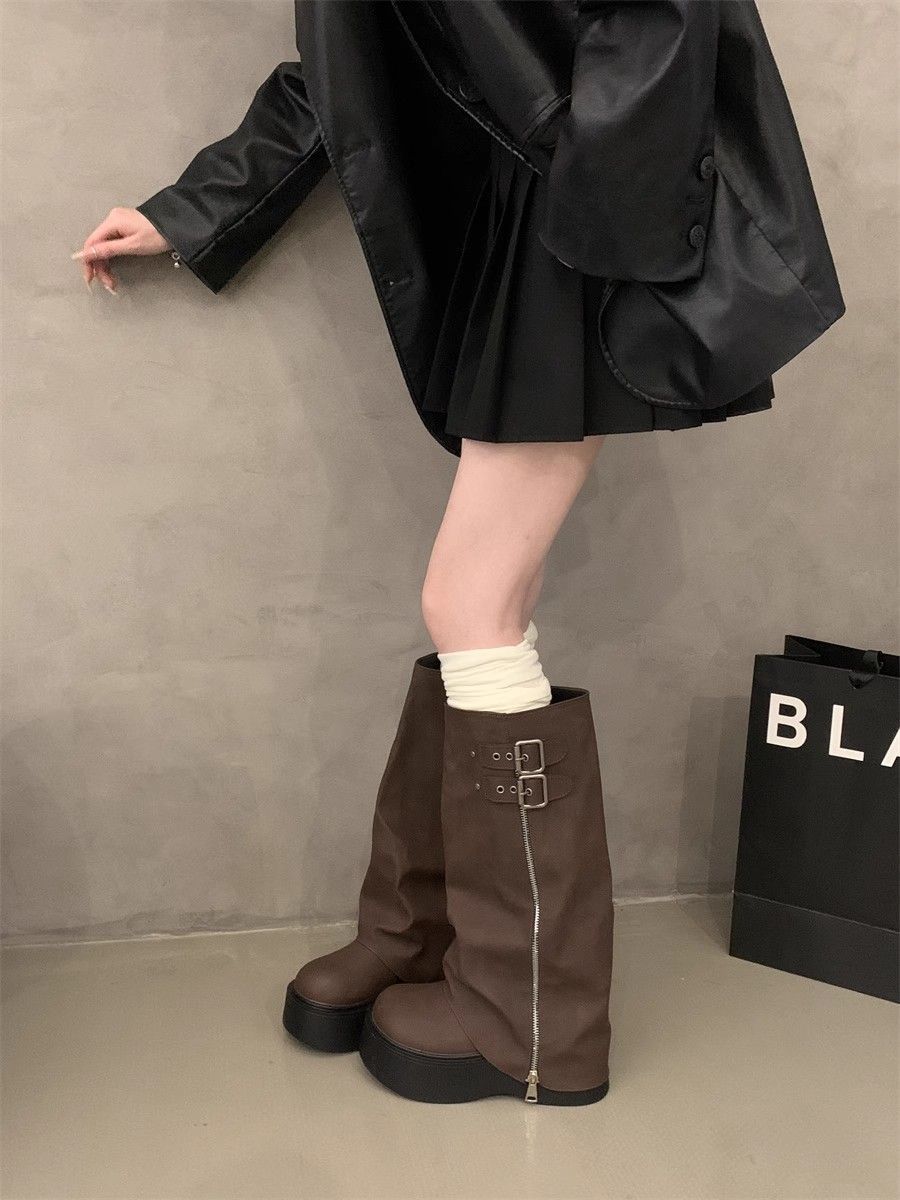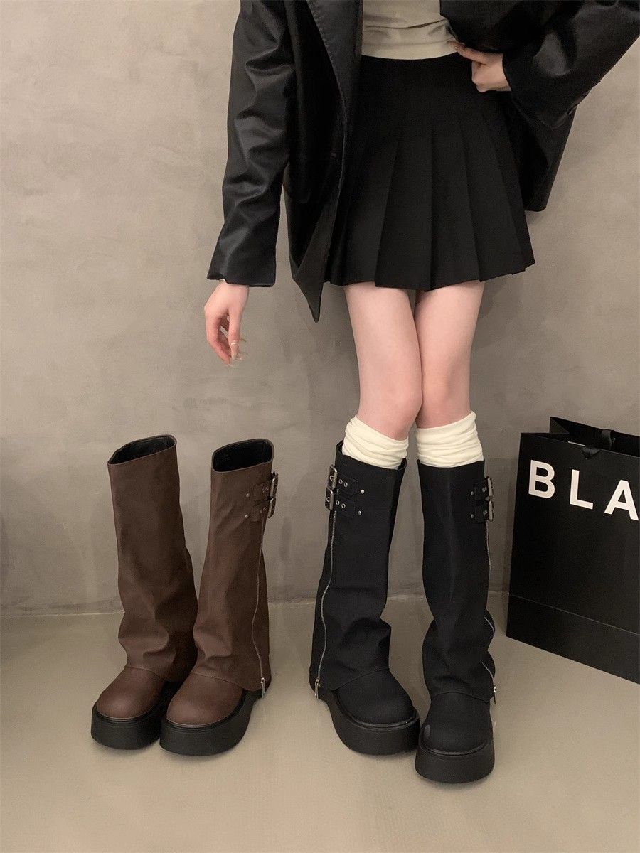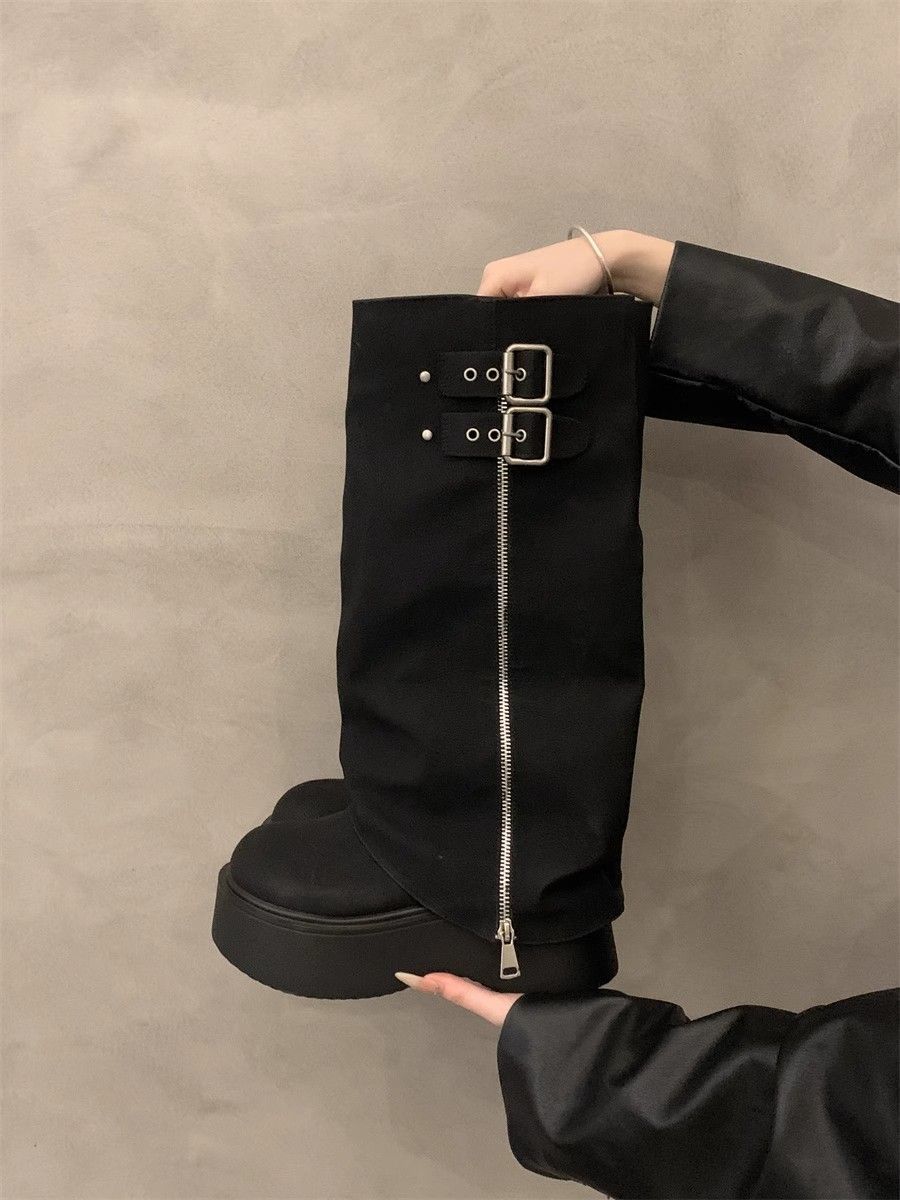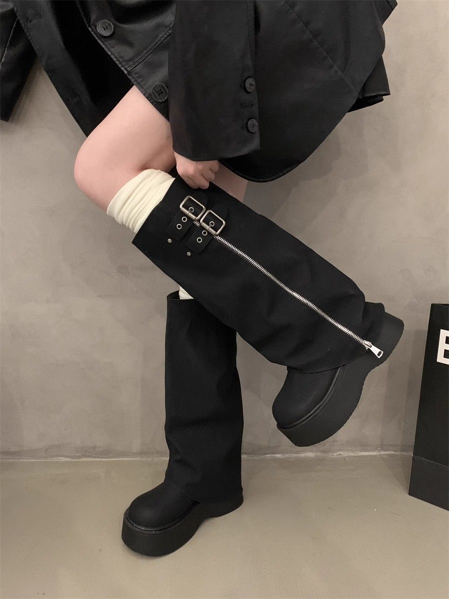 Otoño 2025 Nuevo Temperamento Versátil Botas de Pantalón de Suela Gruesa para Aumentar la Altura Chica Hot Americanas Punta Grande Hasta la Rodilla Mujer